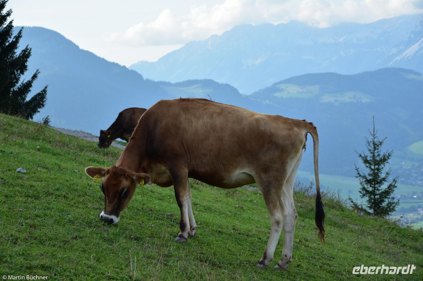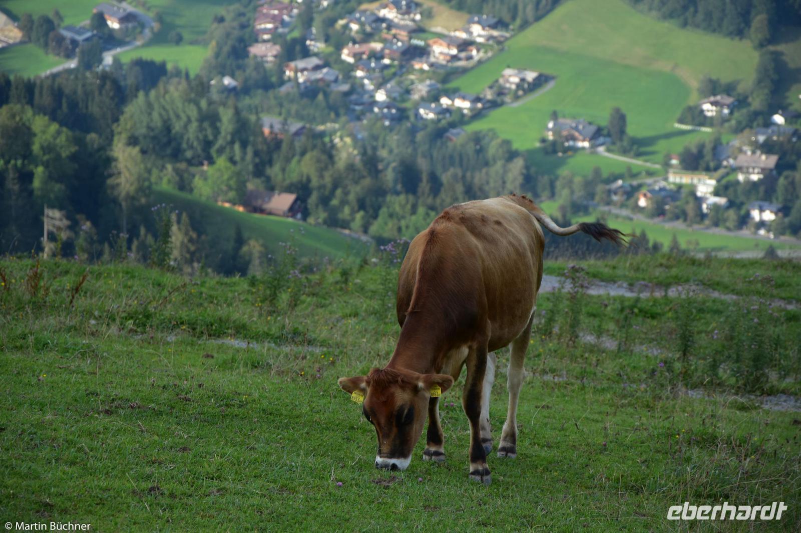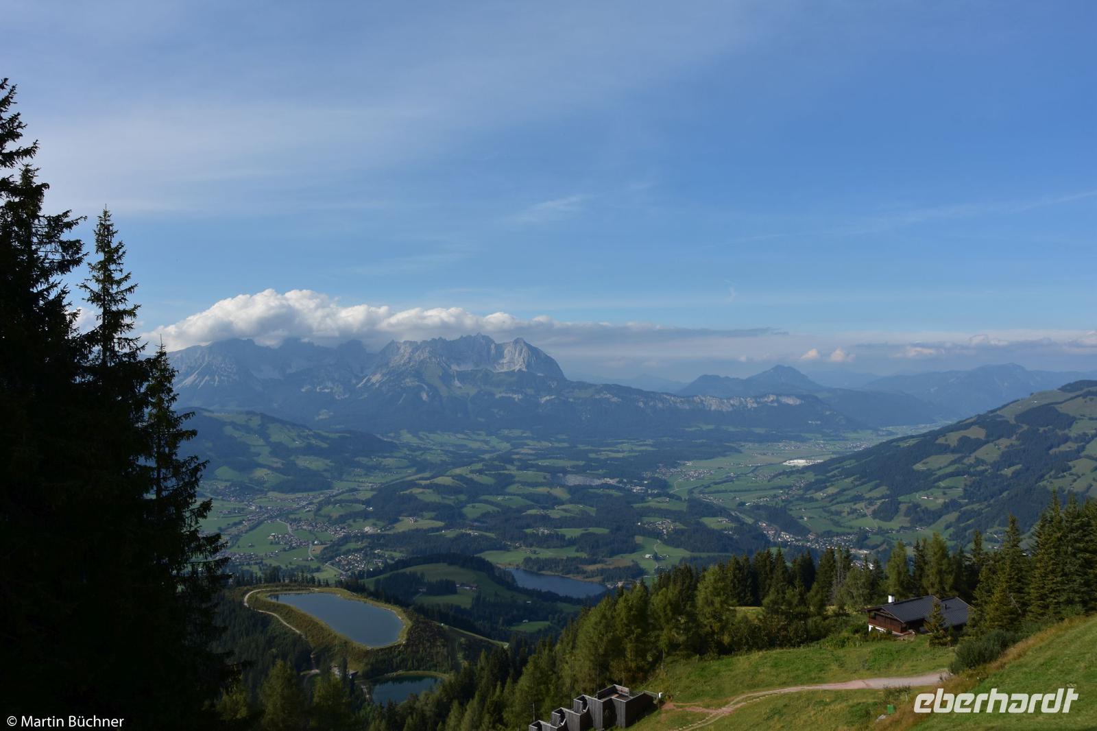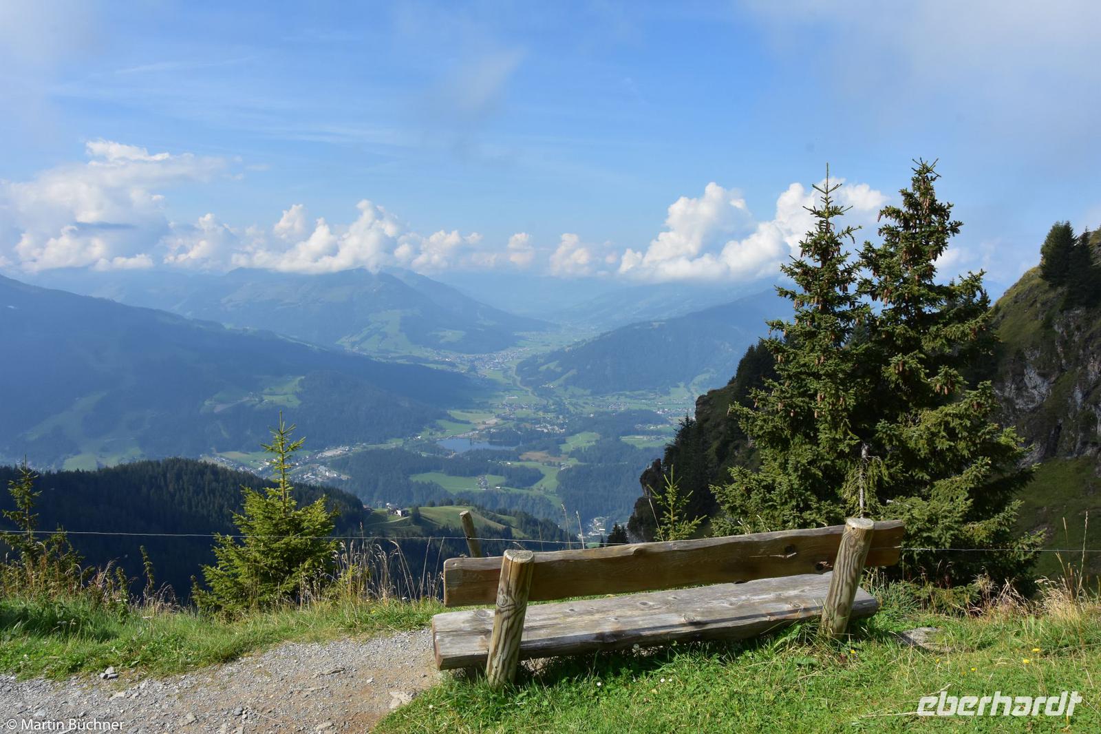 Auf der Wochenbrunner Alm in 1.085 m Höhe erwartet uns eine zünftige Brettljause (in Bayern Brotzeit genannt). Gestärkt von Essen und fantastischen Blick rauf zum Ellmauer Tor (Wilder Kaiser) und bis zum Alpenhauptkamm reisen wir zurück nach Kitzbühel.