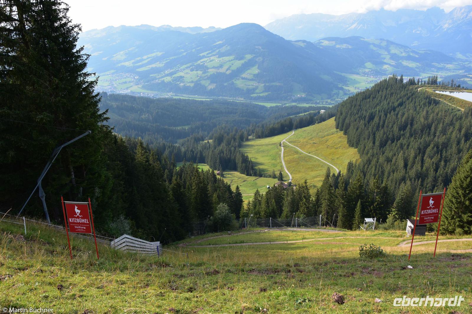 Am Nachmittag, Freizeit in Kitzbühel. Ich nutze die Zeit, bei herrlichem Kaiserwetter, nochmal auf den Hahnenkamm zu fahren, um dann die berühmte Streif bis ins Tal abzulaufen.