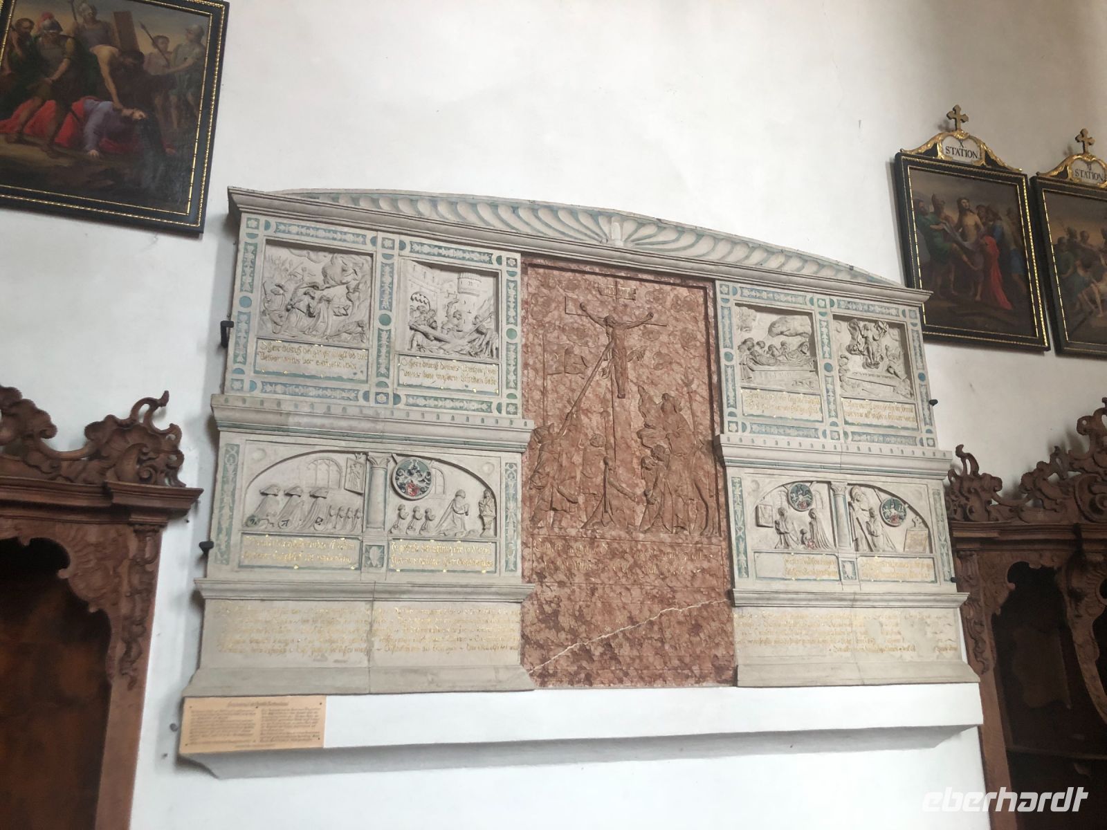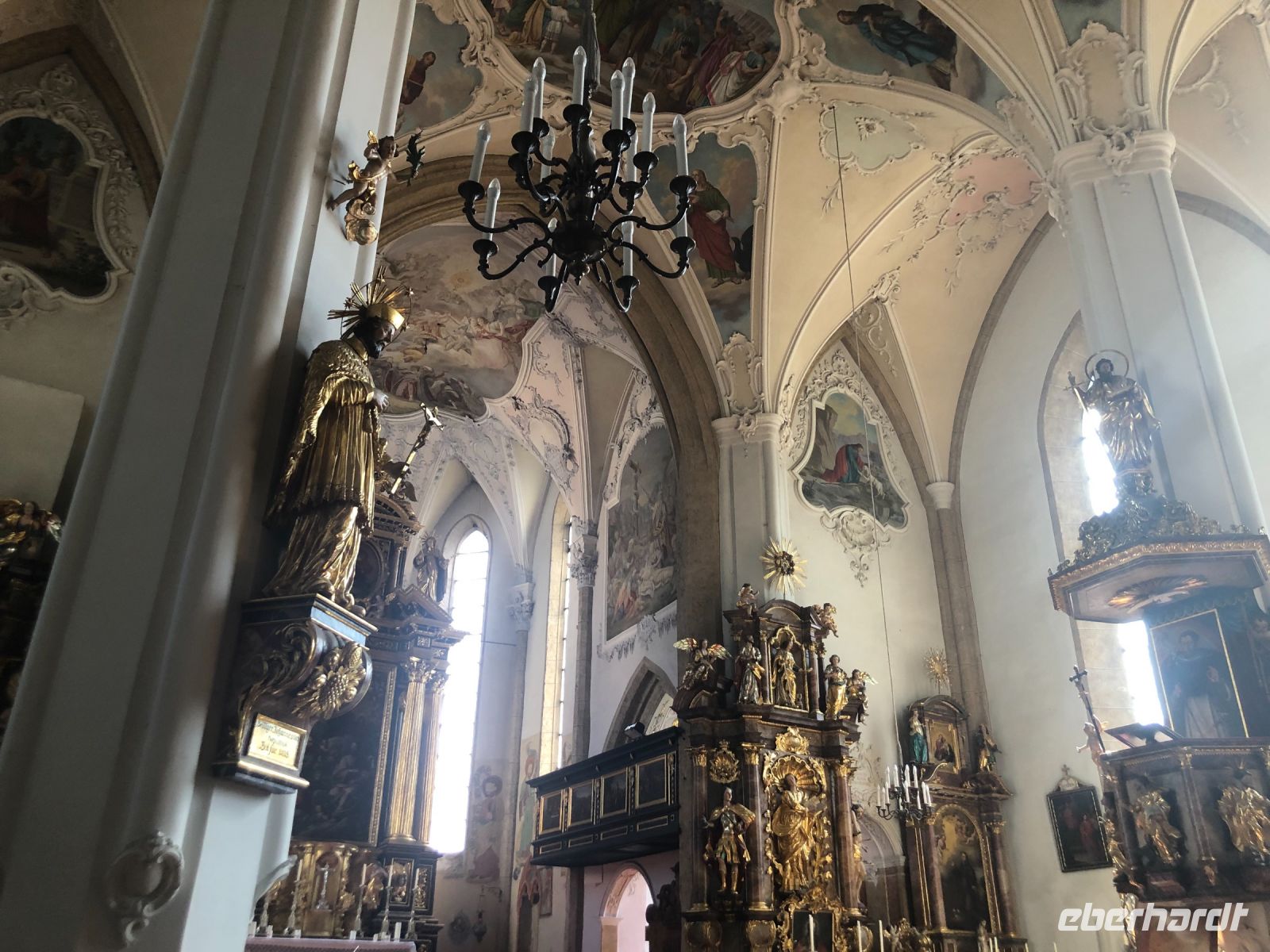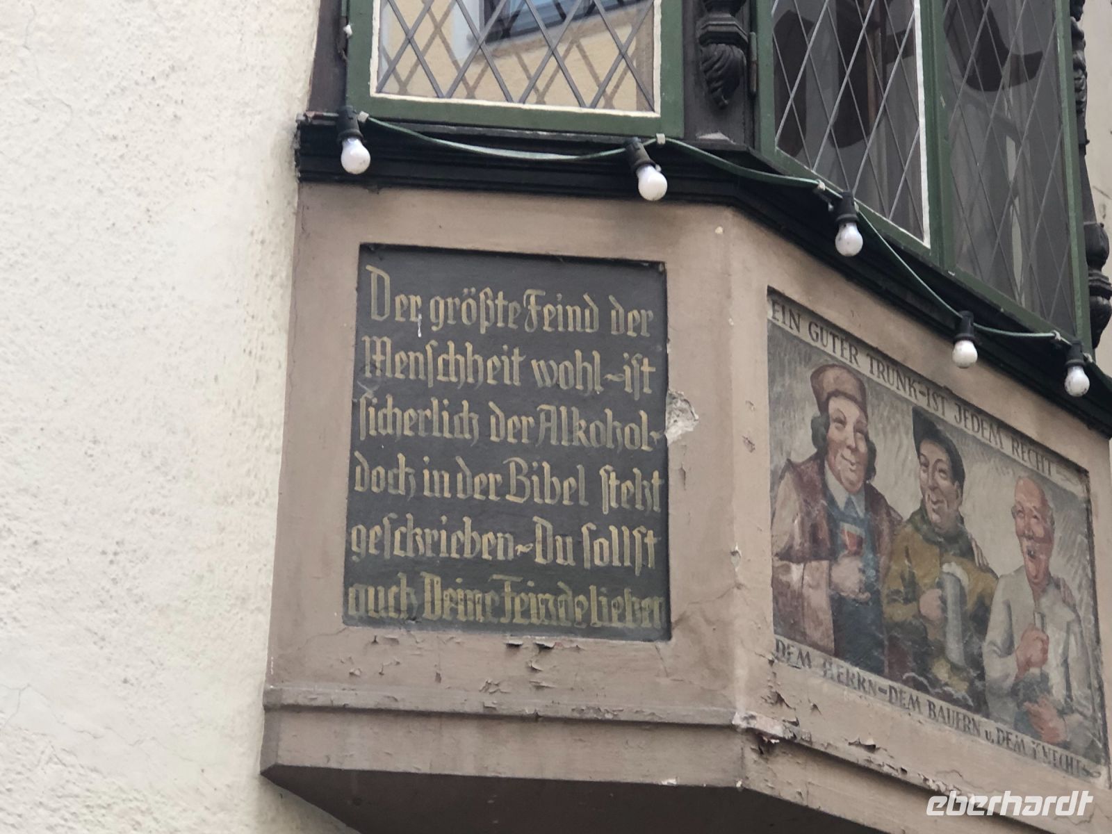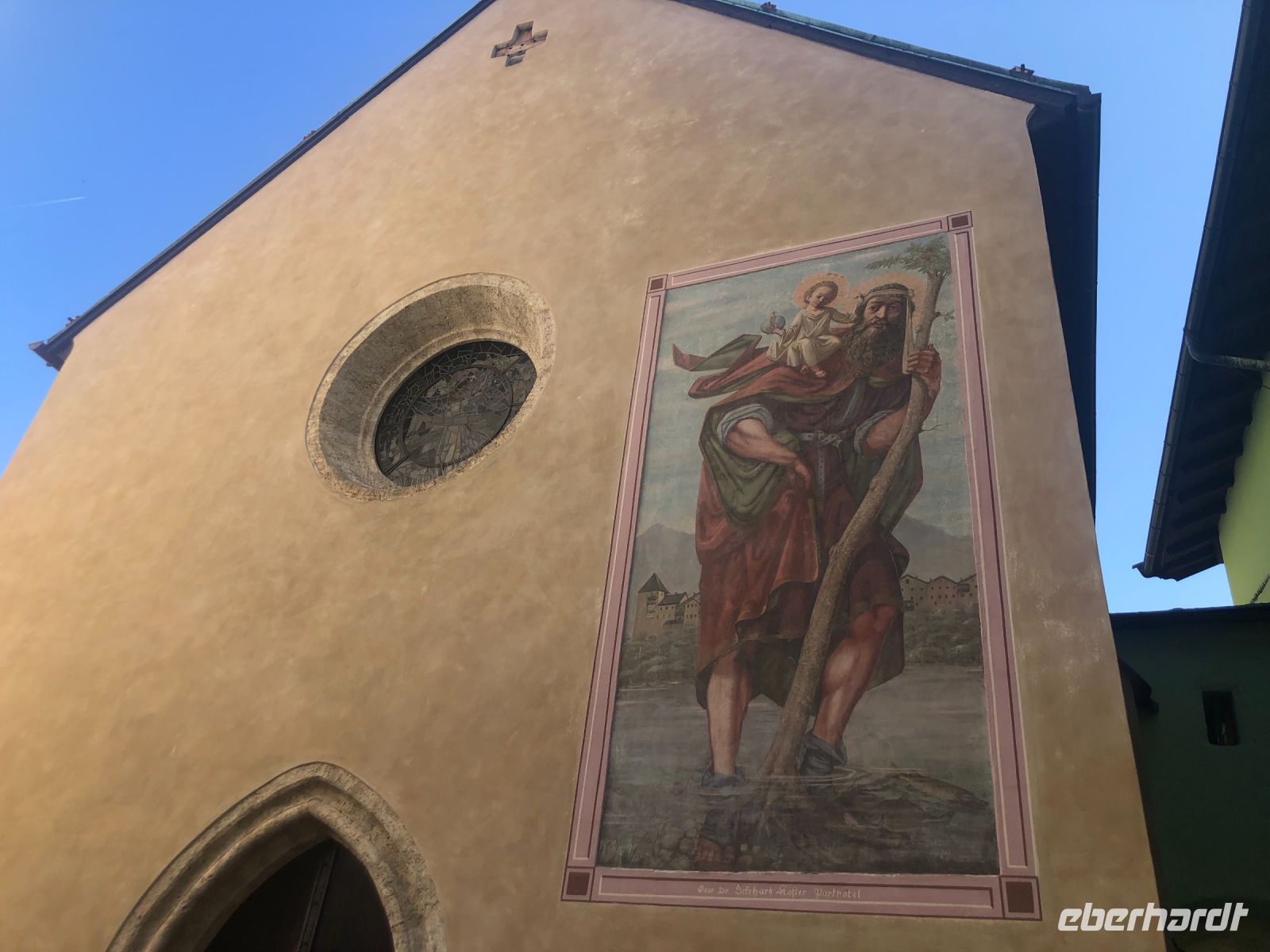 Für den Vormittag haben wir ein kleines Zusatzprogramm geplant. Die Kirche von St. Johann und das Zentrum schauen wir vom Bus aus an. Unseren Stopp legen wir an der Aggstein Brennerei ein. Hier werden Edelbrände, Schnäpse und Liköre hergestellt, verkostet und verkauft. Zum Kosten ist es vielleicht noch ein bisschen früh am Tag, aber einkaufen geht immer. Einen hohen Stellenwert nimmt dabei der Jagatee ein, für den die Aggstein Brennerei schlauerweise ein Patent angemeldet hat. Mit vollen Taschen setzen wir unseren Weg fort und fahren zum Kaiserbachtal. An der Mautstelle steigen wir aus und gehen zu Fuß weiter. Eine ganze Stunde lang genießen wir auf dem Weg die fantastische Aussicht. An einigen Stellen sind Schautafeln aufgestellt. Hier werden bekannte Bergsteiger und Kletterer vorgestellt. Und jeder von ihnen hat ein Utensil zur Verfügung gestellt mit der Beschreibung warum und weshalb das Teil eine Bedeutung hat. So gibt es einen Schuh, der auf dem Mont Everest war, eine Sonnenbrille von einem blinden Bergsteiger, der trotzdem seine Augen schützen muss, eine Griffbürste und vieles mehr. Bevor wir zur Fischbachalm abbiegen, besuchen wir die Gedenkkapelle für Menschen, die am Berg zu Tode gekommen sind. Bis ins Jahr 1881 geht das Andenken zurück. Aber auch in den letzten Jahren gab es einige tödliche Bergunfälle im Kaisergebirge. Die Namen derjenigen werden hier festgehalten und einmal im Jahr findet ein Gedenkgottesdienst statt.