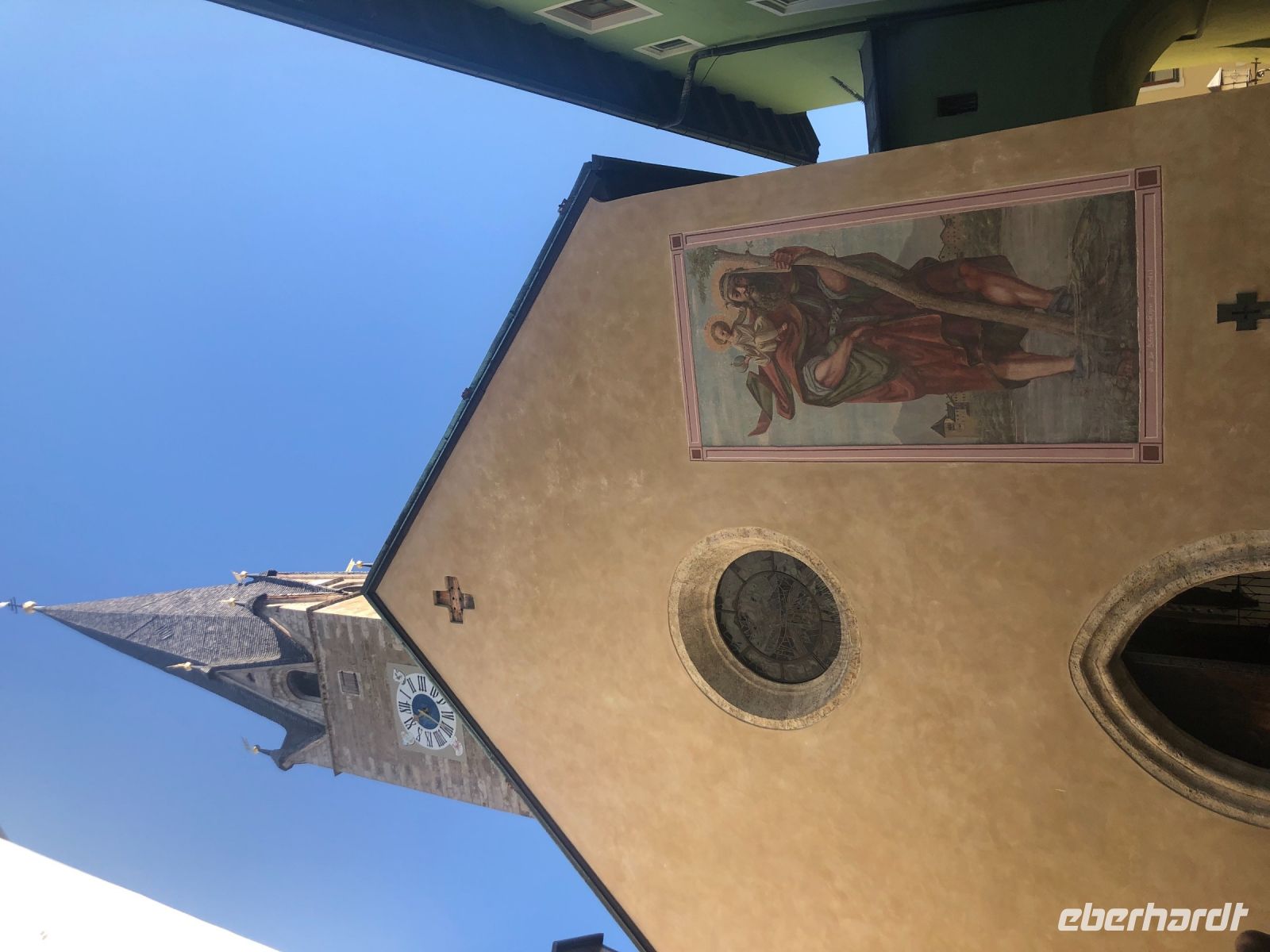 Die Rundreisegäste fahren durch Kirchberg und Brixen im Thale nach Westendorf, wo ein erster Stopp eingelegt wird. Zu Fuß geht es einmal rund um die Kirche und wer will, kann noch einen Blick in die Sennerei werfen. Hier hat Sabine bereits Käsewürfel erstanden, die zurück am Bus, verkostet werden.