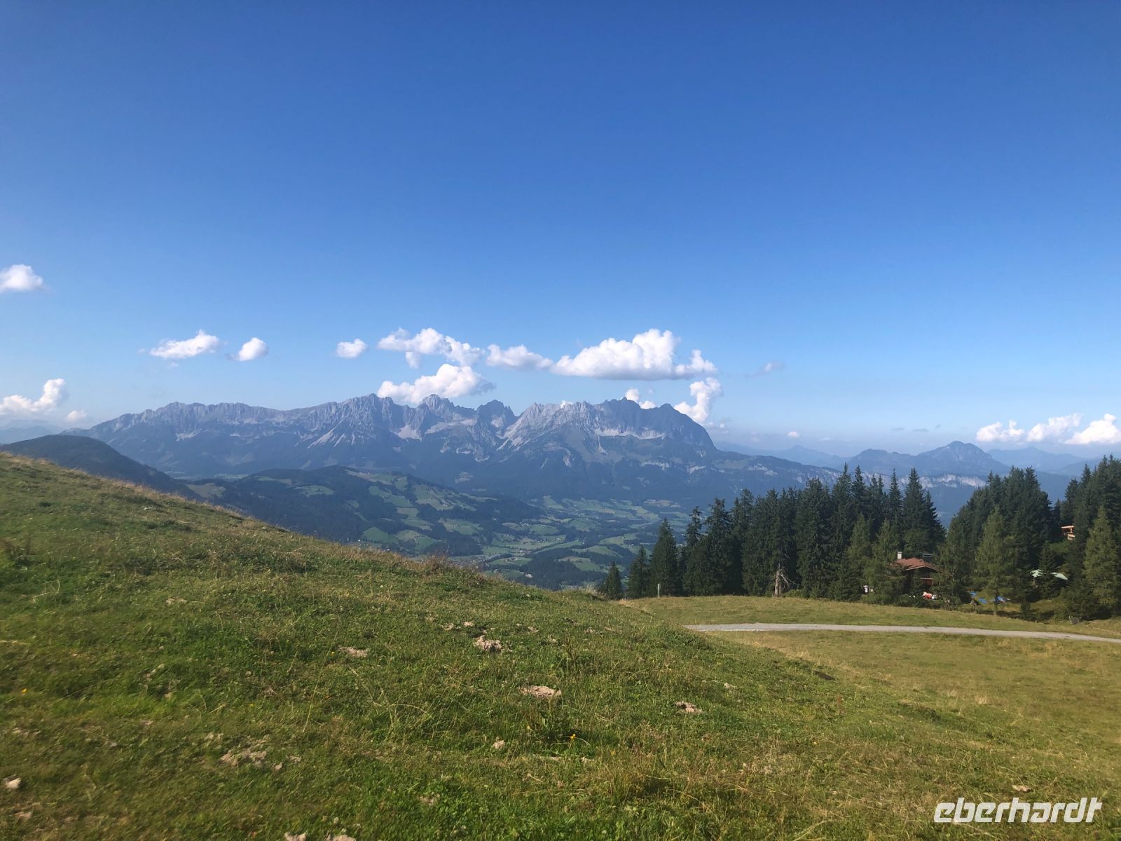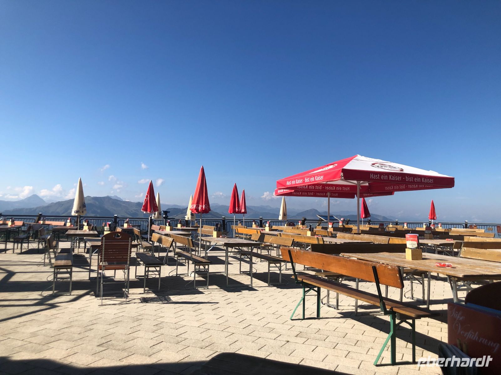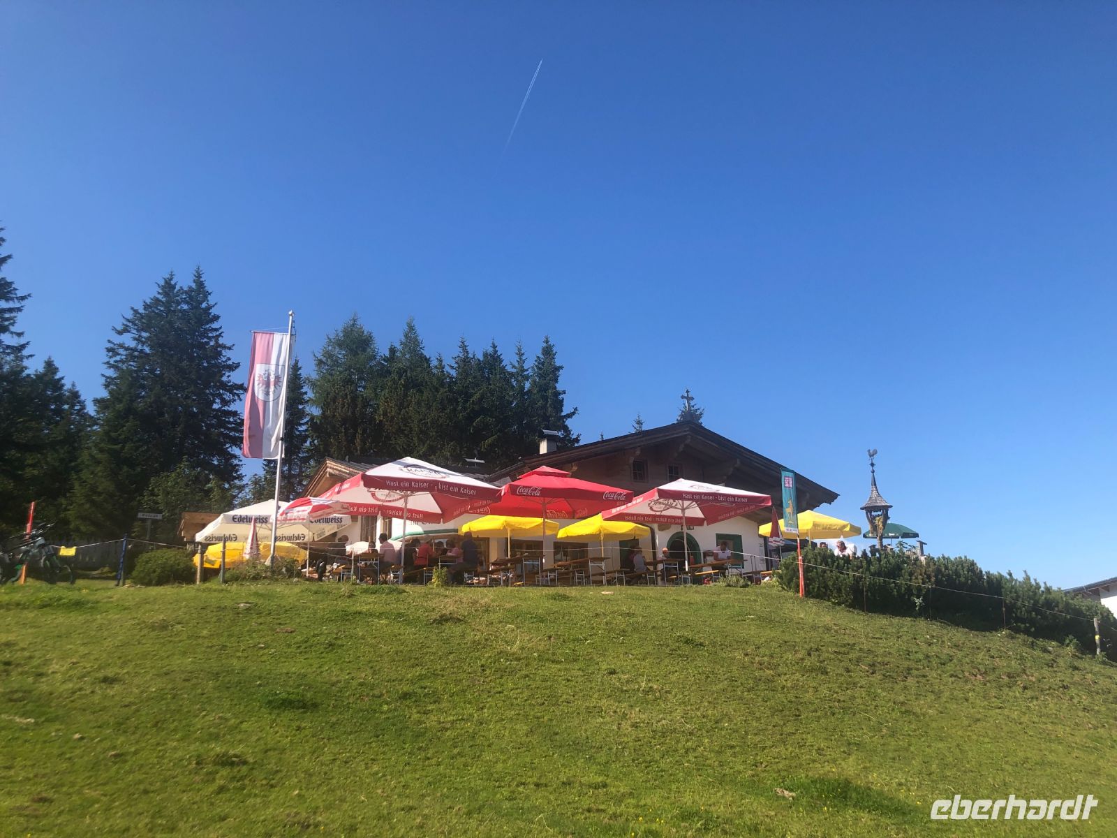 Am Nachmittag werden wir auf der Wochenbrunner Alm erwartet. Nach einer kurzen Irritation bezüglich der Gästezahlen, findet sich schnell eine Lösung (passt schon) und wir bekommen drei Tische mit beeindruckender Aussicht zugeteilt. Nach geraumer Zeit wird die Jausenplatte mit einer vielfältigen Auswahl an Wurst, Schinken und Käse mit deftigem Schwarzbrot serviert. Gut gesättigt treffen wir am Abend wieder in Kitzbühel ein.