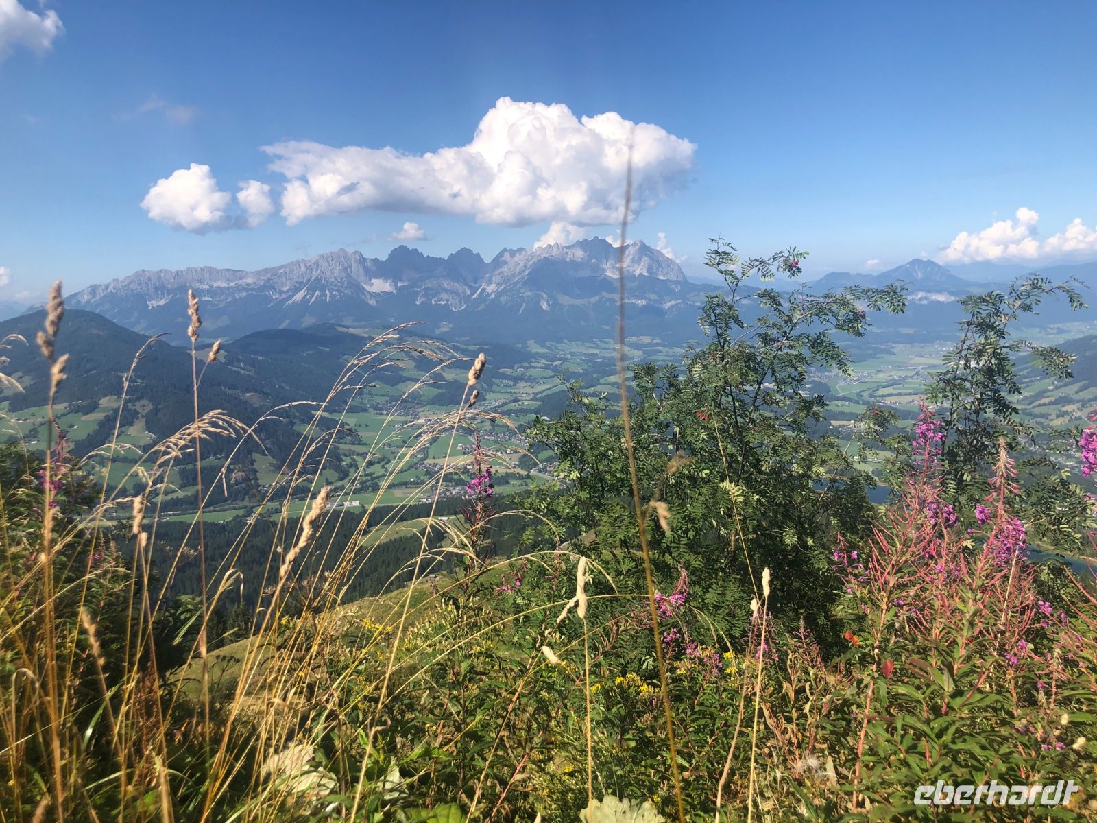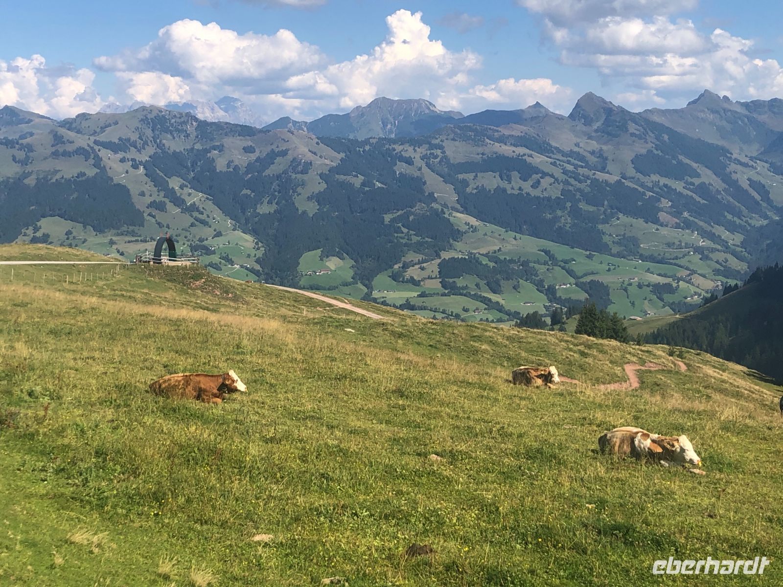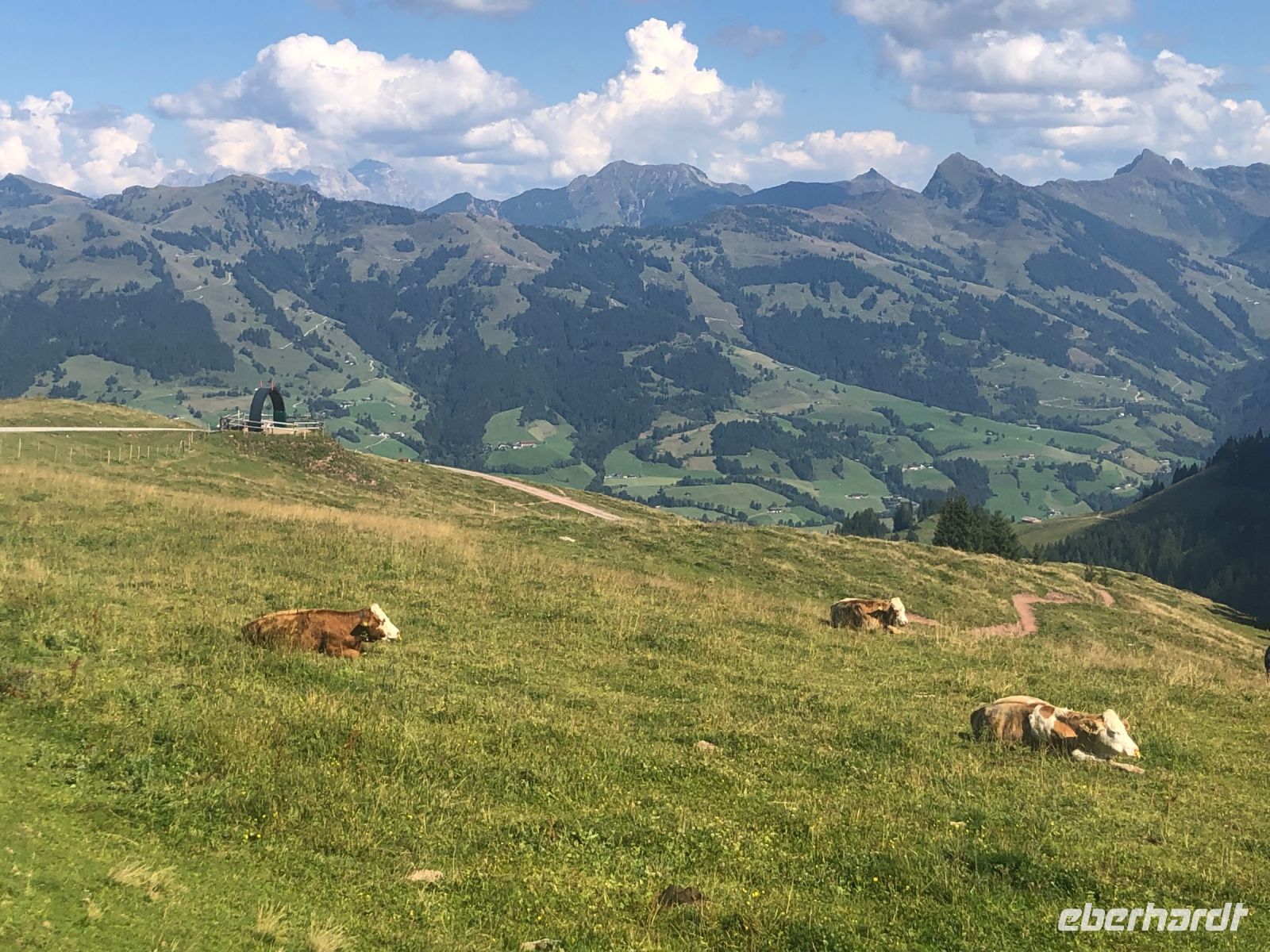 Am Nachmittag werden wir auf der Wochenbrunner Alm erwartet. Nach einer kurzen Irritation bezüglich der Gästezahlen, findet sich schnell eine Lösung (passt schon) und wir bekommen drei Tische mit beeindruckender Aussicht zugeteilt. Nach geraumer Zeit wird die Jausenplatte mit einer vielfältigen Auswahl an Wurst, Schinken und Käse mit deftigem Schwarzbrot serviert. Gut gesättigt treffen wir am Abend wieder in Kitzbühel ein.
