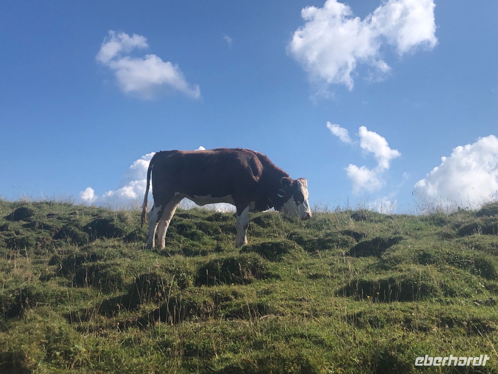 Unser Bergführer Harry ist inzwischen auch eingetroffen und so können wir uns bei der nun anstehenden Wanderung in zwei Gruppen aufteilen - die Anspruchsvollen und die Gemütlichen. Im idyllisch gelegenen Berggasthof treffen wir uns wieder und nach dem Genuss von leckerem Blaubeerkuchen und einer Tasse Kaffee schweben wir mit den Gondeln wieder ins Tal hinab.
