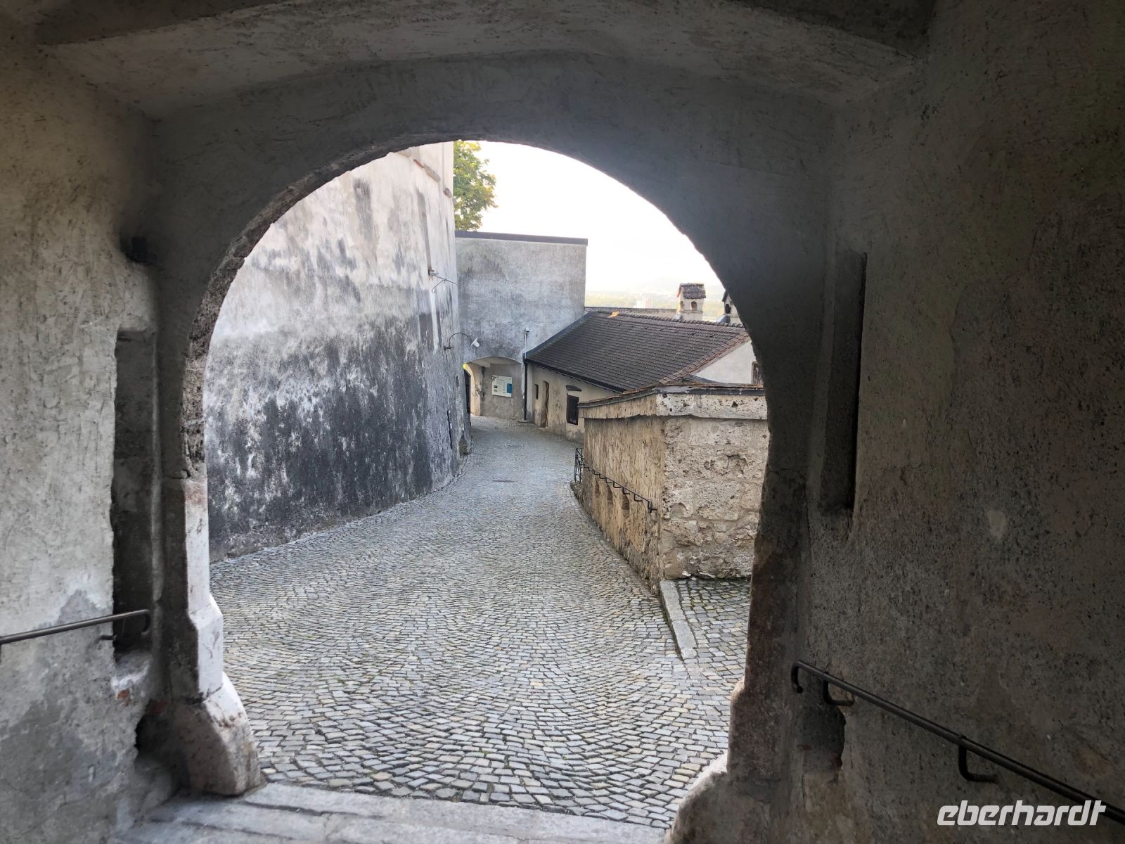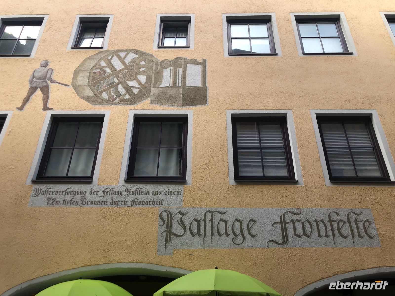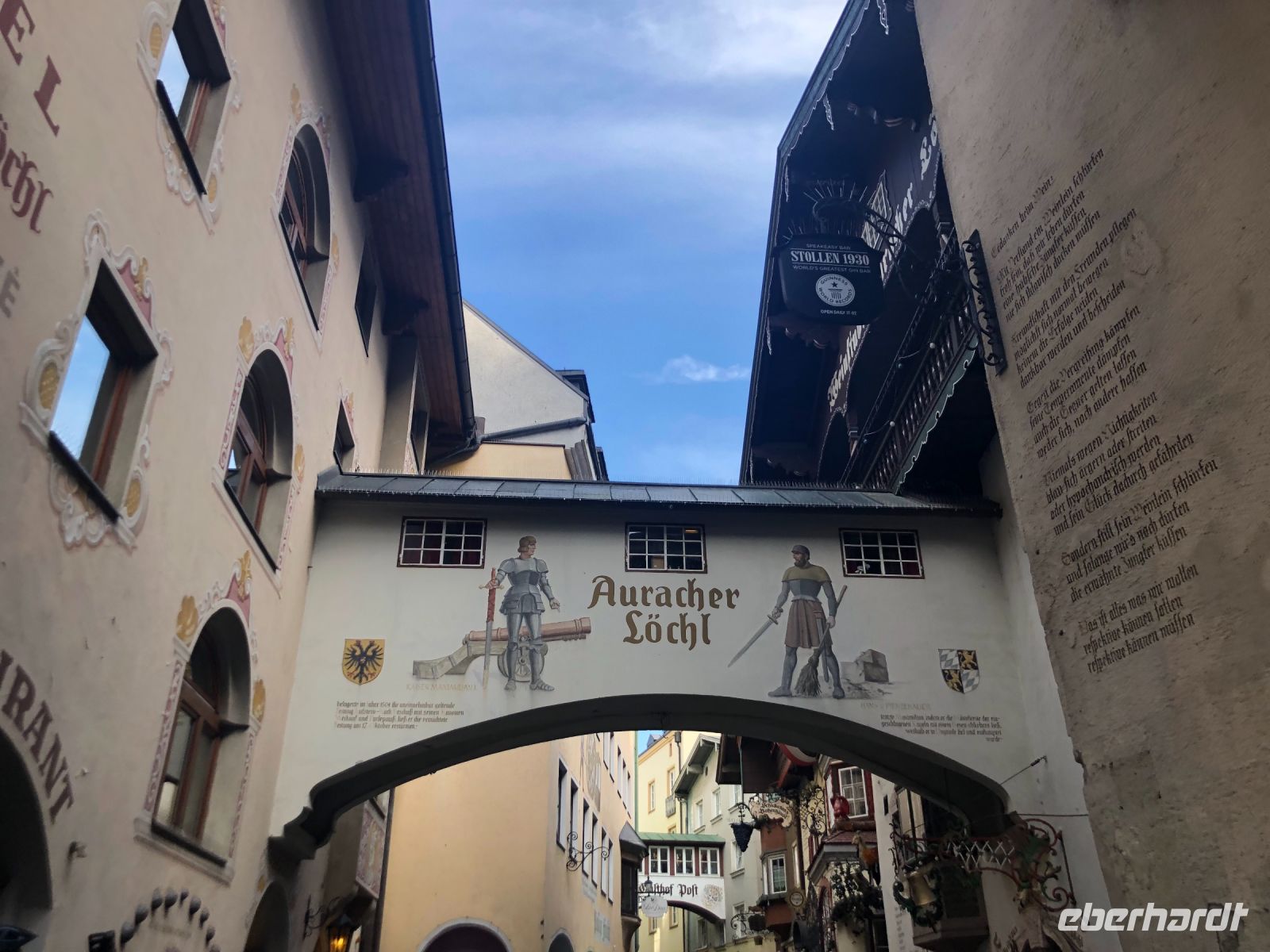 Vom Parkplatz spazieren wir am Inn entlang und kommen direkt in die bekannte Römerhofgasse. Wir bewundern die bunt bemalten Fassaden und das berühmte Auracher Löchl. Am Ende der Gasse führt eine steile Treppe zum Eingang der Festung Kufstein. Nachdem wir die Eintrittskarten erworben haben, können wir einen gläsernen Aufzug nutzen und gelangen bequem auf die Burg. Diese erobert jeder für sich. Einige genießen das Spiel der Heldenorgel, andere besuchen die multimediale Ausstellung im Fuchsturm, wo ein spannender Film über die Geschichte der Festung berichtet. Zurück in der Stadt ist noch ausreichend Zeit zum Mittagessen oder zum Bummel durch die Souvenirläden.