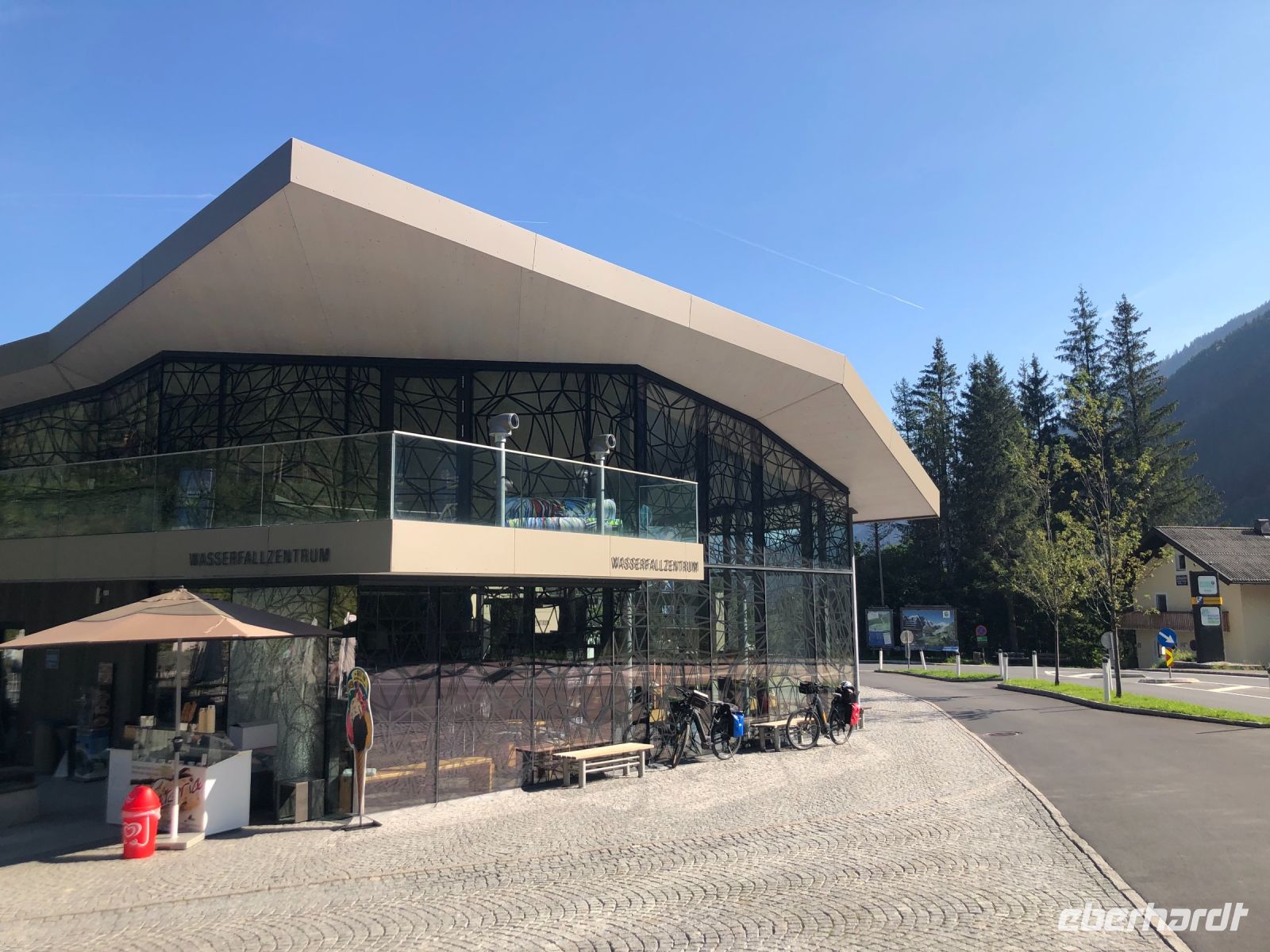 Von Kitzbühel aus fahren wir über den Pass Thurn zu den Krimmler Wasserfällen. Auf 1274 Metern Höhe legen wir einen Fotostopp ein. Es ist nicht zu übersehen, dass die Pass-Straße eine Hauptverbindung zwischen Tirol und Salzburger Land ist. Viele Pkws und Lastkraftwagen sind hier unterwegs und das Objekt der Begierde, das Schild mit der Höhenmeterangabe befindet sich mitten auf der Straße. Doch alle haben mit mehr oder weniger guten Fotos den Stopp überstanden und wir fahren weiter zu den Krimmler Wasserfällen. Neu ist eine Ausstellung namens Wunderbare Wasserwelten, die erst im letzten Jahr aufwendig restauriert und gestaltet wurde. Keine Frage, dass Eberhardt TRAVEL seine Gäste zusätzlich zu diesem Programmpunkt einlädt. Zu sehen ist das lebensspendende Element Wasser in all seinen Facetten. Es gibt ein Wasserkaleidoskop mit faszinierenden visuellen Effekten, einen Raum mit 3750 Wasserflaschen und viele Informationen rund um das Thema Wasser. Besonderen Spaß aber haben wir im anschließenden Park, wo wir spielerisch mit Wasser experimentieren können. Dieses Erlebnis ist nicht nur für Kinder gedacht. Zu Fuß geht es dann direkt zu den Wasserfällen. Über drei Stufen stürzen sich hier die Wassermassen in die Tiefe. Einige Gäste nutzen die Gelegenheit und wandern bis zur zweiten Stufe hinauf. Bis ganz oben hat es wohl keiner geschafft. Nachdem wir die Kaskaden ausgiebig bewundert haben, treffen wir uns im Café Hanke, wo wir mit dem Blick auf die Fälle unseren Mittagsimbiss genießen.