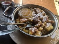 Wir widmen uns wieder den schöneren Dingen und kehren in die Fischbachalm ein. Die Karte bietet regionale Speisen und so genießen wir wieder Kaiserschmarrn und Co.