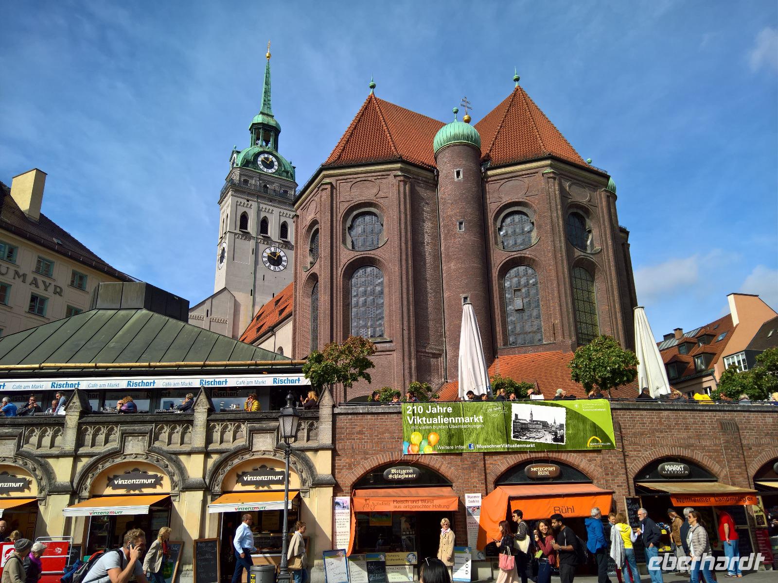 Am Viktualienmarkt kann eine Weißwurst gegessen werden oder was auch sonst noch. Wer wollte, konnte dann mit dem Reiseleiter zum Hofbräuhaus gehen und das bekannteste Münchner Lokal betrachten.