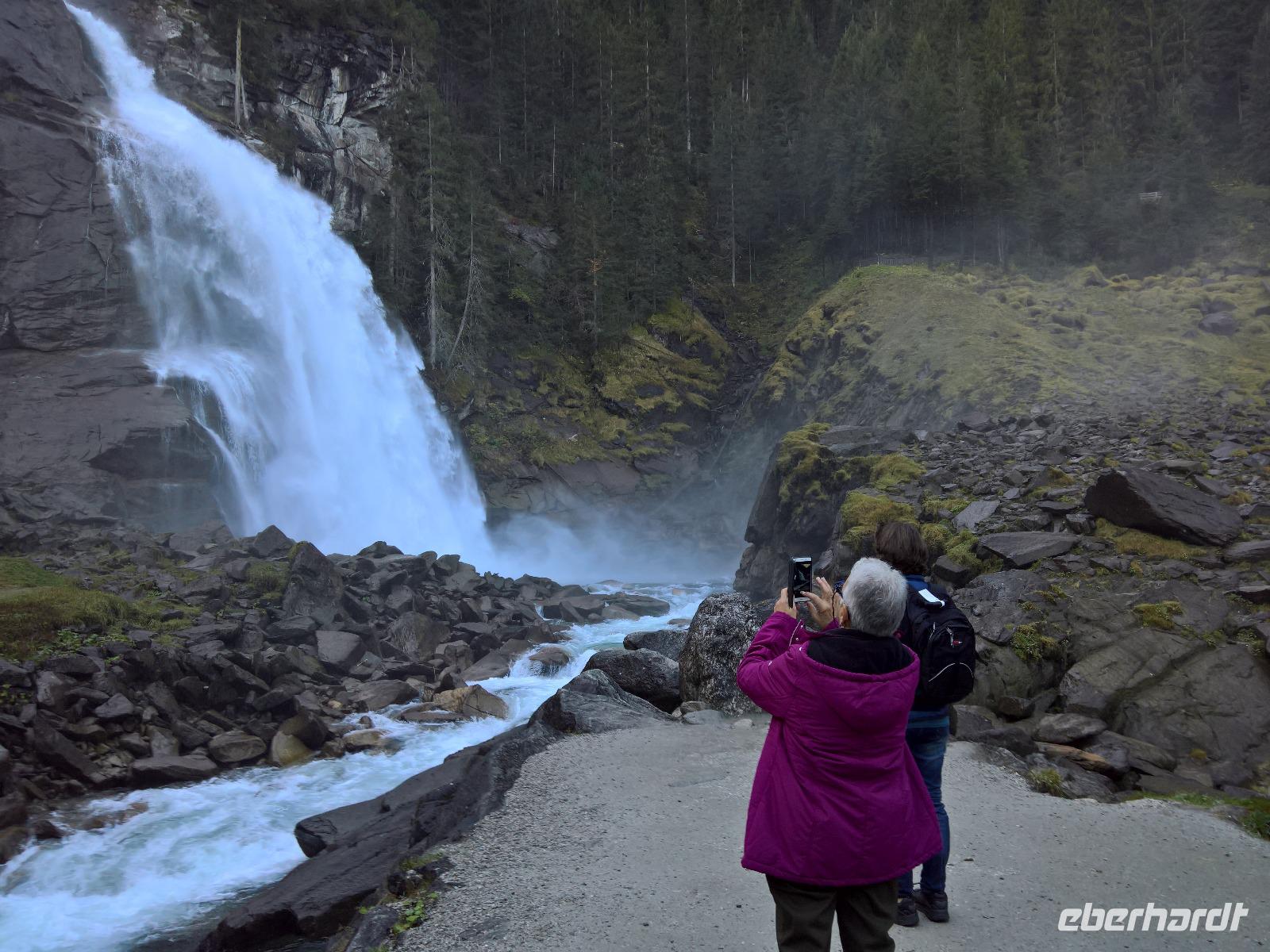Heute ist Zillertalrundfahrt angesagt. Vom Hotel aus starten wir mit dem ersten Ziel Krimmler Wasserfälle, wo die Krimmler Ache mit einer Fallhöhe von insgesamt 380 m vom Krimmler Achental in den Talkessel von Krimml stürzt. Ein imposantes Schauspiel.