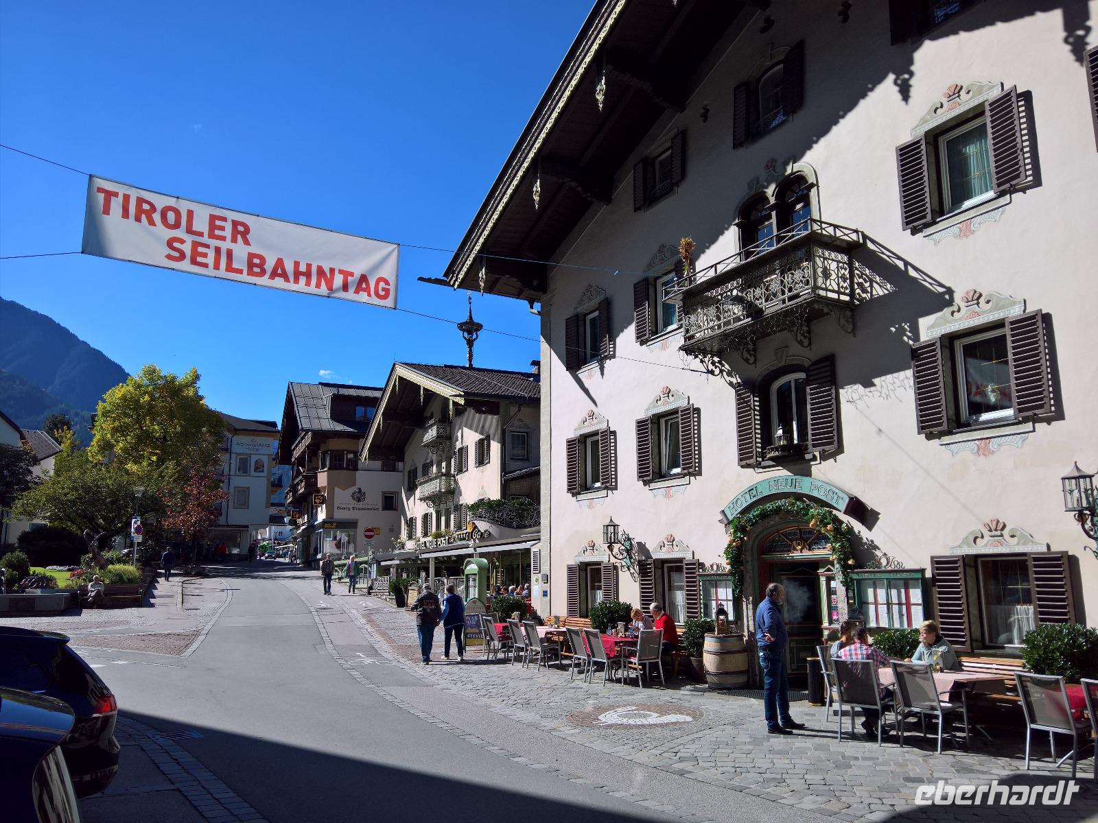 Unsere geplante Seilbahnfahrt hoch zum Hahnenkamm fällt leider dem Wetter zum Opfer. Nachts hatte es oben ordentlich geschneit, jetzt war Nebel, sodass wir nach Rücksprache mit den örtlich Verantwortlichen auf die Seilbahnfahrt verzichten mußten.