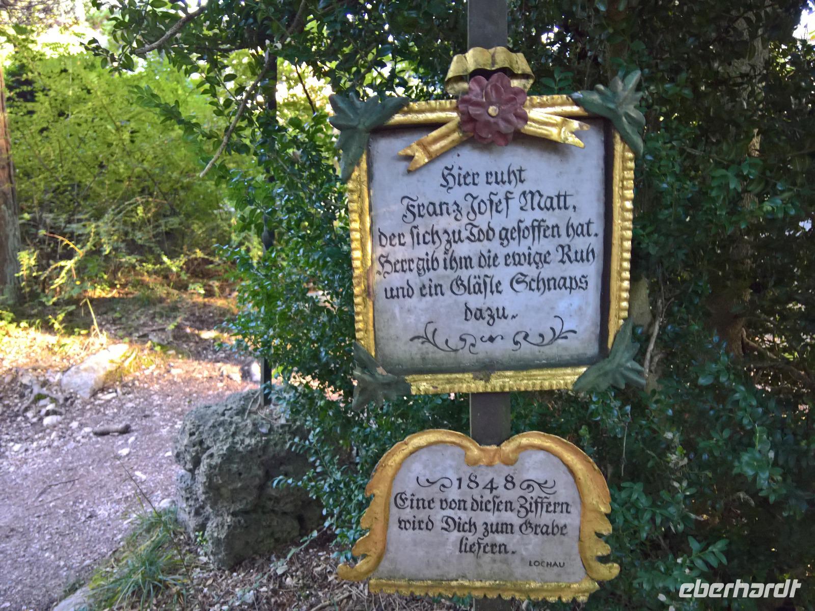 Dann fahren wir über den Inn und haben nach kurzer Zeit den Ort Kramsach erreicht. Hier gibt es den berühmten Museumsfriedhof zu besichtigen. Aus dem umliegenden Alpenland sind von Friedhöfen lustige bis skurrile Grabkreuze gesammelt worden und hier wieder aufgerichtet worden. Nirgendwo sonst hat man auf einem "Friedhof" so viele schmunzelnde Gesichter gesehen.