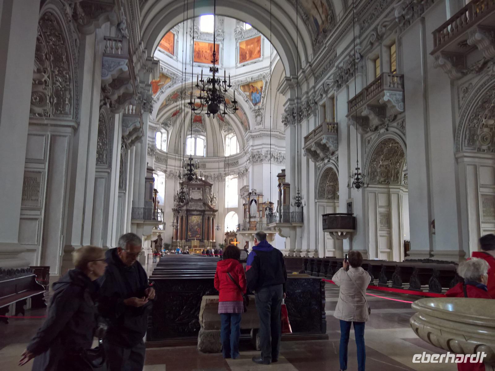 Ein Blick in den Dom, heute ein Barockbau, früher romanisch mit 11 Altären und 7 Glocken, zeugt von der Pracht Salzburgs.