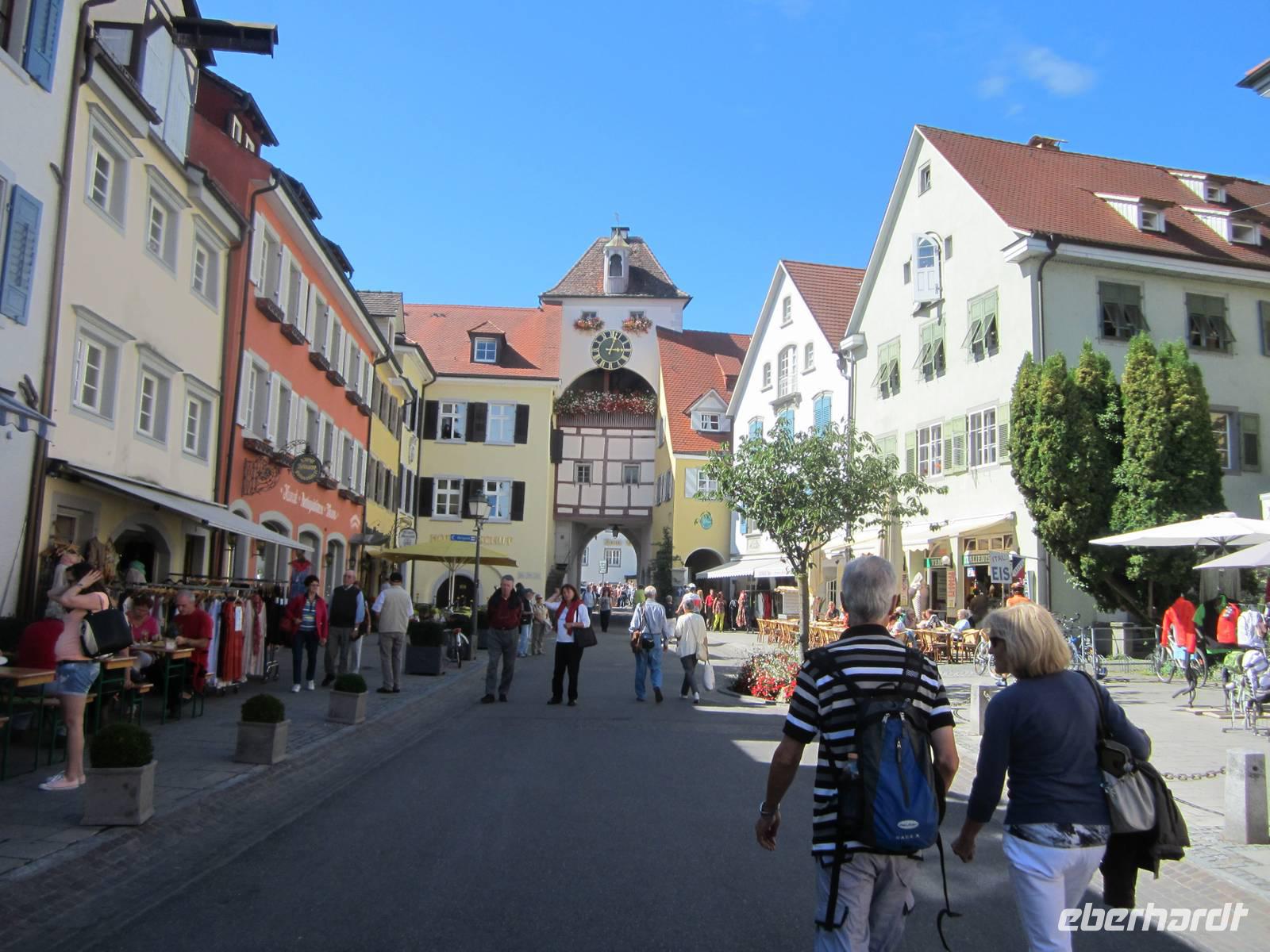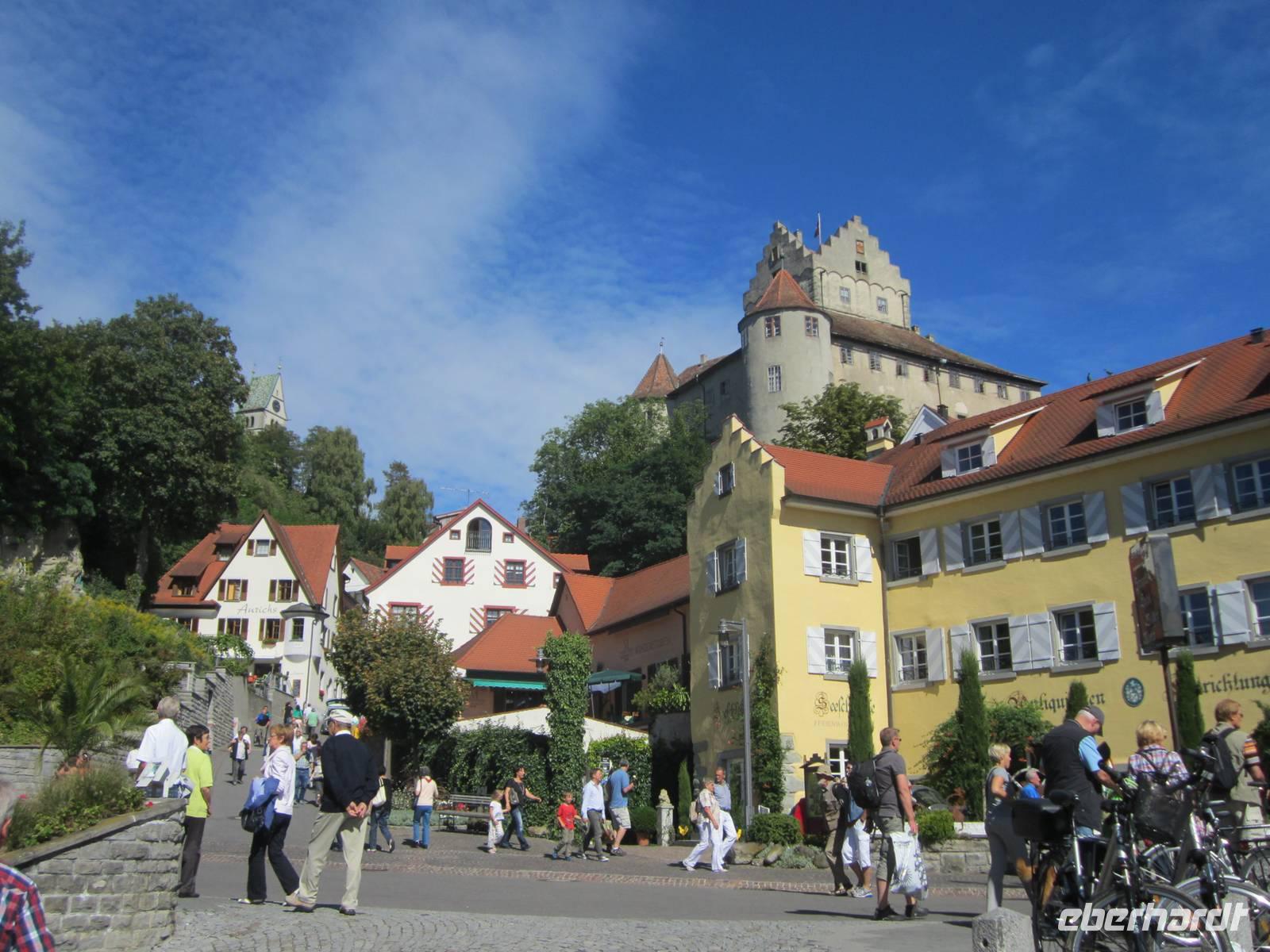 Heute müssen wir zeitig aus den Betten.Der erste Blick gilt dem Wetter. Die Berge sind frei und der Himmel ist blau genau richtig für den heutigen Tag. Im Programm haben wir die Blumeninsel Mainau. Für uns heißt es ca. 2,5 Stunden Fahrt. Durch einen Zwischenfall verzögert sich unsere Abfahrt und wir stellen unsere Anfahrt zur Insel um. Wir heben uns die Fahrt entlang der Alpenstraße für heute Nachmittag auf und fahren heute früh über den höchst gelegenen, befahrbaren Pass in Deutschland. Den Riedbergpass. Auf der Passhöhe ist die Höhe von 1420 m ü.NN angegeben. Andere Quellen geben den Pass mit einer Höhe von 1407 m ü.NN an (?). Auf die paar Meter kommt es uns nicht an. Die Fahrt ist angenehm, wenn für unseren Chauffeur auch nicht immer leicht. Nach Balderschwang überqueren wir die Grenze nach Österreich. Wir haben das Bundesland Vorarlberg erreicht, zu dem auch das Kleinwalsertal gehört. Weiter führt uns unsere Fahrt durch den Bregenzer Wald, durch Dornbirn zur Schweizer Grenze. Wir nehmen den Grenzübergang Au, um unsere Fahrt entlang des Bodensees auf Schweizer Seite fortzusetzen. Gegen Mittag werden wir auf der Insel Mainau zu einer Inselführung erwartet. Anschließend bleibt noch Zeit die Insel individuell zu erkunden.Am Nachmittag fahren wir mit dem Schiff nach Meersburg. Wir haben eine Stunde Zeit diesen idyllischen Ort, der Hauptort des Fremdenverkehrs am Bodensee ist zu erkunden. Weiter fahren wir entlang dem Bodensee durch Friedrichhafen, an Lindau vorbei weiter auf der Alpenstraße in das Kleinwalsertal.Ein anstrengender Tag mit einer Fahrt durch eine sehr schöne Landschaft geht zu Ende.