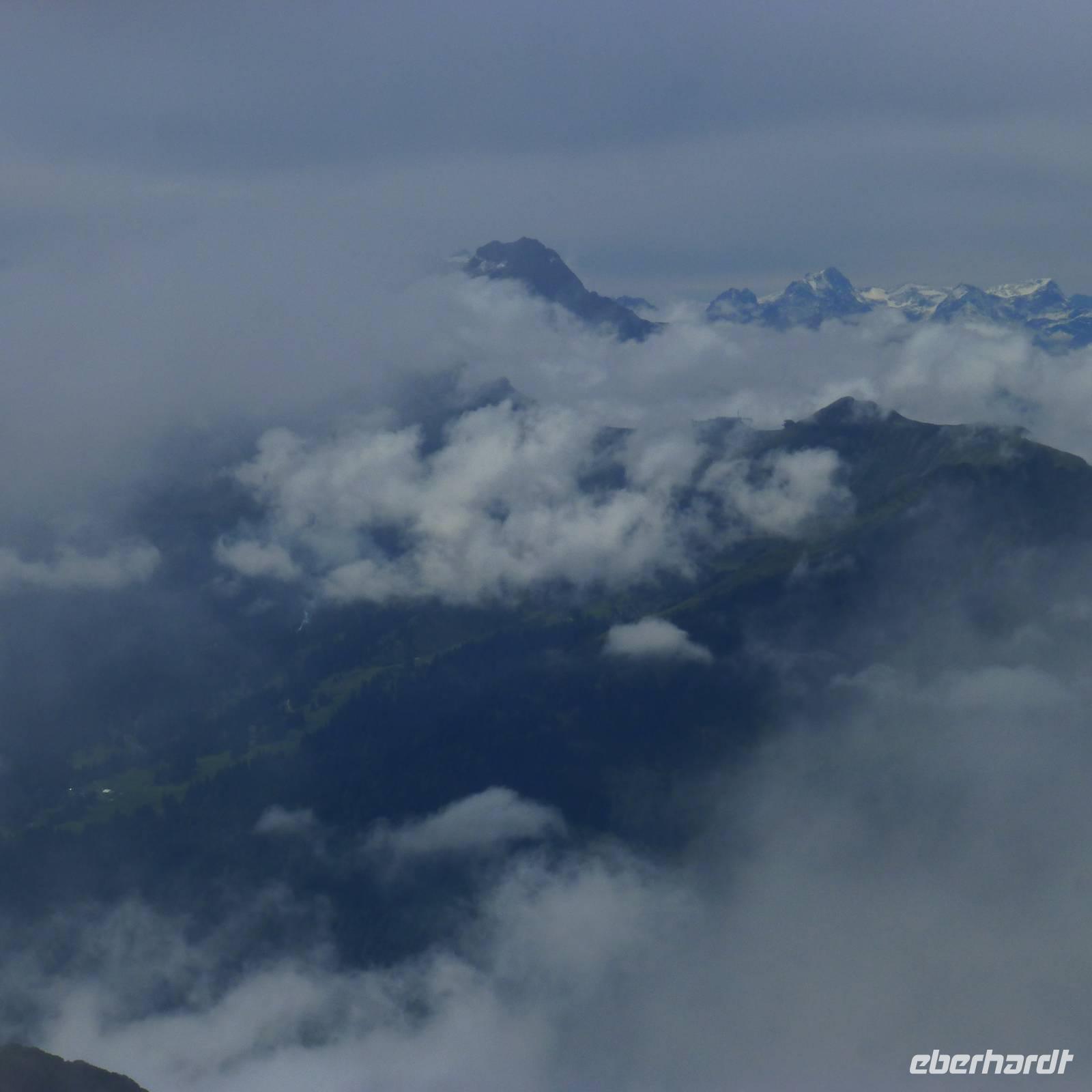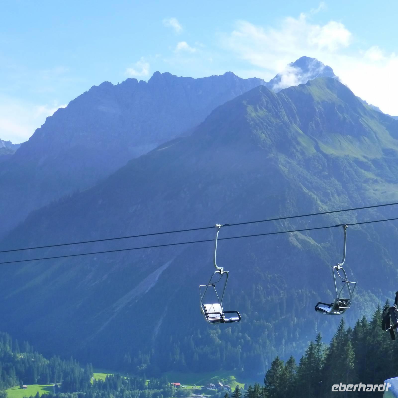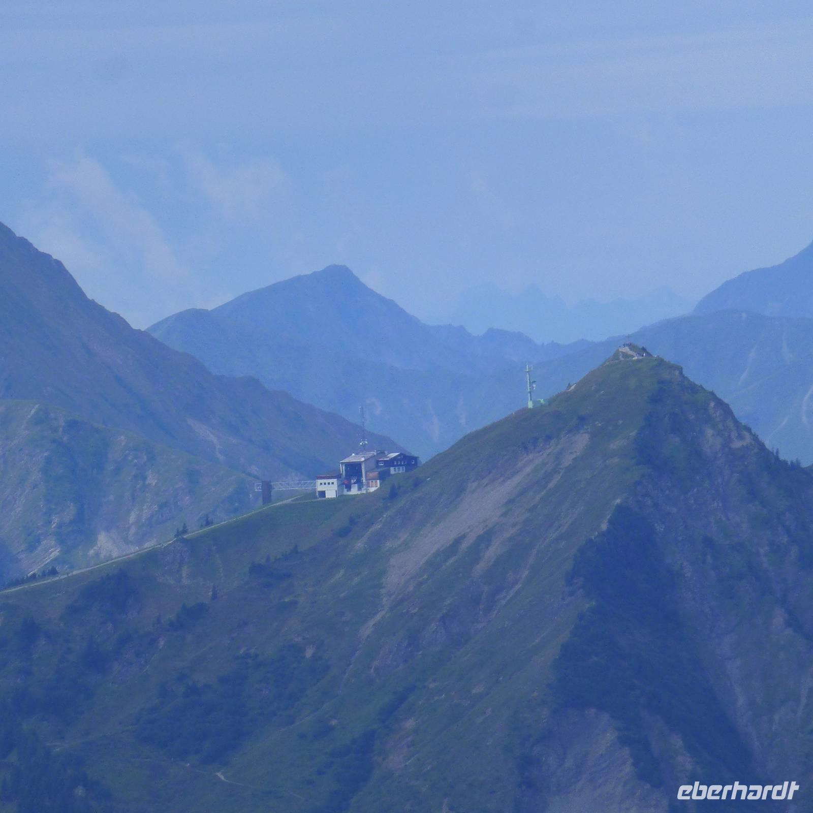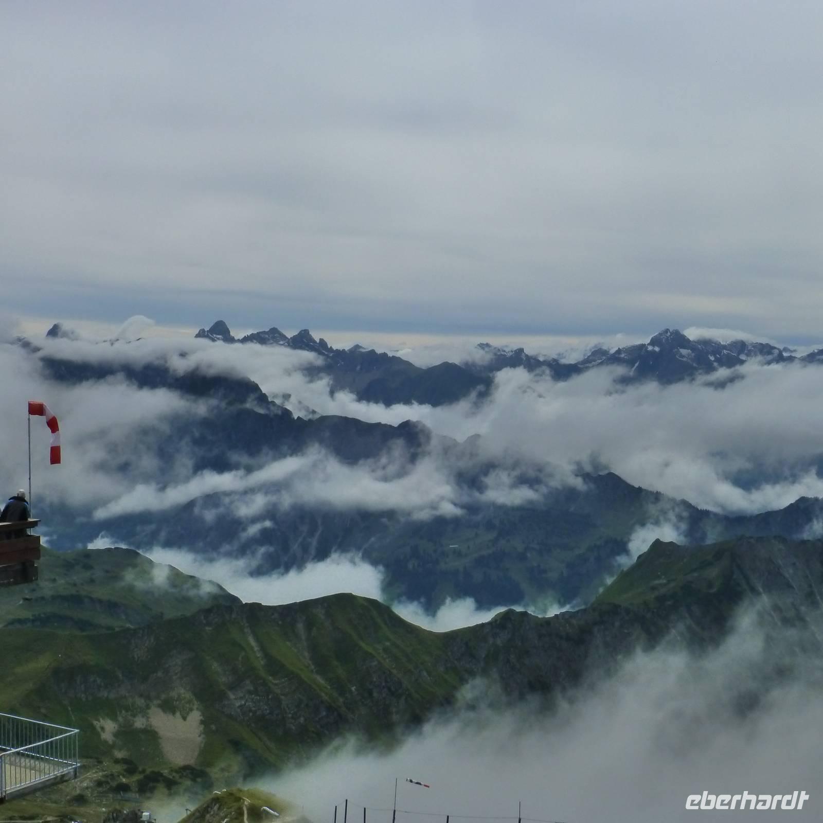 Mit der Kabinenbahn fuhren wir auf das 1.996 Meter hohe Walmendingerhorn! Einige Gäste erklommen über den Lehrpfad, der die einzigartige Artenvielfalt der Pflanzen erklärt, das Gipfelkreuz. Auch hier entschädigte uns ein schöner Blick in das Kleinwalsertal. erst bei der Rückfahrt regnete es.