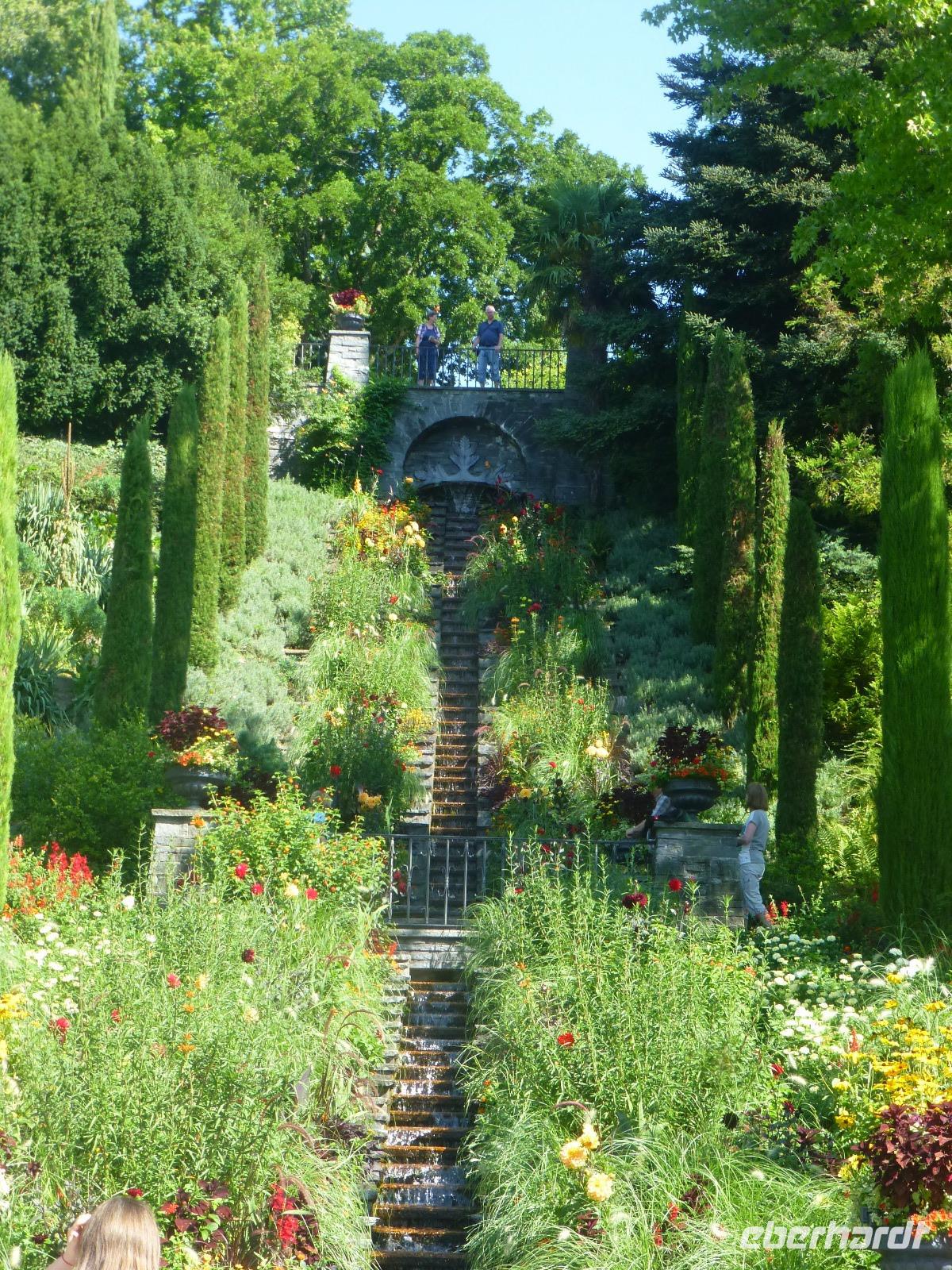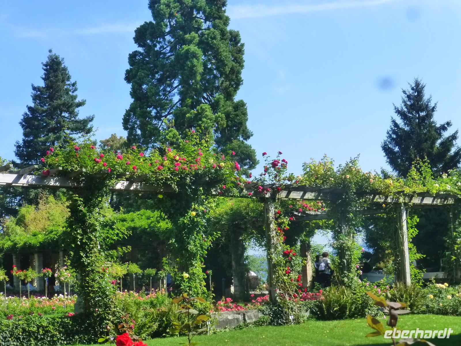 Ein Blick aus dem Fenster - uns erwartet ein sonniger Tag. Über die Alpenstraße fuhren wir durch Immenstadt und vorbei am Großen Alpsee in Richtung Bregenz. Dabei hatten wir einen schönen Blick auf die Vorarlberger Alpen. Entlang des Bodensees erreichten wir Meersburg. Geprägt ist diese Stadt durch die Älteste bewohnte Burg Deutschlands und das neue Schloss was sich mitten in den Weinbergen befindet. Ein Schiff brachte uns in nur 20 Minuten zur Insel Mainau. Gemeinsam unternahmen wir einen Rundgang auf der Insel. Jedes Jahr wird die Insel 4-mal umgepflanzt. Dafür stehen 37 Gärtner zur Verfügung. Besonders schön ist die Italienische Blumen Wassertreppe. Durch den Wald führt uns der Weg oberhalb der Treppe. Wir spazieren durch den wunderschönen blühenden Rosengarten und erreichen das Fürstliche Schloss. Dort trennen sich unsere Wege und jeder erkundet die Insel auf eigene Faust. Besonders zu empfehlen ist der größte Schmetterlingsgarten in Deutschland. Nach etwas Stau entschlossen wir uns für eine schöne Panoramafahrt nach Baldeschwang und weiter über den Riedbergpass nach Fischen und in das Kleinwalsertal.