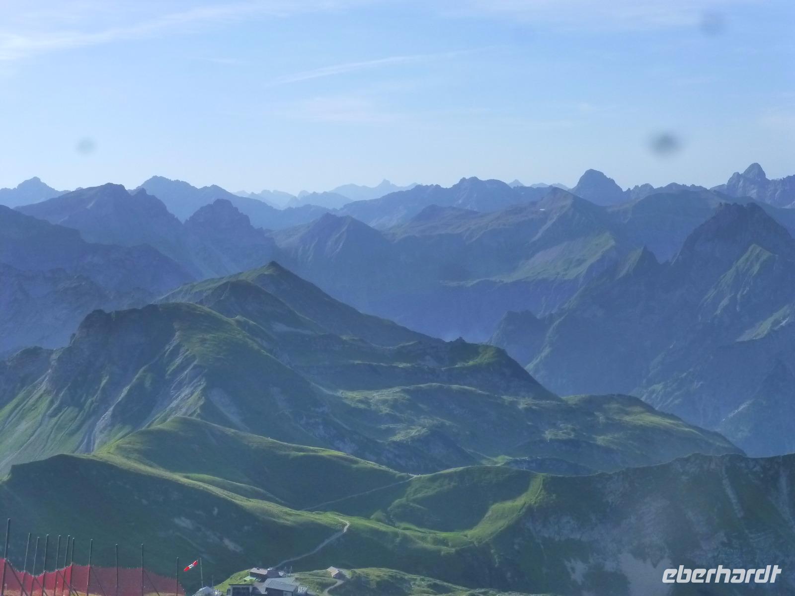 Heute heißt es zeitig aufstehen. Das richtige Wetter für den Besuch des Nebelhorns. Damit wir nicht so lange warten müssen wollten wir schon zeitig da sein. Es hat sich gelohnt. In 3 Stationen erreichen wir die Gipfelstation. Letztes Jahr wurde diese komplett umgebaut und erweitert. Dadurch hat man mehr Aussichtplattform, einen bequemeren Weg zum Gipfelkreuz und neue Restaurants mit großer Außenterrasse. Der Ausblick war fantastisch und so hatten wir einen schönen Blick über mehrere Bergmassive. Auch die Thermik war sehr gut und so konnten wir einige Paragleiter beim Start beobachten. Noch etwas Zeit für eigene Entdeckungen und schon ging es weiter zum Fellhorn. Auch hier brachte uns die Bergbahn in 2 Sektionen zur Bergstation. Eine kleine Wanderung bis zum Gipfelkreuz und tolle Aussichten erwarteten uns auch hier. Zum Abschluss des Tages besuchten wir noch die Heini Klopfer Flugschanze. Ein toller Tag ging zu Ende.