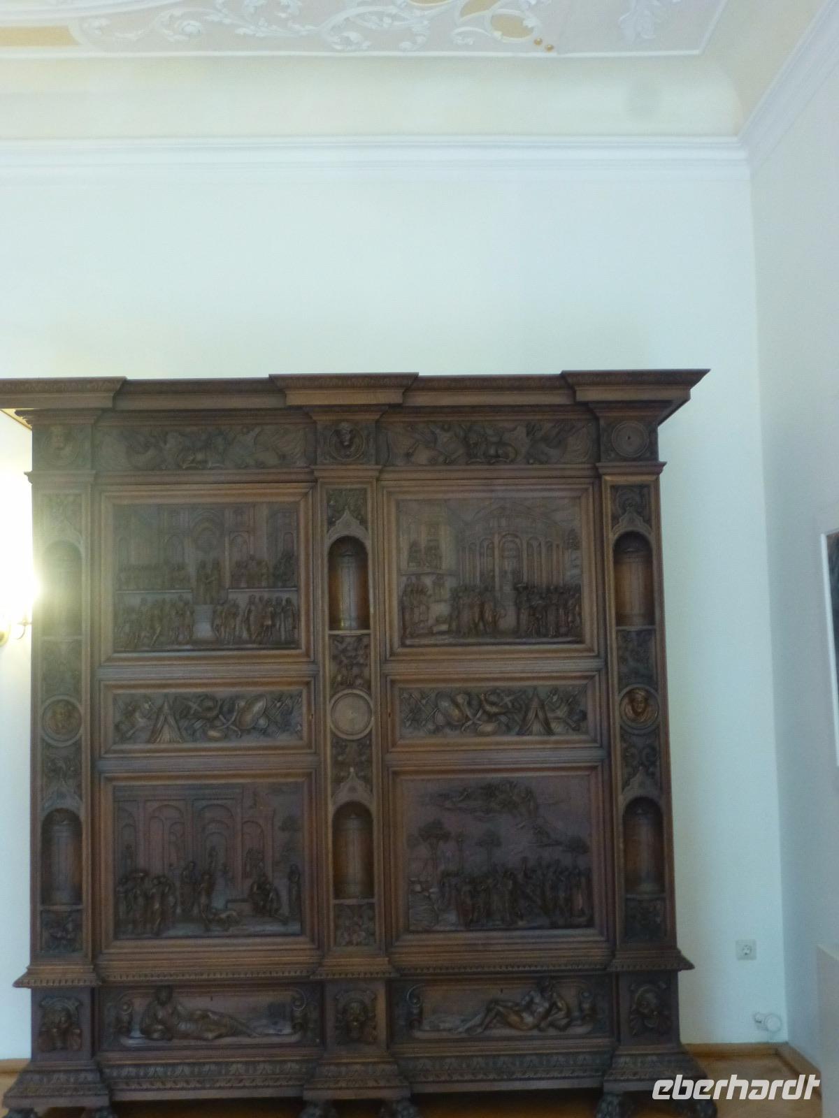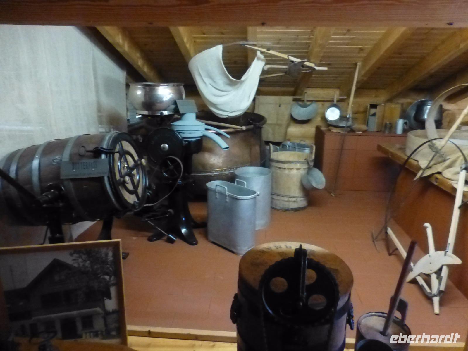 Für den heutigen Tag war überall schlechtes Wetter und Regen angesagt. Deshalb fuhren wir in den Westallgäu nach Kisslegg. Dort unternahmen wir eine Führung durch das Schloss von 1727. Dieses wurde mit viel Einsatz der Gemeinde und dem Denkmalschutz liebevoll renoviert. Besonders die schönen Stuckdecken und die Wandmalereien in den Räumen waren sehenswert. Im Lüsterzimmer kann man sich das Ja Wort geben. Das Schloss wird aber auch für Konzerte, Ausstellungen und den Weihnachtsmarkt genutzt. Nach diesem Besuch war die Käserei Vogler unser Ziel. Dort haben wir im Sennerstübl Mittag gegessen. Nachdem wir uns etwas verkleidet hatten führte uns der Käsemeister durch die Käserei und erklärte uns den Unterschied zwischen Hart-, Schnitt- und Weichkäse. Natürlich durfte danach auch gekostet werden. Im Käserei Museum wurden alte Käsereien wieder aufgebaut.