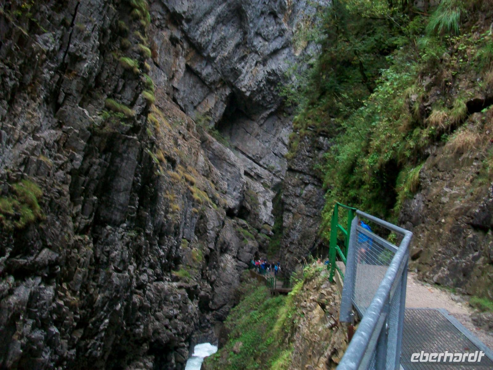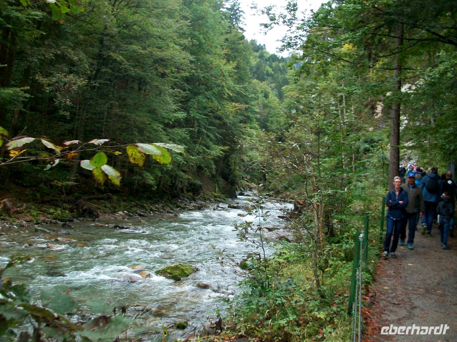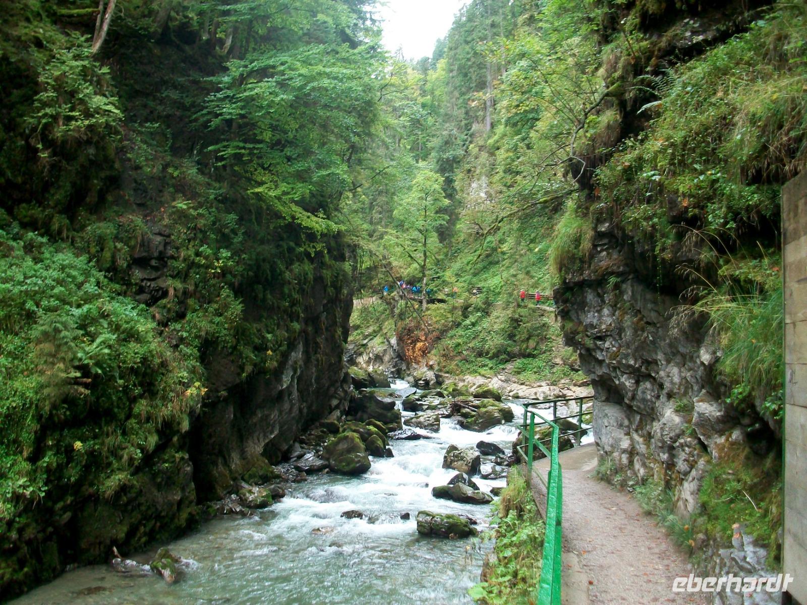 23.9.2018. An diesem Morgen ziehen dicke Wolken durch das Tal; in der Nacht hat es etwas geregnet und als wir uns aufmachen, sind die Wolken noch nicht gewichen. Das hemmt unseren Tatendrang aber nicht um uns an diesem Vormittag eines der beeindruckenden Naturwunder der Gegend anzuschauen. Im Laufe der Jahrmillionen hat sich der kleine Fluss Breitach tief in das Gestein eingefressen und die Klamm die sich dabei gebildet hat, wollen wir nun besuchen. Am Eingang erwartet uns ein interessanter Film, dann geht es los. Bald rücken die steilen Wände ganz eng zusammen; tief zu unseren Füßen gurgelt der Wildfluss und bald wird es ganz dunkel. Beim Blick nach oben ist der Himmel nicht mehr zu sehen und wie in einer gigantischen Höhle verläuft unser Weg. Etwas beängstigend ist das schon; die Wege sind aber gut ausgebaut und bald treten die Wände wieder zurück und es geht, immer noch entlang des Flusses, hinauf zur Walserschanze direkt an der Grenze Deutschlands zu Österreich.Das Nebelhorn und OberstdorfNur langsam weichen heute die Wolken; die Berge sind aber bis zu den Spitzen frei und somit steht unserer nachmittäglichen Bergtour nichts mehr im Wege. Es geht das Tal abwärts uns bald sehen wir zu unserer Rechten, eingebettet in ein weites Tal, die malerischen Häuser und den spitzen Kirchturm von Oberstdorf. Das ist unser Ziel und bald gelangen wir zur Talstation des Nebelhorns. Wir brauchen auch gar nicht lange zu warten, die Gondel bringt uns hinauf zur ersten Station. Hier sehen wir die schönen Wanderwege, steigen in die nächste Gondel und nach kurzer Fahrt bringt uns eine letzte Bahn ganz hinauf zur Spitze. Hier über der Baumgrenze, auf über 2 000 Metern, bietet sich uns ein Rundblick der überwältigender nicht sein kann. Ringsumher schroffe Bergspitzen, Bergdohlen umfliegen uns dabei geschickt, und als unser Blick nach Norden geht, sehen wir im Hintergrund die grünen Wiesen des Allgäus - einfach wunderbar. Wir können uns gar nicht so richtig von diesen schönen Impressionen losreisen, aber der Ort Oberstdorf hat schließlich auch noch etwas zu bieten. Und somit geht es mit der Bahn wieder herab; die Sonne ist nun auch da und der Bummel entlang der pittoresken Häuser von Oberstdorf wird zum Genuss und bei immer noch sehr warmen Temperaturen gönnen wir uns ein Eis oder einen Kaffee auf der Terrasse in einem der zahlreichen Restaurants und atmen dabei ganz tief die reine Luft der Berge.
