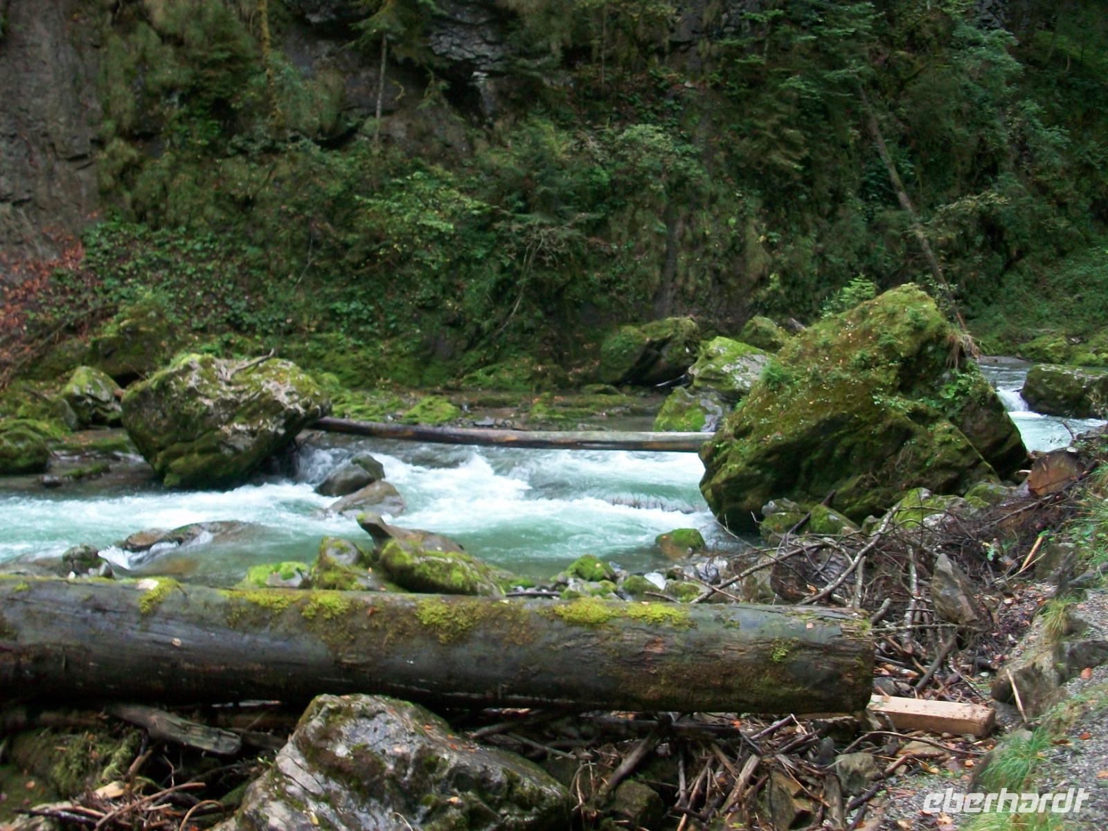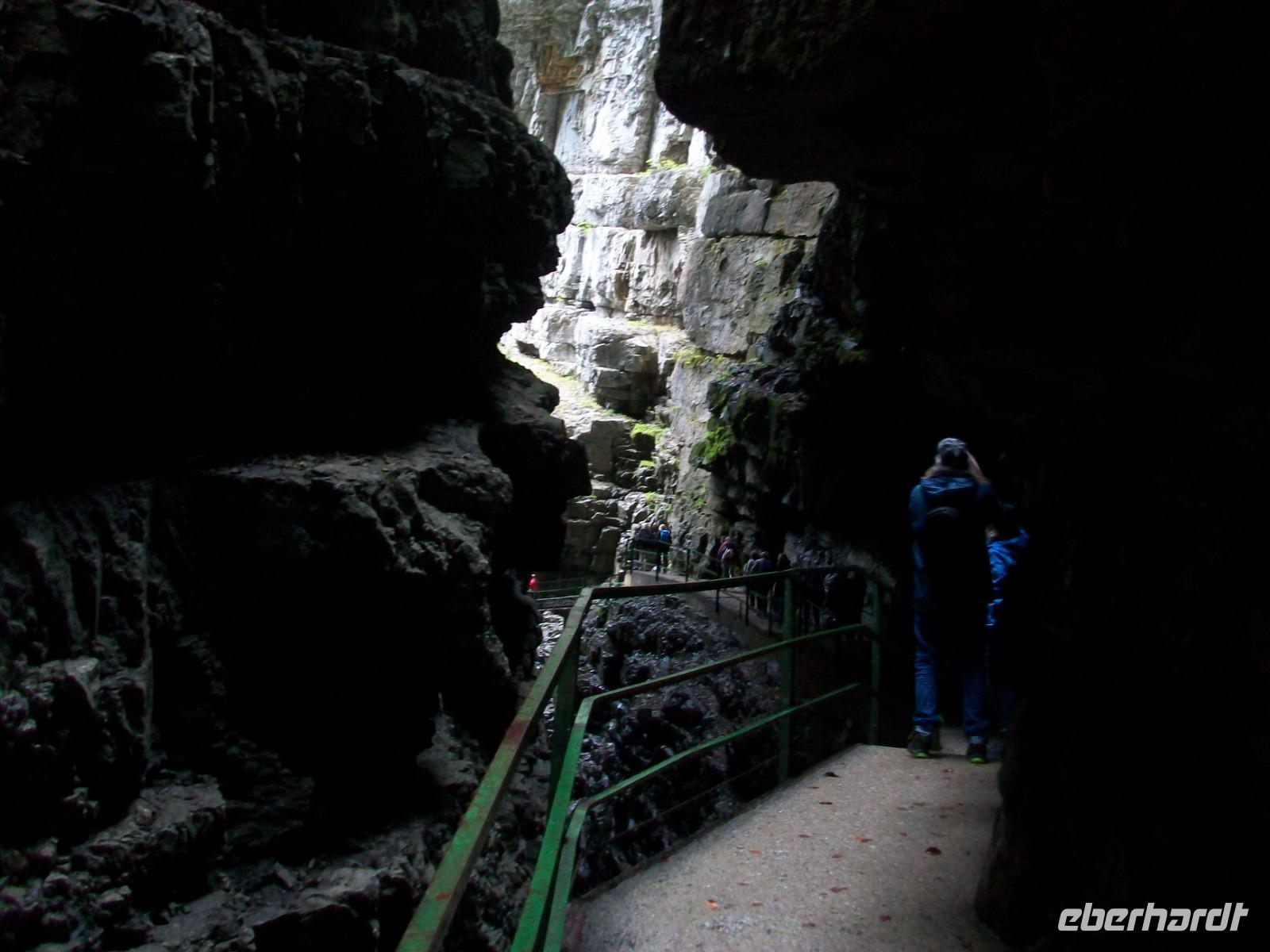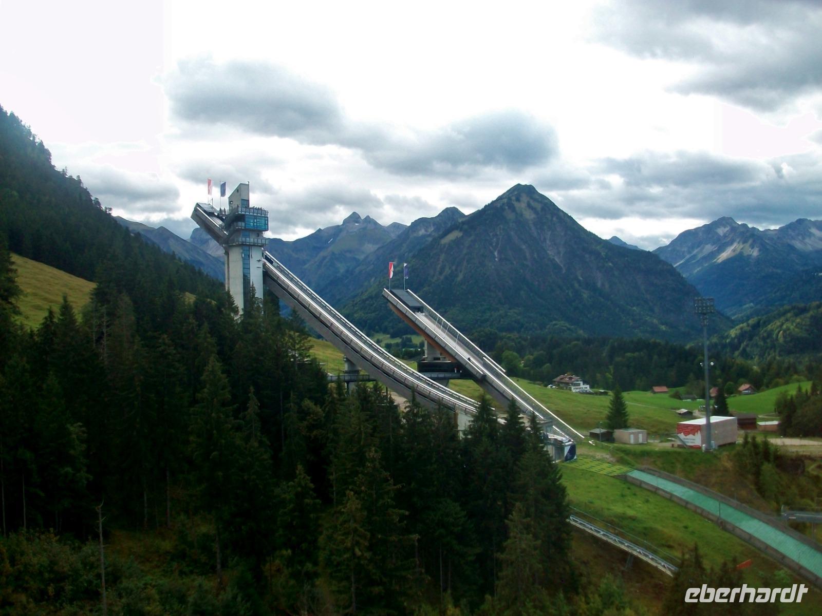 23.9.2018. An diesem Morgen ziehen dicke Wolken durch das Tal; in der Nacht hat es etwas geregnet und als wir uns aufmachen, sind die Wolken noch nicht gewichen. Das hemmt unseren Tatendrang aber nicht um uns an diesem Vormittag eines der beeindruckenden Naturwunder der Gegend anzuschauen. Im Laufe der Jahrmillionen hat sich der kleine Fluss Breitach tief in das Gestein eingefressen und die Klamm die sich dabei gebildet hat, wollen wir nun besuchen. Am Eingang erwartet uns ein interessanter Film, dann geht es los. Bald rücken die steilen Wände ganz eng zusammen; tief zu unseren Füßen gurgelt der Wildfluss und bald wird es ganz dunkel. Beim Blick nach oben ist der Himmel nicht mehr zu sehen und wie in einer gigantischen Höhle verläuft unser Weg. Etwas beängstigend ist das schon; die Wege sind aber gut ausgebaut und bald treten die Wände wieder zurück und es geht, immer noch entlang des Flusses, hinauf zur Walserschanze direkt an der Grenze Deutschlands zu Österreich.Das Nebelhorn und OberstdorfNur langsam weichen heute die Wolken; die Berge sind aber bis zu den Spitzen frei und somit steht unserer nachmittäglichen Bergtour nichts mehr im Wege. Es geht das Tal abwärts uns bald sehen wir zu unserer Rechten, eingebettet in ein weites Tal, die malerischen Häuser und den spitzen Kirchturm von Oberstdorf. Das ist unser Ziel und bald gelangen wir zur Talstation des Nebelhorns. Wir brauchen auch gar nicht lange zu warten, die Gondel bringt uns hinauf zur ersten Station. Hier sehen wir die schönen Wanderwege, steigen in die nächste Gondel und nach kurzer Fahrt bringt uns eine letzte Bahn ganz hinauf zur Spitze. Hier über der Baumgrenze, auf über 2 000 Metern, bietet sich uns ein Rundblick der überwältigender nicht sein kann. Ringsumher schroffe Bergspitzen, Bergdohlen umfliegen uns dabei geschickt, und als unser Blick nach Norden geht, sehen wir im Hintergrund die grünen Wiesen des Allgäus - einfach wunderbar. Wir können uns gar nicht so richtig von diesen schönen Impressionen losreisen, aber der Ort Oberstdorf hat schließlich auch noch etwas zu bieten. Und somit geht es mit der Bahn wieder herab; die Sonne ist nun auch da und der Bummel entlang der pittoresken Häuser von Oberstdorf wird zum Genuss und bei immer noch sehr warmen Temperaturen gönnen wir uns ein Eis oder einen Kaffee auf der Terrasse in einem der zahlreichen Restaurants und atmen dabei ganz tief die reine Luft der Berge.