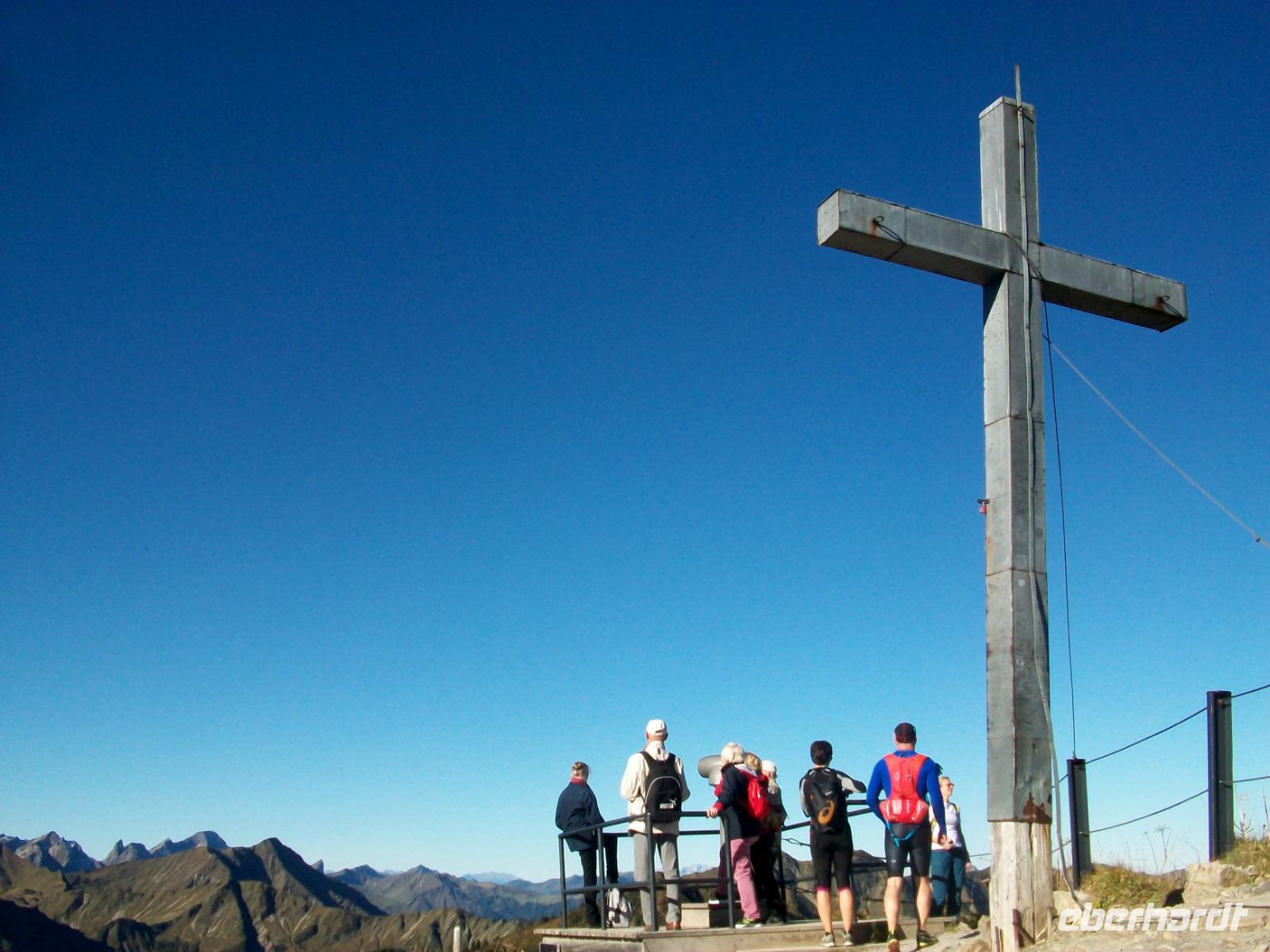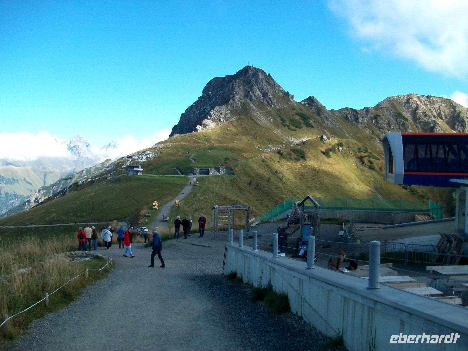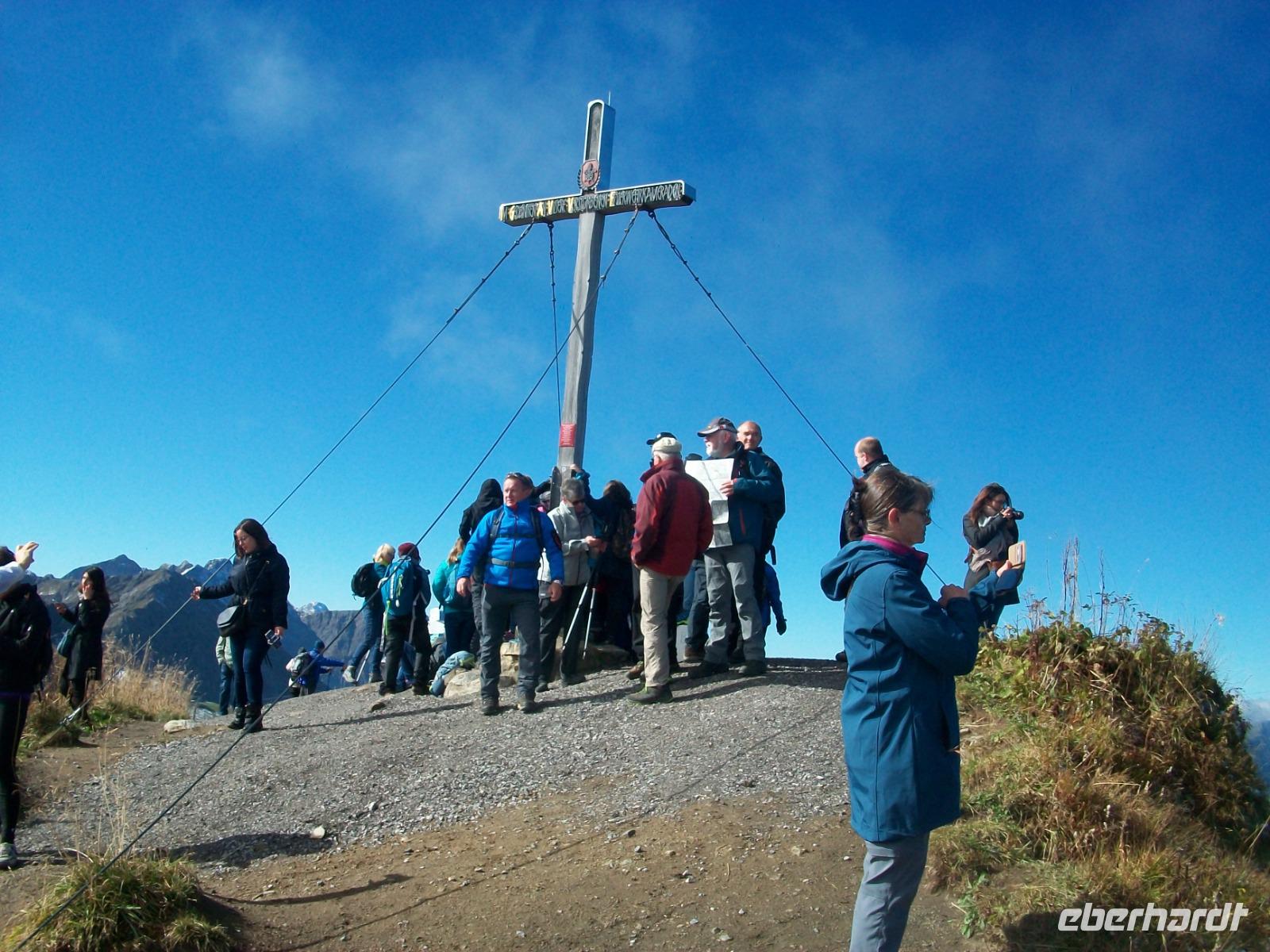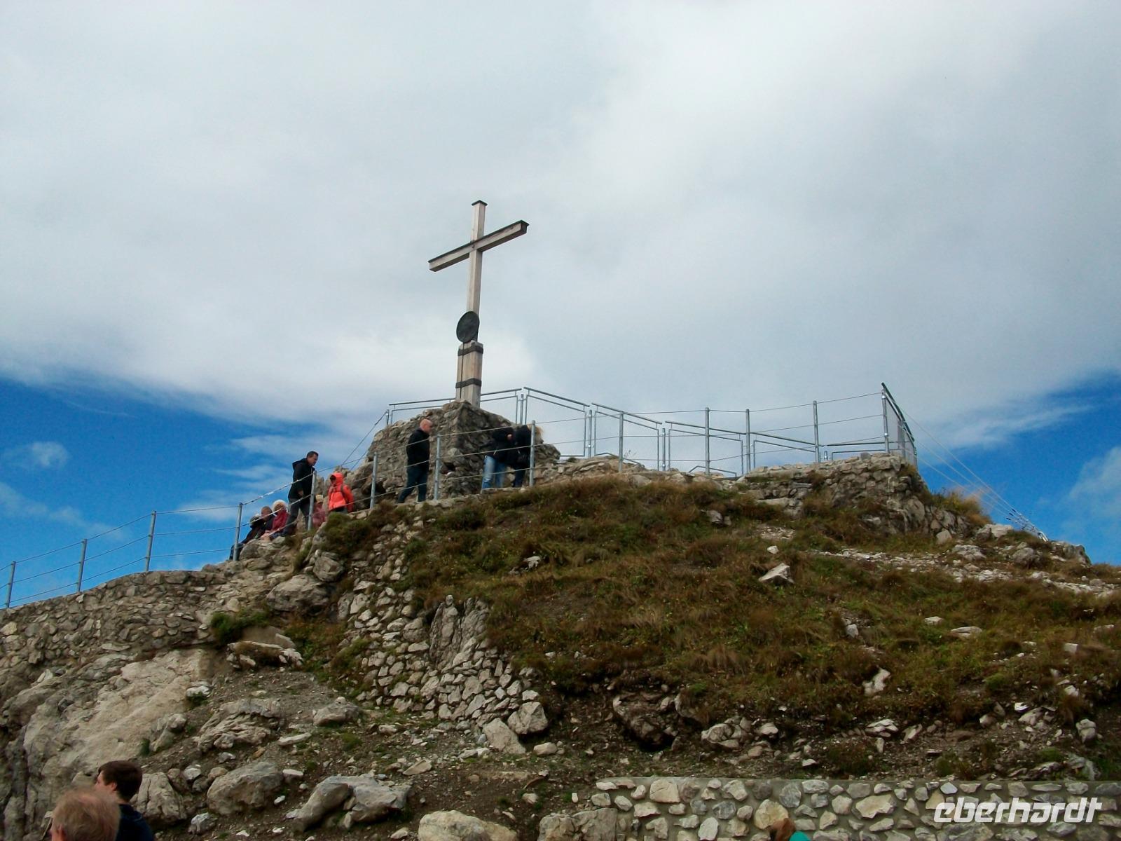Und somit begeben wir uns ein weiteres Mal in die Gondel die uns hinauf bringt; bei jedem Meter den wir hierbei gewinnen zeigen sich erneut atemberaubende Panoramen und, oben angelangt, liegt das Reich der Berge vor unseren Augen. Ein Viertelstunde Weg und wir haben das Gipfelkreuz erreicht; der Blick geht zu Tal und entlang der Bergketten vor uns, Augenblicke die man nie vergisst!