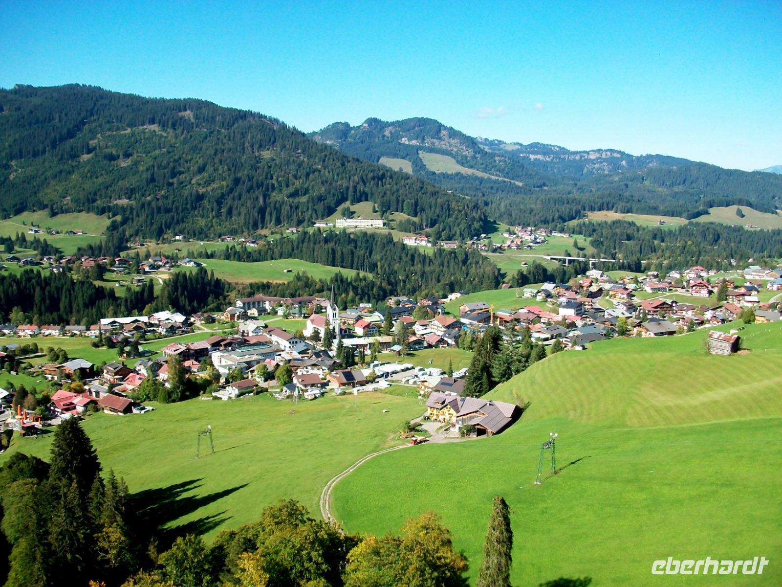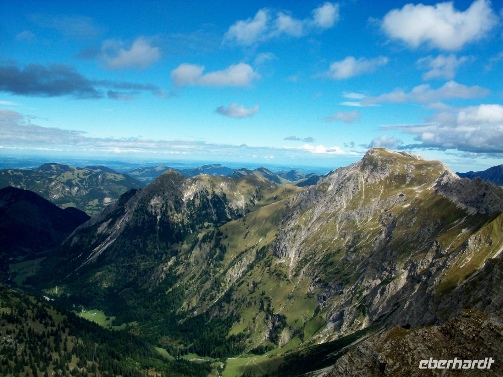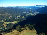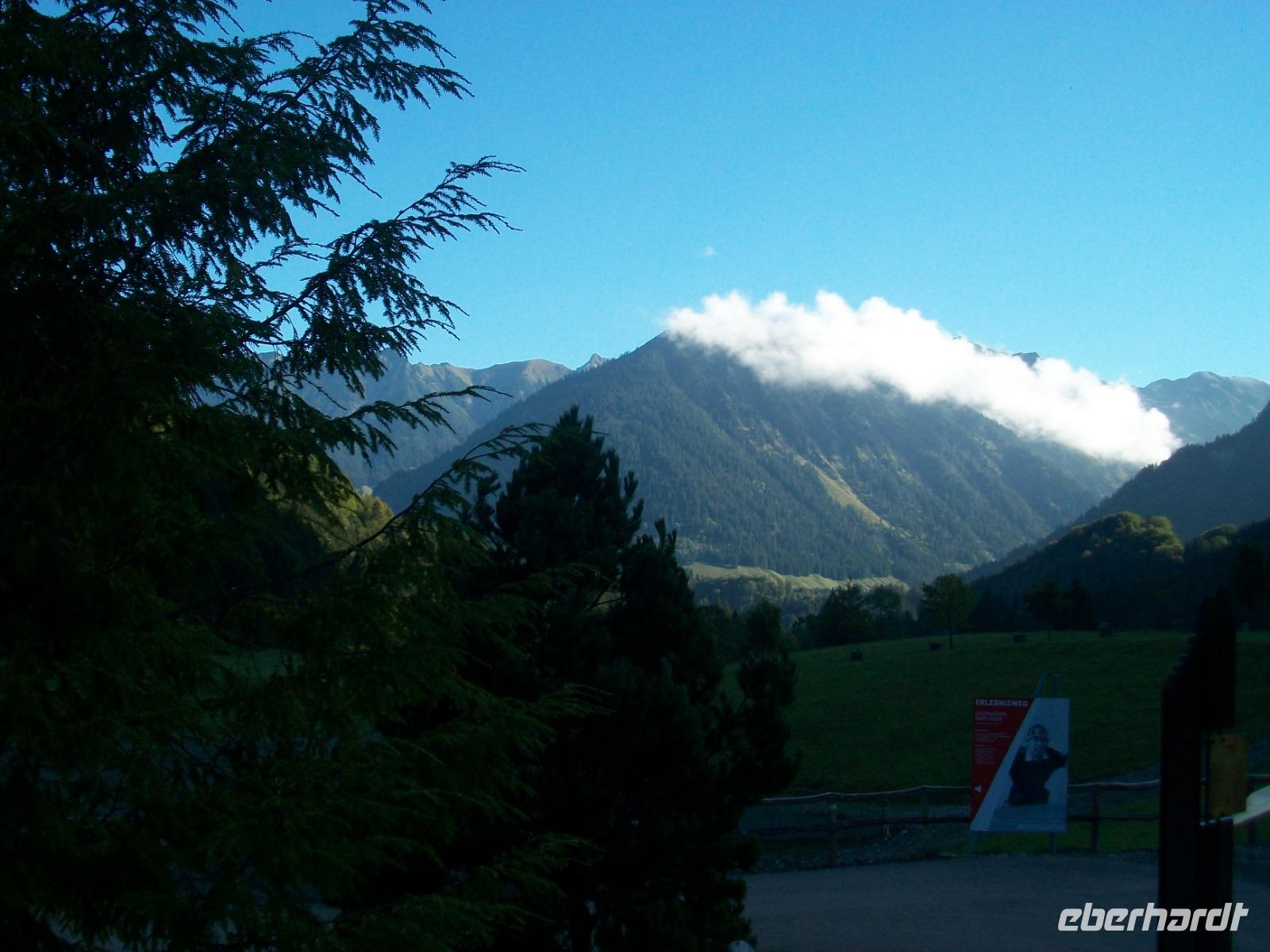 22.9.2018. Der Sommer will in diesem Jahr nicht weichen. Nach einer recht kurzen Nacht schrillt der Wecker und damit beginnt der schöne Urlaub in den Alpen. Doch zunächst geht es zur Abfahrtsstelle des Busses der uns schon einmal durch einige schöne Ecken der Heimat bringt. Als die Sonne aufgegangen ist sehen wir den Kamm des Erzgebirges und durcheilen bald die grünen Erhebungen Frankens, schon hier ein kleiner Vorgeschmack auf die Impressionen der nächsten Tage.Vorbei an Ulm, wir sehen auch einmal kurz den Turm des Münsters, gelangen wir hinter Memmingen in das Allgäu. Ganz im Hintergrund sind dann schon die Alpen zu sehen die, eine lange Kette bildend, schroff emporsteigen. Bald verlassen wir die Autobahn und in diesem leicht welligen Gebiet zeigen sich uns schon all die Naturschönheiten für die das Allgäu so bekannt ist. Saftig - grüne Wiesen auf denen ganz gemütlich die Kühe grasen, schöne, gepflegte Häuser und über allem ist ein blauer Himmel gespannt welchen nur zarte weiße Wolken zieren. Und der Sommer ist auch hier noch nicht gewichen; das Thermometer zeigt über 25° als wir in das Kleinwalsertal einschwenken und wenig später vor unserem Hotel anlagen. Hier werden wir von Doreen ganz herzlich empfangen und, nachdem wir die Zimmer bezogen haben, genehmigen wir uns einen ersten gemütlichen Spaziergang im beeindruckenden Reich der Berge. Zum Abendessen ist dann unsere Gruppe endgültig komplett und muntere Gespräche lassen uns einander kennenlernen.