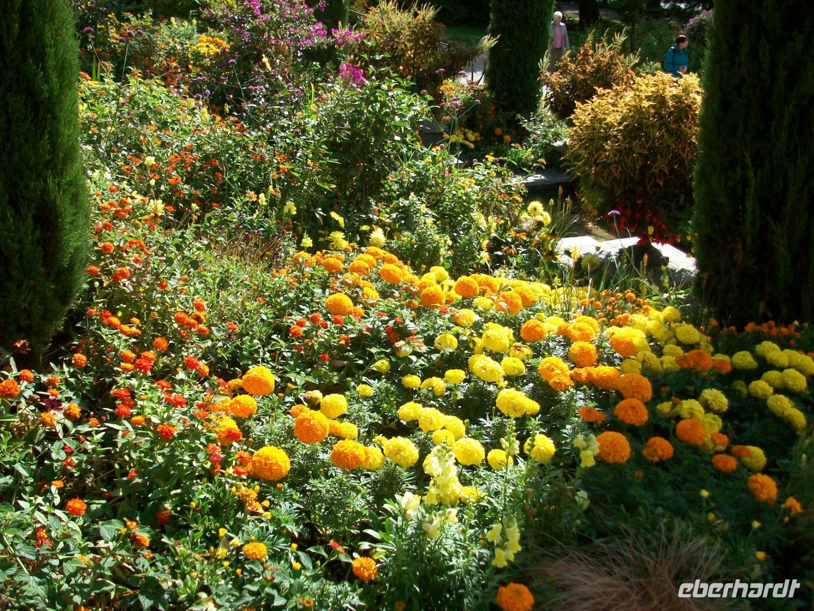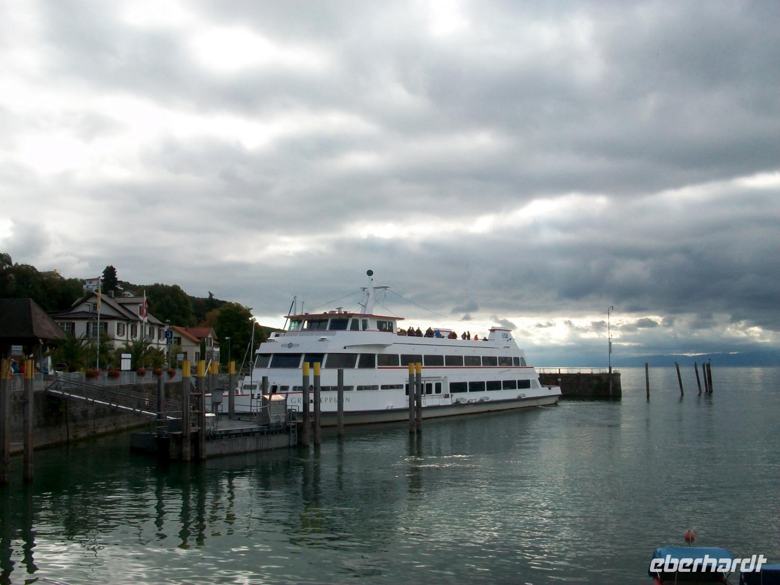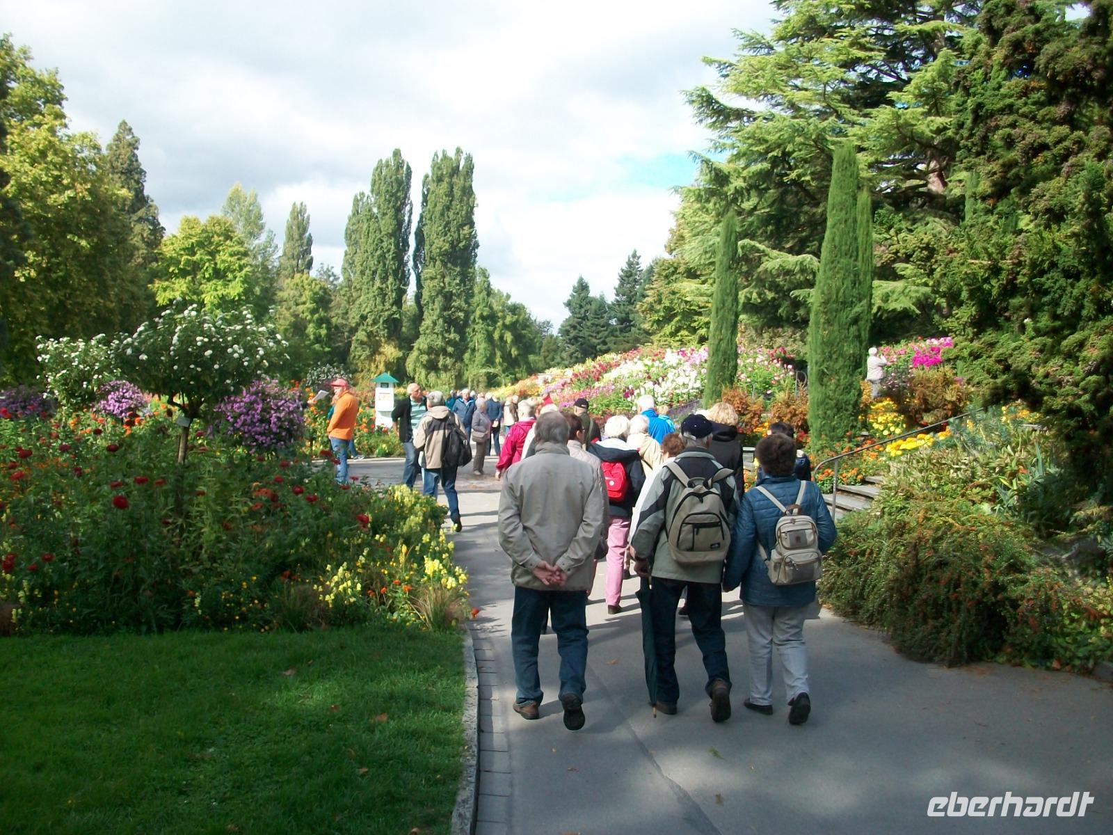 24.9.2018. Mit einem Schlag ist der Sommer verschwunden. Ein mächtiger Sturm fegte in der Nacht über uns hinweg und brachte einen Temperatursturz. Als wir uns früh am Bus treffen tröpfelt es leicht und ein kühler Wind lässt uns etwas frösteln. Aber, auf geht es! Unser Ziel heißt heute Bodensee und auf uns wartet die schönste Insel dieses Gewässers. Ein Stück Weg liegt nun vor uns und das Wetter bessert sich langsam. Bald sehen wir auf unserer linken Seite die mächtige Wasserfläche und in Meersburg gelangen wir direkt zur Promenade. Nun steht uns erst einmal eine gemütliche Schifffahrt bevor; nach einer guten Viertelstunde haben wir dann unser Ziel, die Blumeninsel Mainau, erreicht. Hier werden wir schon von unseren Führern erwartet; auch die Sonne lässt sich nun blicken, ein schöner Rundgang beginnt! Zunächst schauen wir uns die herbstlich - bunte Blütenpracht der Dahlien an. Über befestigte Wege sind wir mittendrin in all diesen Schönheiten und dieser Rundgang hat noch viel mehr zu bieten. Bald gelangen wir auf höheres Terrain um hier die uralten und gigantischen Mammutbäume zu bewundern. Viel erfahren wir über den Fleiß der Menschen die dieses hohe Naturgut pflegen. Dann verabschieden sich die Führer und bis zur Abfahrt des Schiffes verbleibt noch Zeit für den Besuch weitere Höhepunkte der Blumeninsel. Besonders eindrucksvoll ist das Schmetterlingshaus. Inmitten tropischer Pflanzen umschwirren und die buntesten Falter und wir staunen über besonders große exotisch Schmetterlinge die es bei uns in freier Natur gar nicht gibt. Auch der Besuch des Palmenhauses ist interessant; leider vergehen die Stunden auch hier viel zu schnell. Das Schiff bringt uns wieder hinüber zum Festland und mit dem Bus gelangen wir über die besonders eindrucksvolle Alpenstraße bei schönstem Sonnenschein wieder in das Kleinwalsertal.