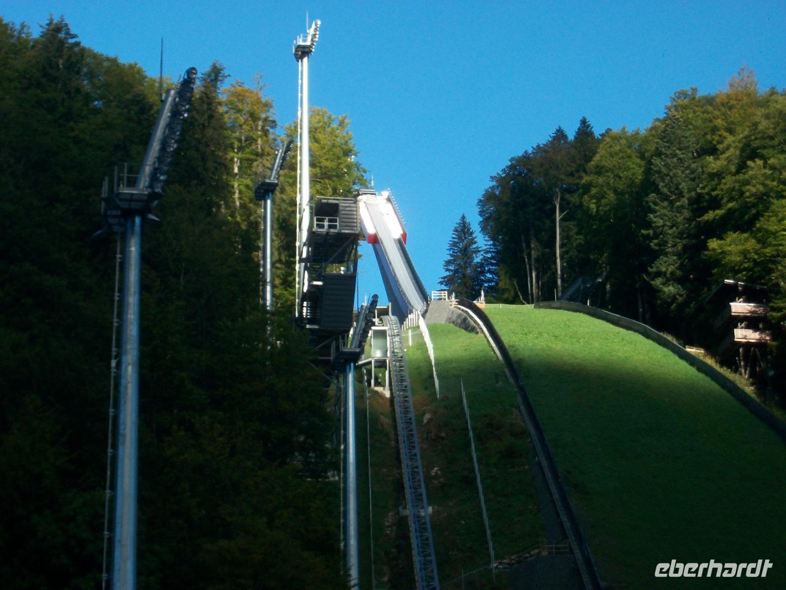 25.9.2018. Heute wollen wir noch einmal tief eintauchen in die gigantische Bergwelt der Alpen. Beim Blick hinaus sehe ich die Wiesen vor meinem Fenster leicht vom Raureif überzuckert, bald geht die Sonne auf und der schöne Tag beginnt. Mit dem Bus gelangen wir an Oberstdorf vorbei in ein schmales Seitental; hier befindet sich die beeindruckende Skiflugschanze, ein Fotostopp bringt uns dieses Bauwerk näher. Dann geht es nur noch wenige Kilometer durch den Wald und wir stehen vor der Talstation der Fellhornbahn. Fast kein Wölkchen trübt den Himmel; wir besteigen die Gondel und leise schnurrend geht es bergauf. Oben angelangt sind wir über der Baumgrenze und genießen von hier einen ungetrübten Blick über die mächtige Bergwelt die uns umgibt. Unten im Tal sehen wir den Ort Riezlern wie im Spielzeugland, selbst unser Hotel ist von hier oben gut zu sehen.