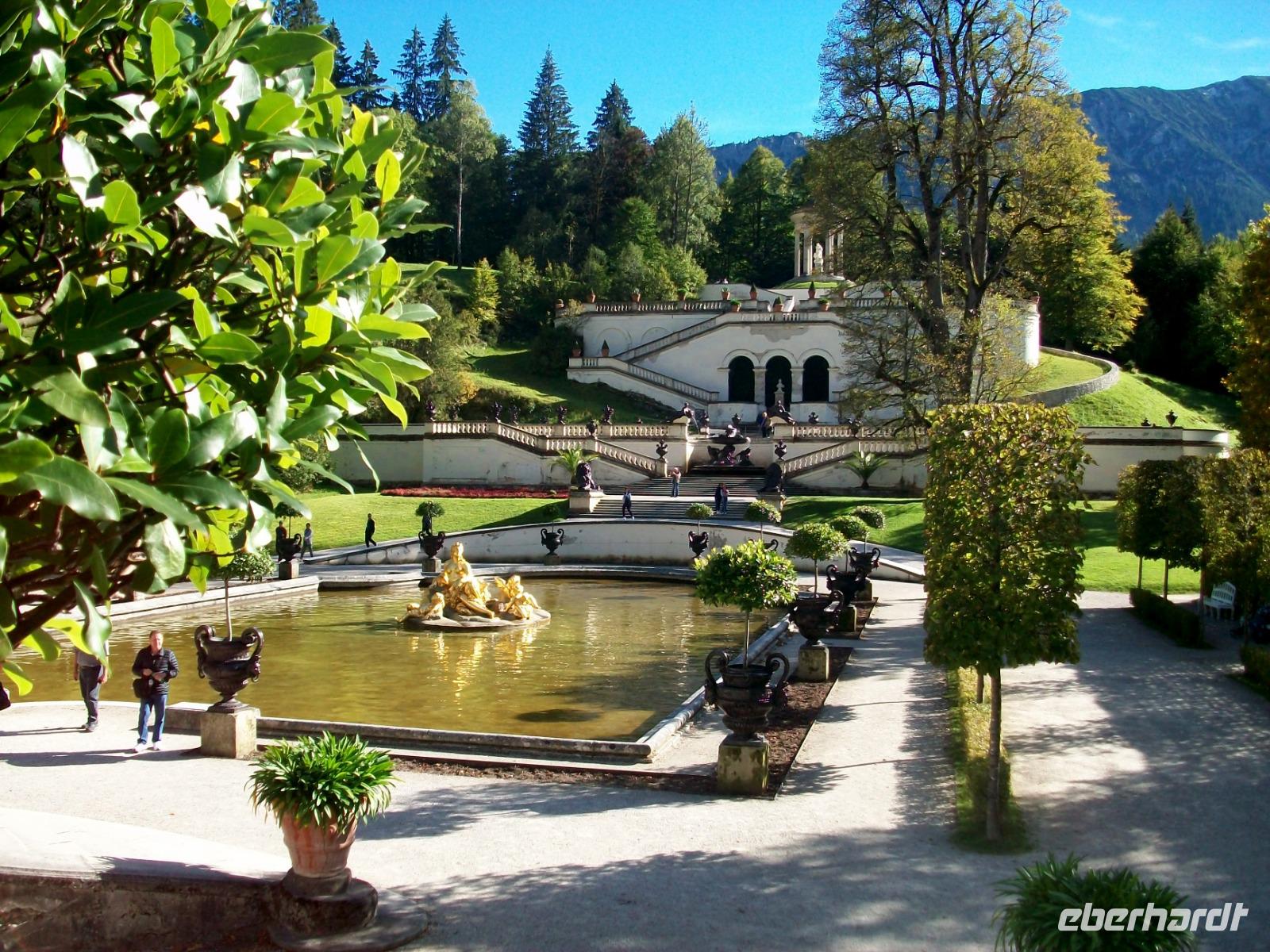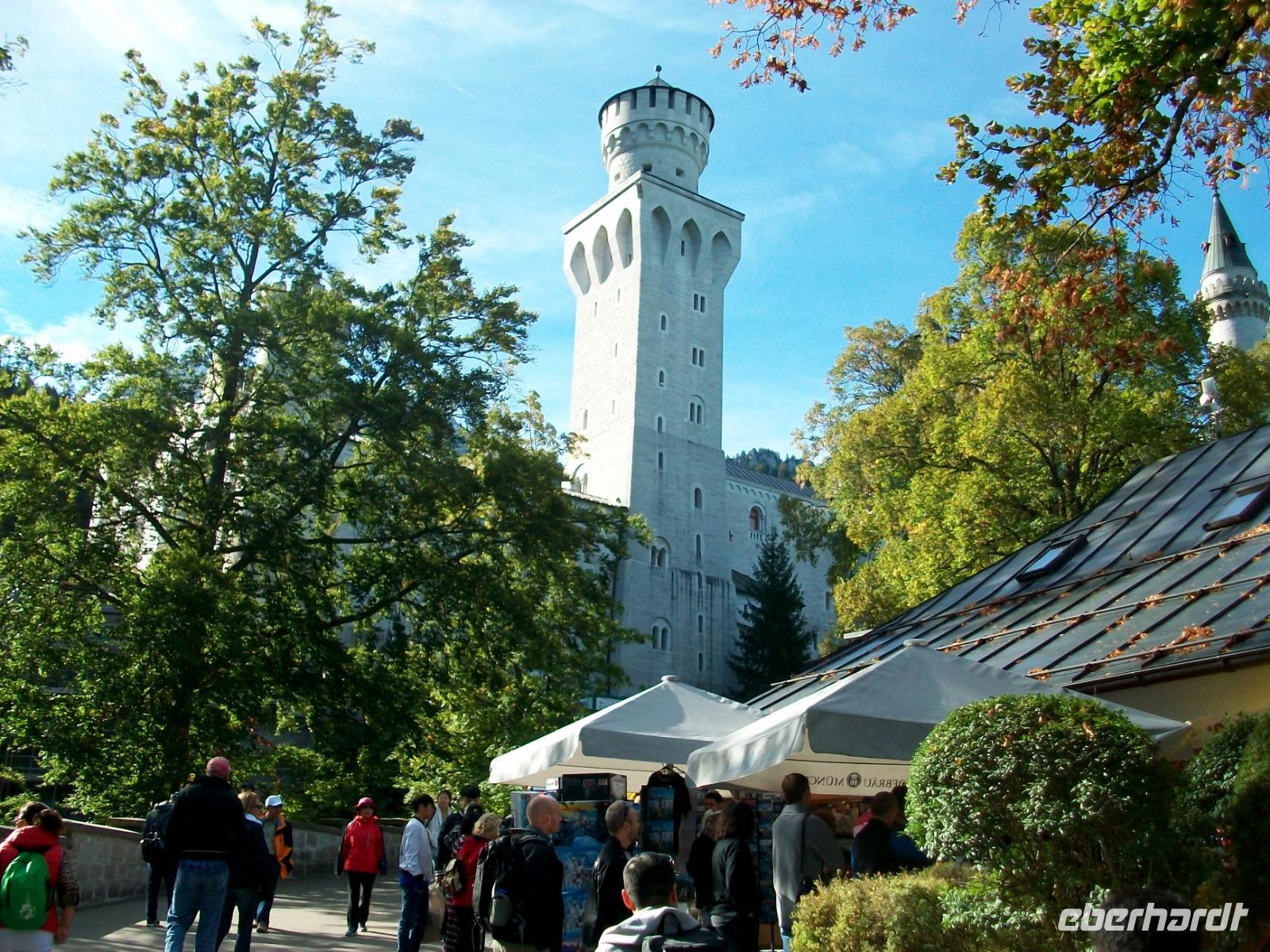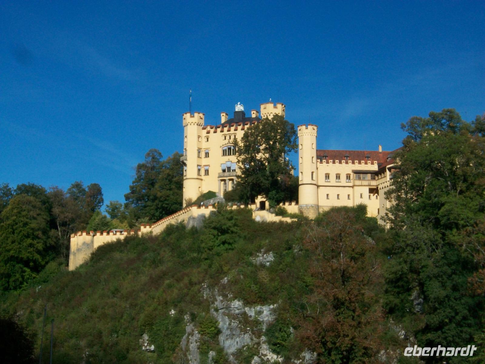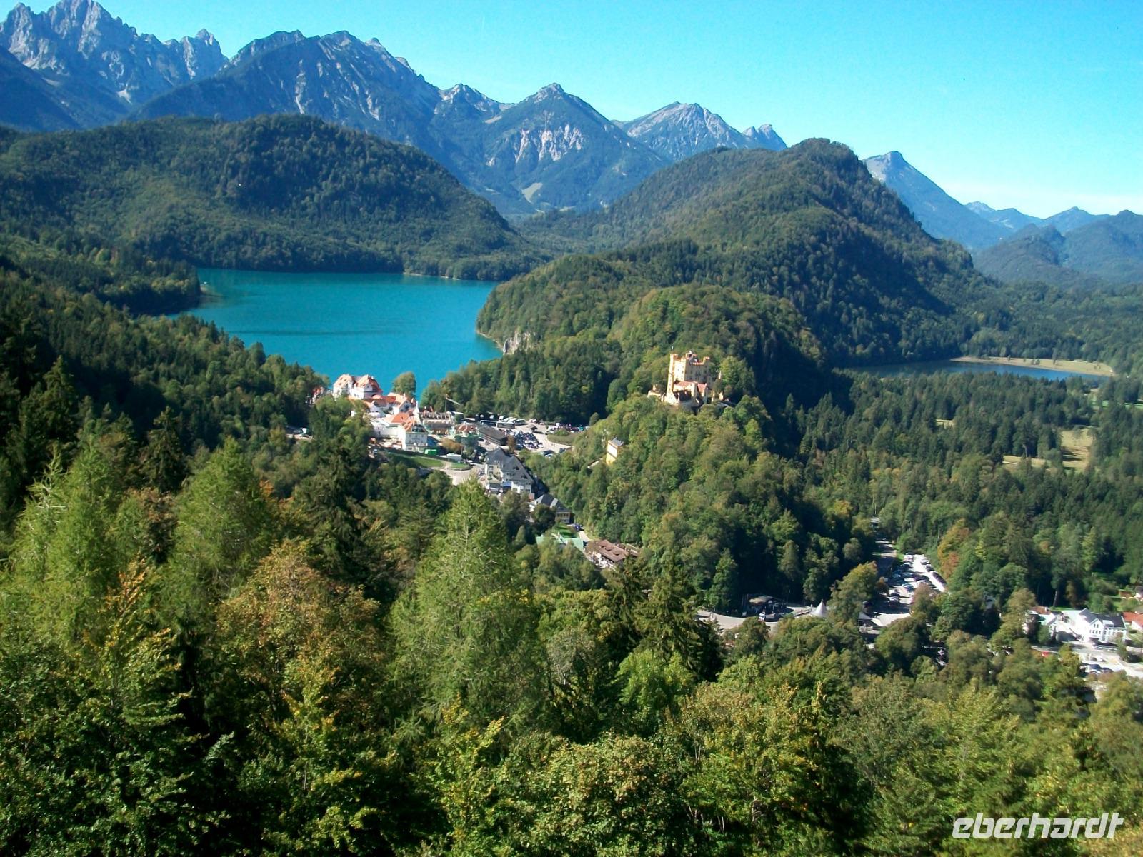 26.9.2018. Ein weiterer Höhepunkt steht heute ins Haus. Gar nicht weit vom Kleinwalsertal hat sich seinerzeit der Bayernkönig Ludwig II einige Schlösser erbaut. Das wohl spektakulärste wollen wir uns am heutigen Vormittag anschauen. Zunächst ein Stück auf der Autobahn bis Füssen, von hier in Richtung Schwangau und wir langen unterhalb von Neuschwanstein an. Nun geht es zu Fuß weiter; der Weg führt empor und schon beim Aufstieg sehen wir dieses Märchenschloss fast unwirklich am Berge thronen. Hier ist alles auf die Minute organisiert; bald erlangen wir Eintritt und können über die verschwenderische Ausstattung nur staunen. Hier dreht sich alles um nordische Mythologie, kein Wunder Ludwigs Lieblingskomponist Richard Wagner gab mit seinen Werken die Inspiration und so verwundert es nicht, das wir Siegfried, Tristan und Isolde und selbstverständlich auch Lohengrin mit dem Schwan sehen.