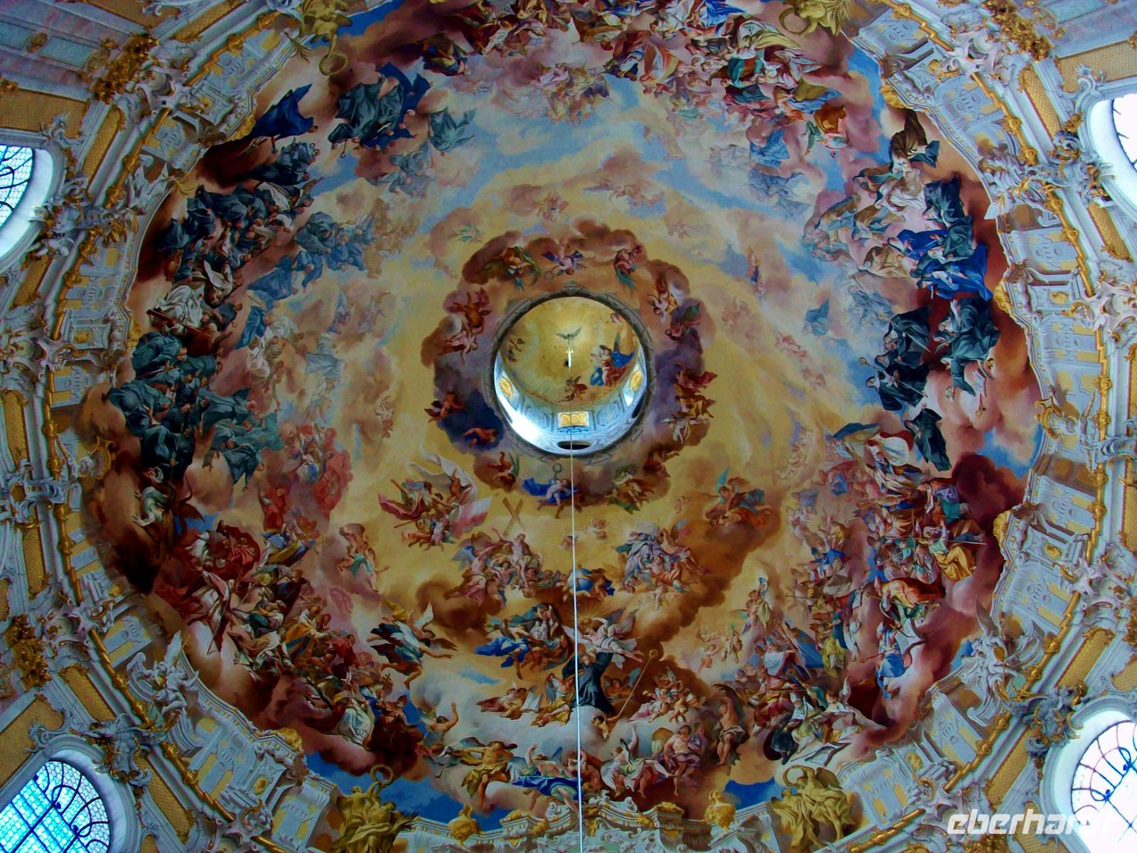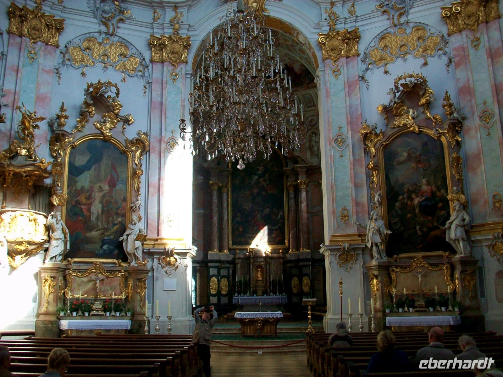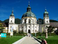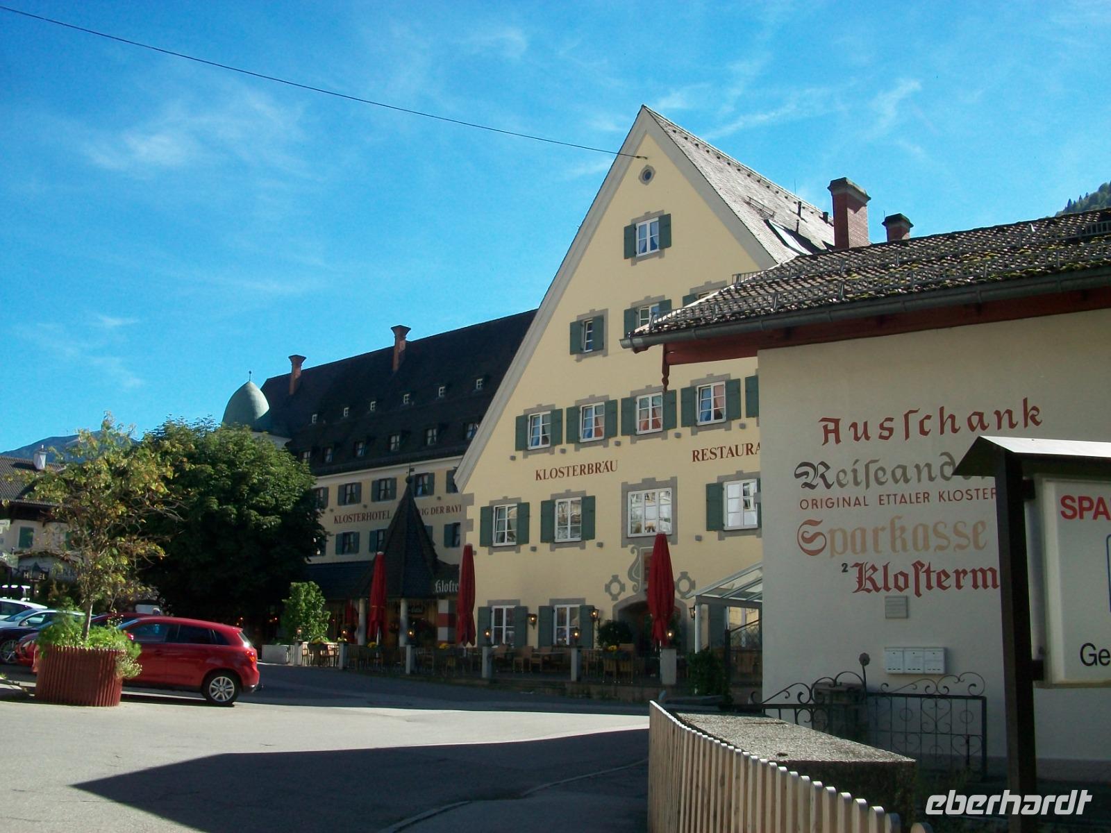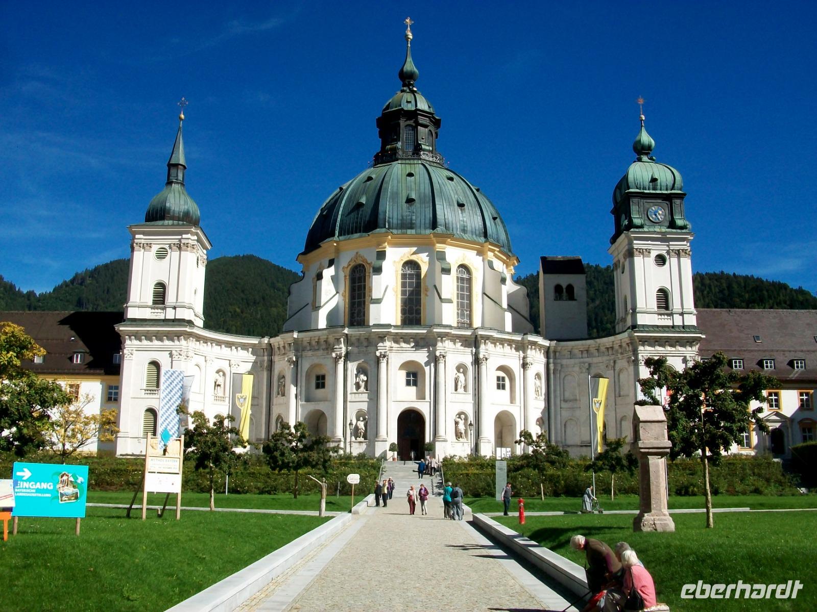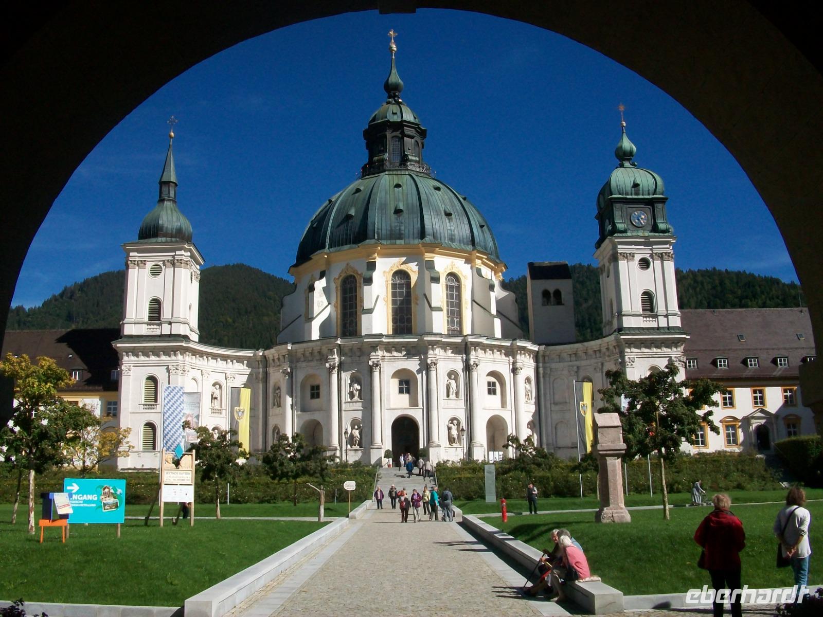Strahlend blauer Himmel liegt über dem Land; unsere Tour führt uns vom Allgäu hinüber nach Oberbayern, auch hier ist alles landwirtschaftlich geprägt. Über den bekannten Ort Oberammergau, berühmt durch seine Passionsspiele, gelangen wir immer entlang der Ammer nach Ettal. Schon von weitem sehen wir die mächtige Kuppel der Basilika und die großzügigen Gebäude des Klosters. Diesen wunderbaren Ort wollen wir nun besuchen; über den gepflegte Innenhof gelangen wir in die Kirche und kommen dabei aus dem Staunen nicht mehr heraus. Der reichhaltige Schmuck des Barocks, Illusionsmalerei, Gold und wertvolle Stuckarbeiten zieren dieses Gotteshaus und bringen uns diese wichtige Epoche damit näher.