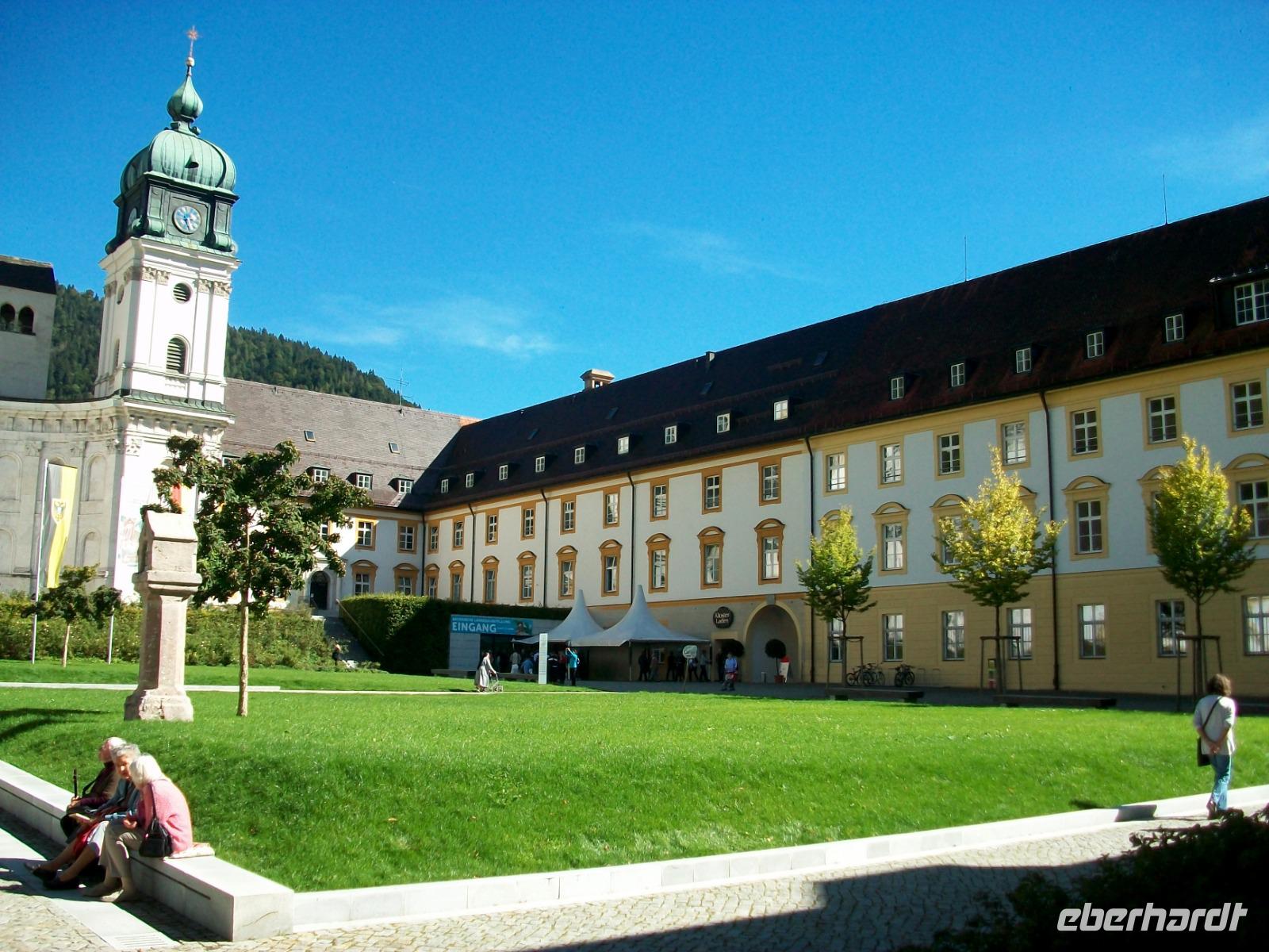 Zum Schluss genießen wir noch vom Balkon einen grandiosen Blick auf den See und die Berge, dann geht es wieder hinunter neuen Höhepunkten entgegen.Kloster Ettal
