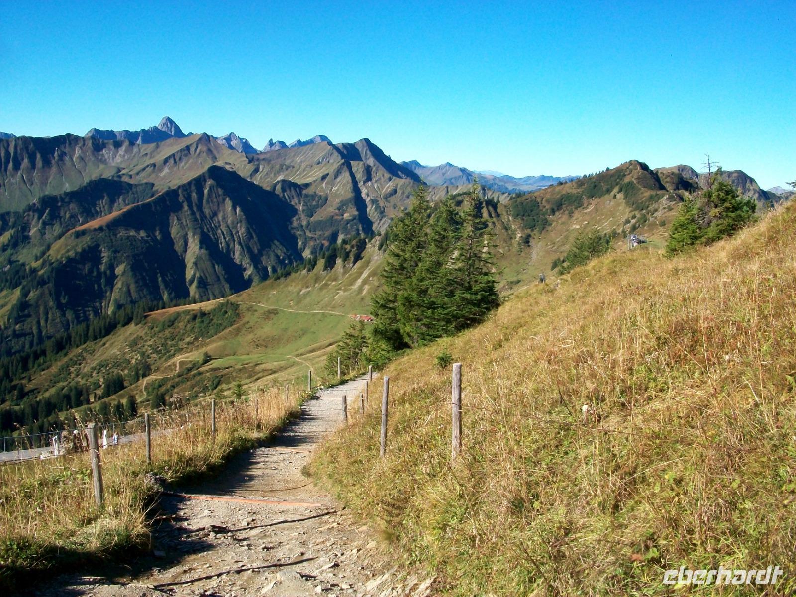 Die Wanderfreunde nehmen den Weg auf sich um hinüber zur Kanzelwand zu gelangen, die andern nehmen den Bus und bald langen wir an der dortigen Talstation an. Hier führt nun eine kleine Kabinenumlaufbahn hinauf, ganz gemütlich geht es zur Kanzelwand. Wieder neue Perspektiven, grandiose Ausblicke und der volle Genuss einer unberührten schönen Natur - das sind die Impressionen die wir hier in aller Ruhe genießen können.