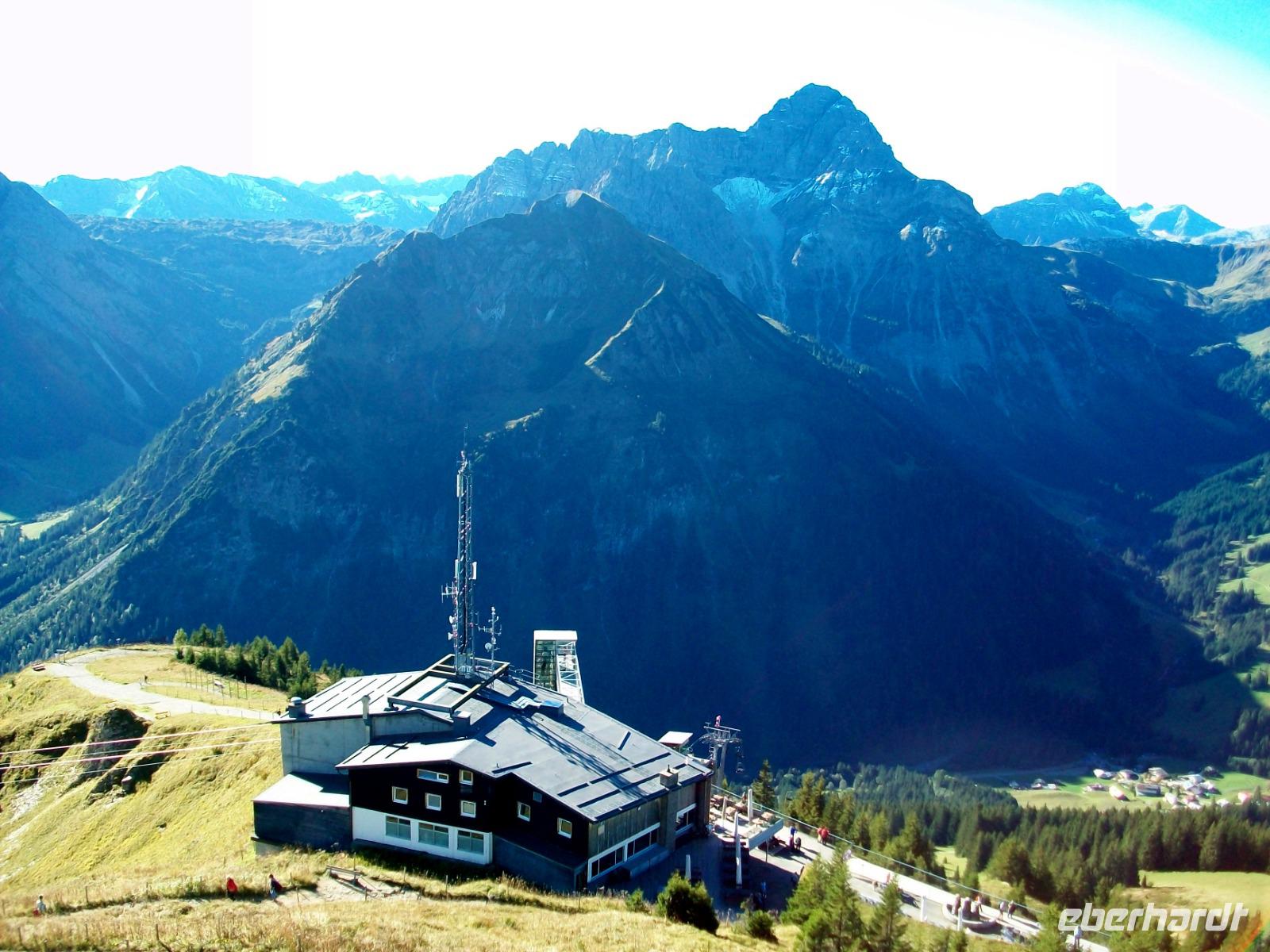 27.9.2018. Wir starten gegen neun um schon nach zehn Minuten unser einziges Ziel für heute zu erreichen, den Ort Mittelberg, nahezu am Ende des Kleinwalsertales gelegen. Hier befindet sich auch die Talstation der Walmendingerhorn - Bahn. Auch heute lässt uns Petrus nicht im Stich: keine Wolke am blauen Himmel, warme Temperaturen und die reine Luft die es nur im Gebirge gibt, Herz was willst du mehr!