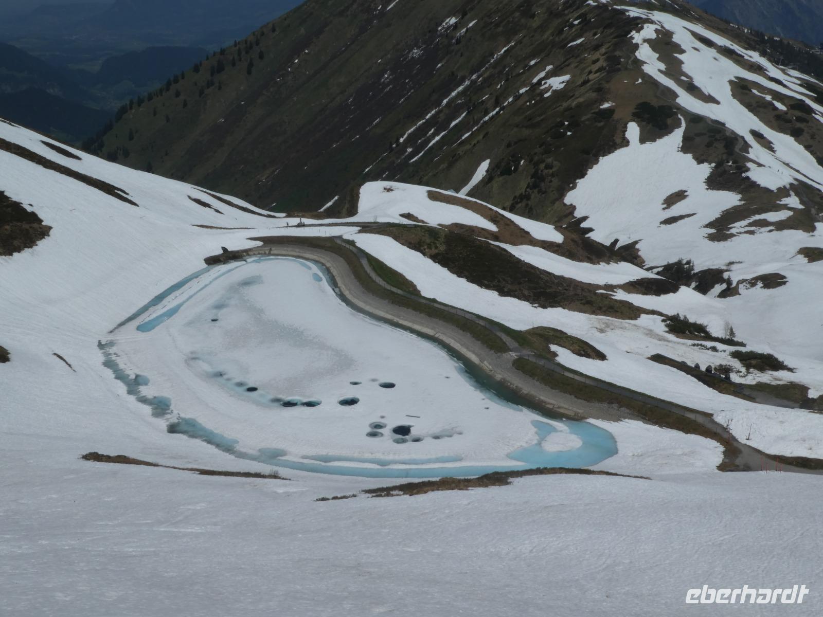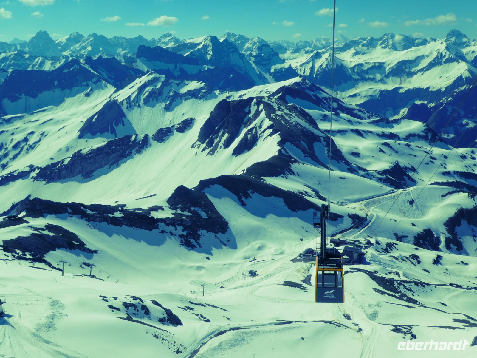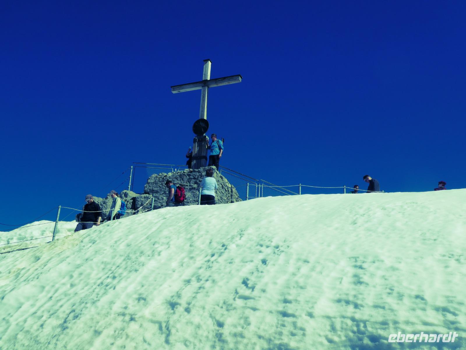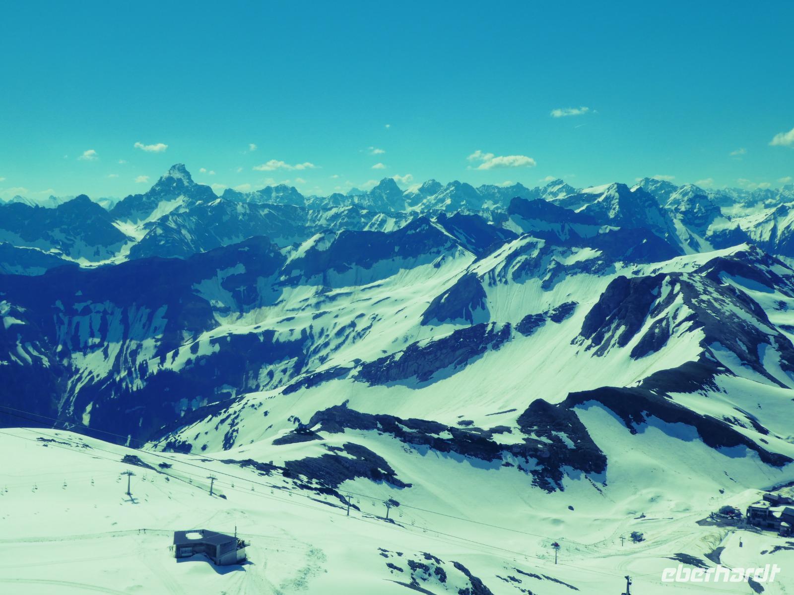 Auf dem Weg zum Fellhorn besuchten wir die Heini Klopfer Skiflugschanze. Sie ist die größte und neuste Schanze in Europa. Wir entschieden uns für die Auffahrt zur Schanze. Ein Fahrstuhl brachte uns hinauf zum Schanzenkopf und von dort erreichten wir mit einem Lift den Absprungturm. Uns erwartete ein schöner Blick auf den Freibergsee. Es ist schon erstaunlich wo die Skiflieger abspringen obwohl Sie den Aufsprunghang gar nicht sehen. Durch das Stillachtal erreichten wir die Fellhornbahn. Am Gipfel waren die Wege wegen dem Schnee noch gesperrt. So auch der Wanderweg zur Kanzlerwand. Nur der Weg zum Gipfelkreuz war frei. Nach unserem Aufenthalt fuhren wir zurück in das Kleinwalsertal zur Kanzelwand. Auch dort brachten uns die Gondeln hinauf zum Gipfel. Wir nutzen die Zeit für einen Spaziergang oder genossen die Aussicht in die Bergwelt und das Kleinwalsertal beim Kaffee trinken.