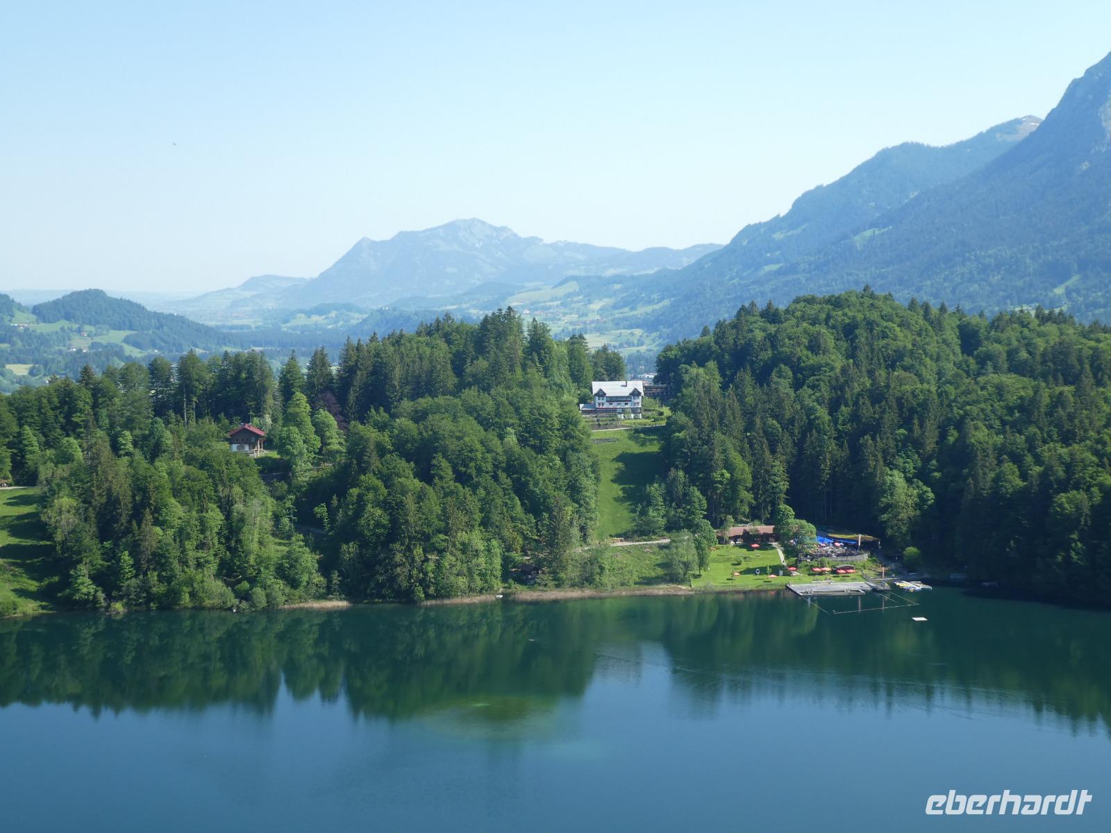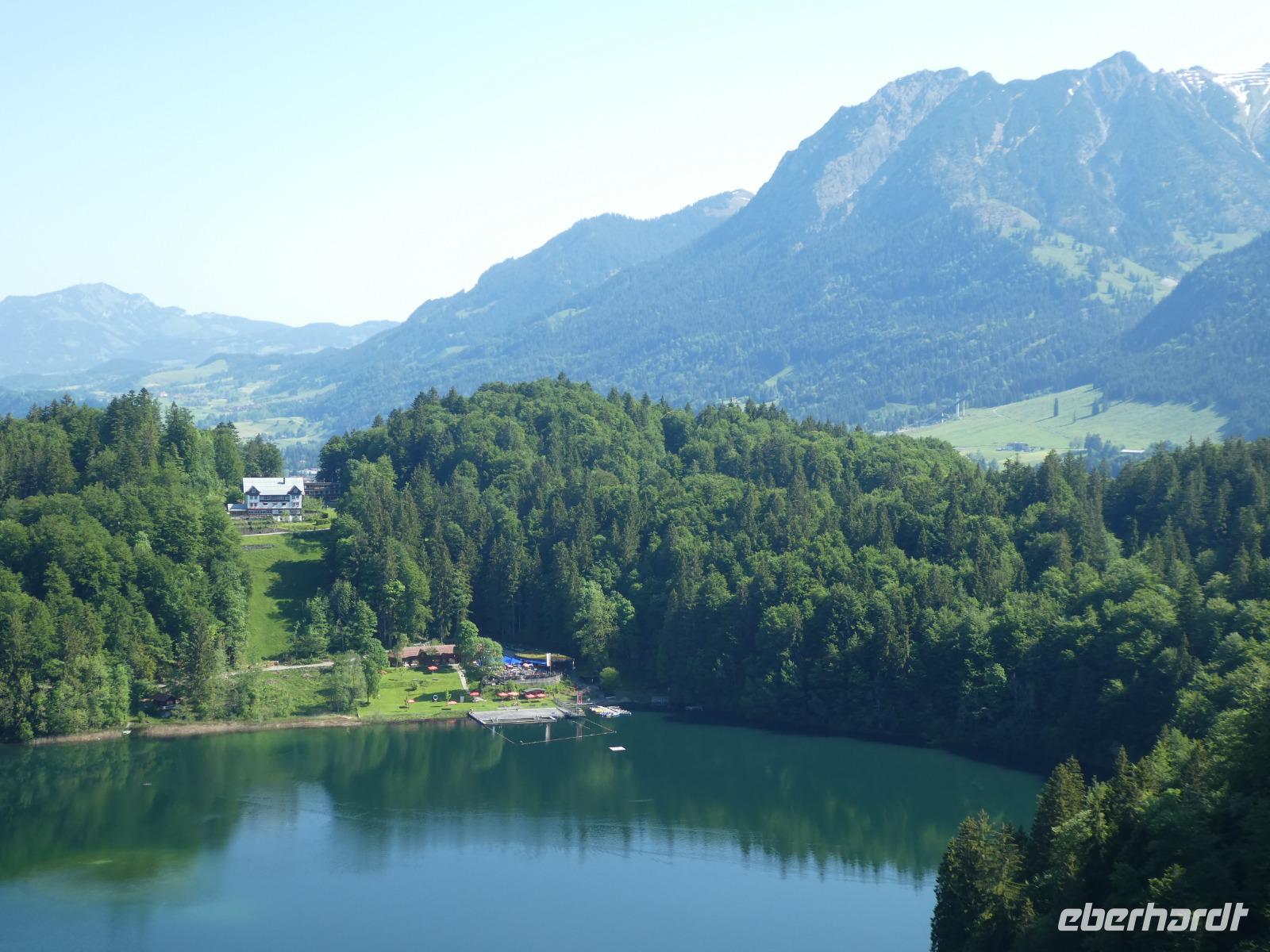 Wir nahmen den schnellsten Weg nach Hohenschwangau um zur vorgegebenen Zeit die Tickets zu holen. Schon von weitem war das „Märchenschloss" Schloss Neuschwanstein zu sehen. Wir hatten genügend Zeit für einen Spaziergang zum Alpsee. Jeder konnte sich entscheiden mit dem Shuttlebus, der Kutsche oder zu Fuß zum Schloss zu gelangen. Erstaunlicher Weise waren nicht so viele Touristen vor Ort und so kam bei der Besichtigung auch keine Hektik auf. Schloss Neuschwanstein wurde nie fertig gestellt und sofort nach dem Tot von König Ludwig sind die Bauarbeiten eingestellt wurden. Von da an wurde Schloss Neuschwanstein als Museum genutzt. Weiter ging unsere Fahrt zum Kloster Ettal. Das Benediktiner Kloster besticht mit seiner barocken Basilika. Zur Klosteranlage gehören auch ein Internat, die Klosterbrauerei, eine Käserei und ein Hotel. Nach dem Besuch fuhren wir entlang des romantischen Plansee nach Reute und zurück in das Kleinwalsertal.nach setzten wir unsere Fahrt
