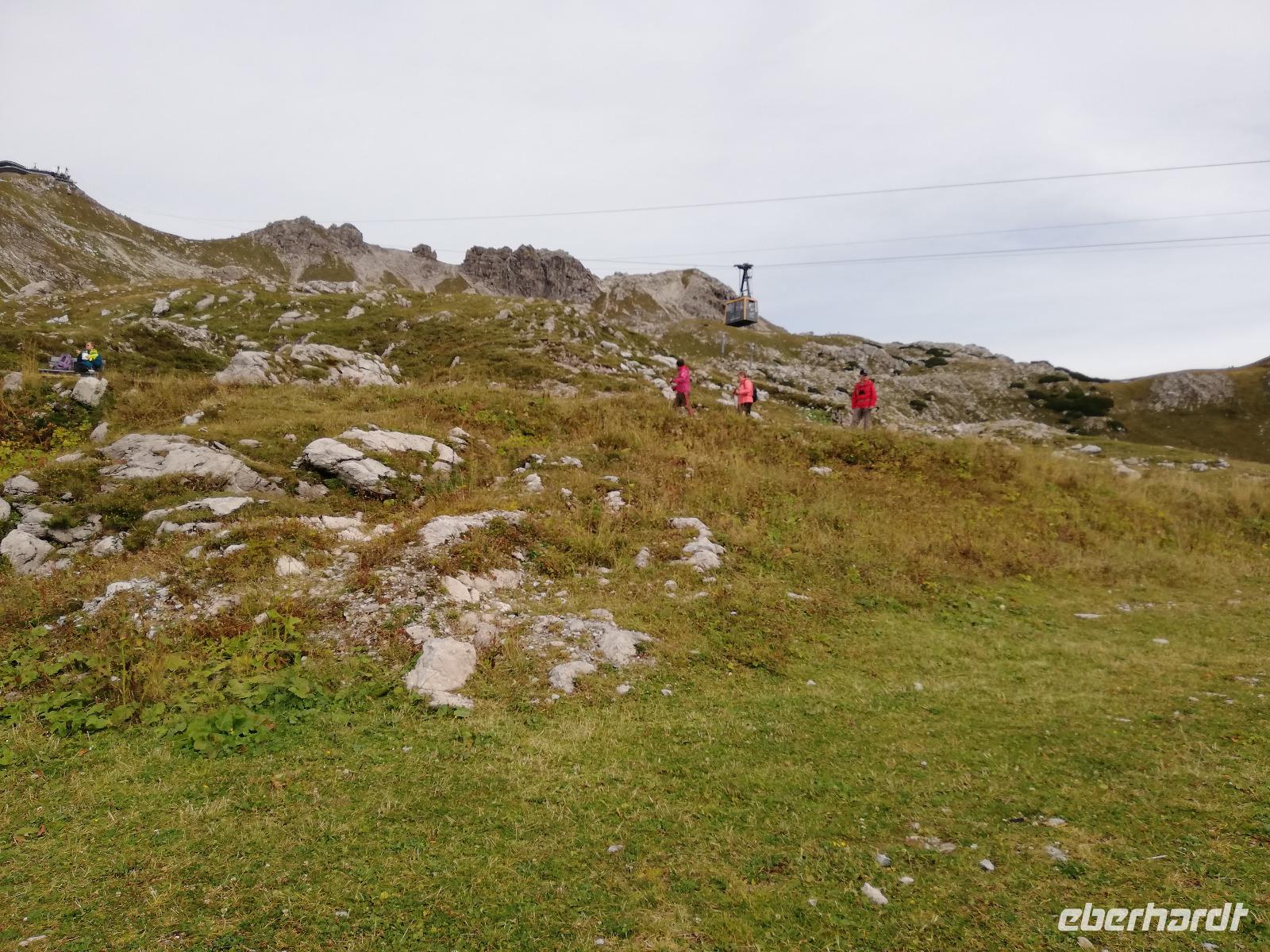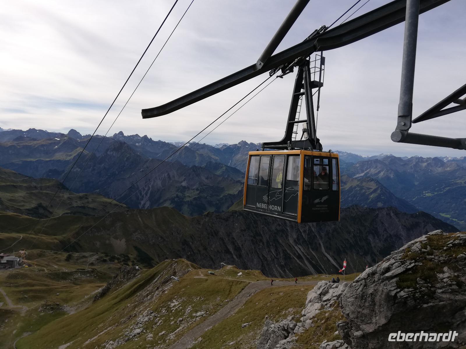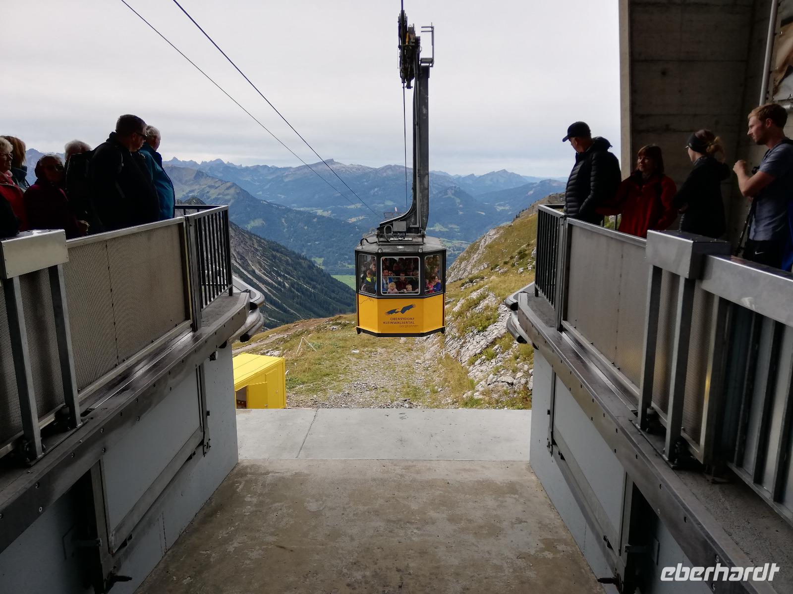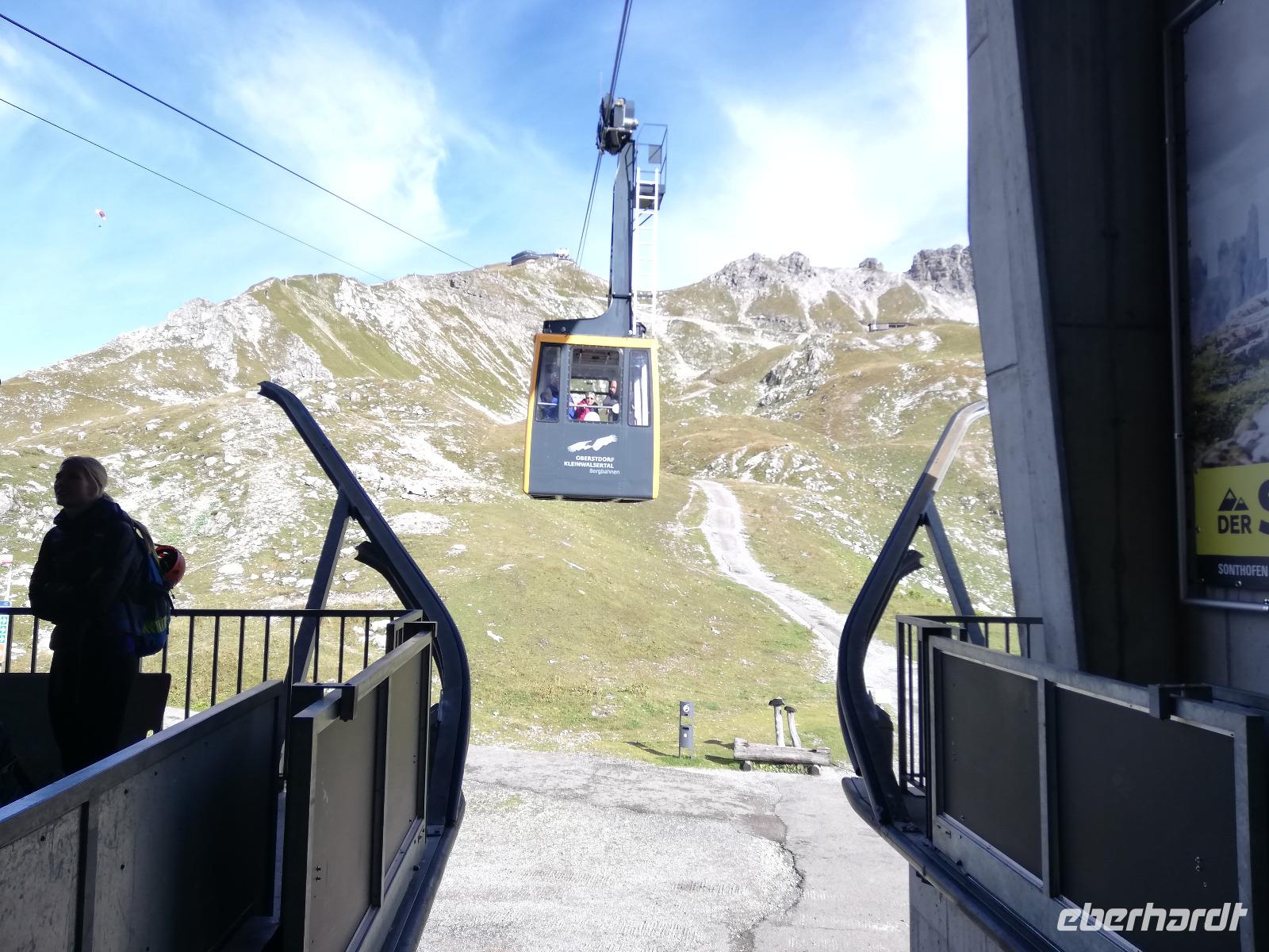 Kanselwandbahn. Das Wetter hat sich geändert. Die Wolken reisen auf und es wird ein schöner Nachmittag, um zu wandern. Somit behalten wir das Kleinwalsertal in guter Erinnerung und nehmen damit auch Abschied von diesem schönen Tal und der interessanten Reise.
