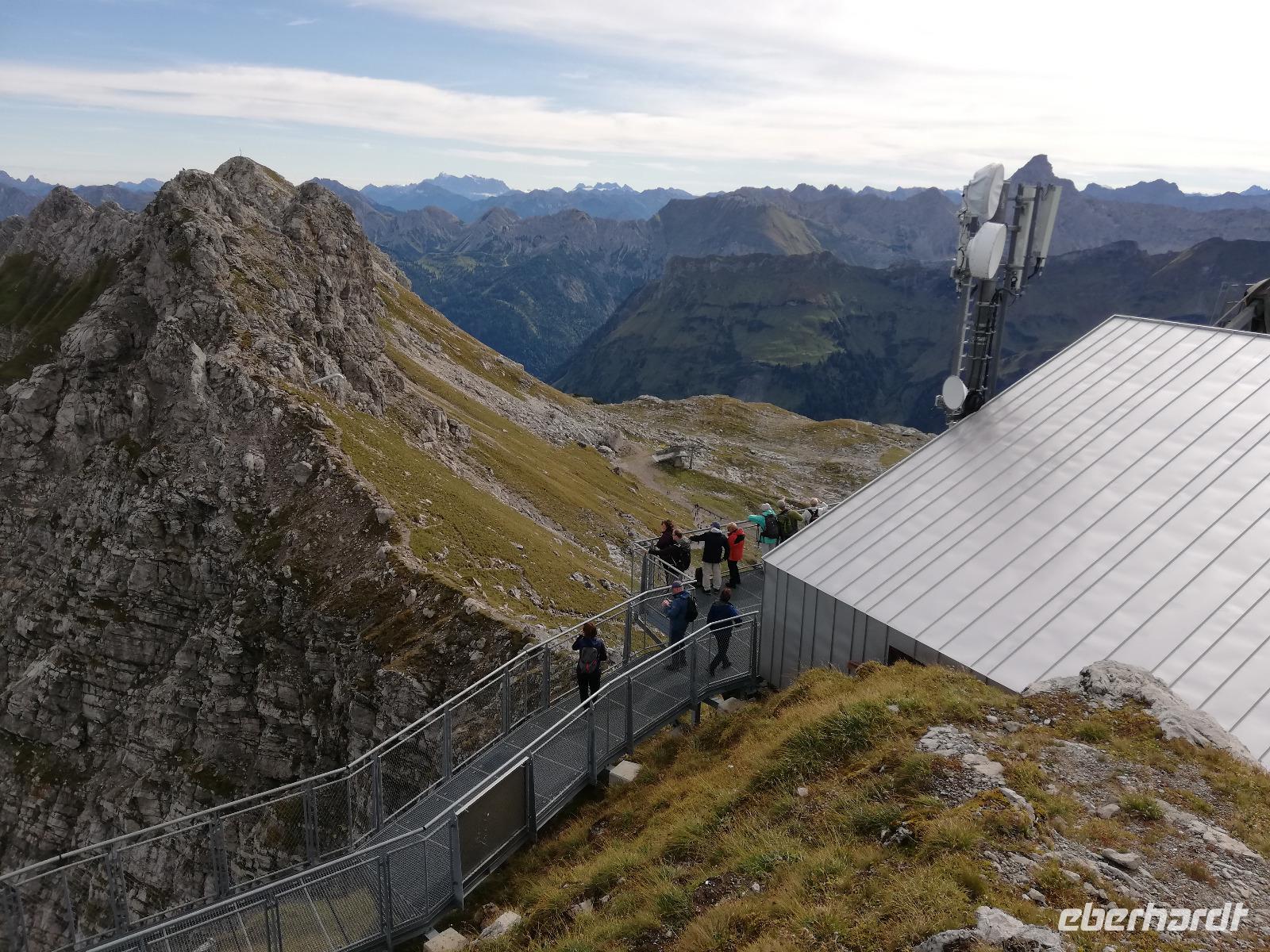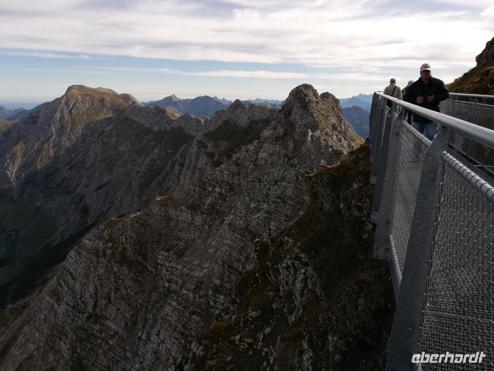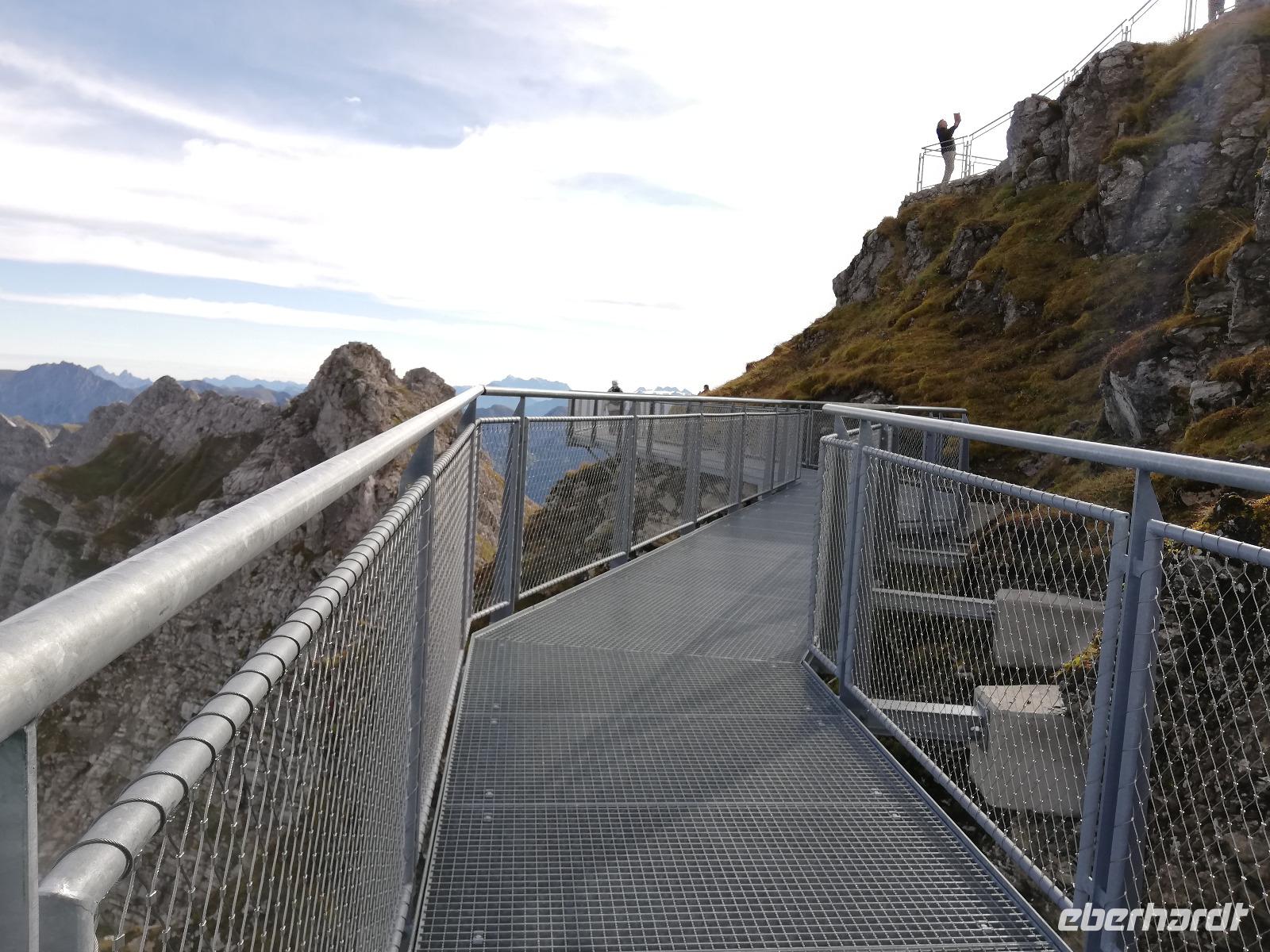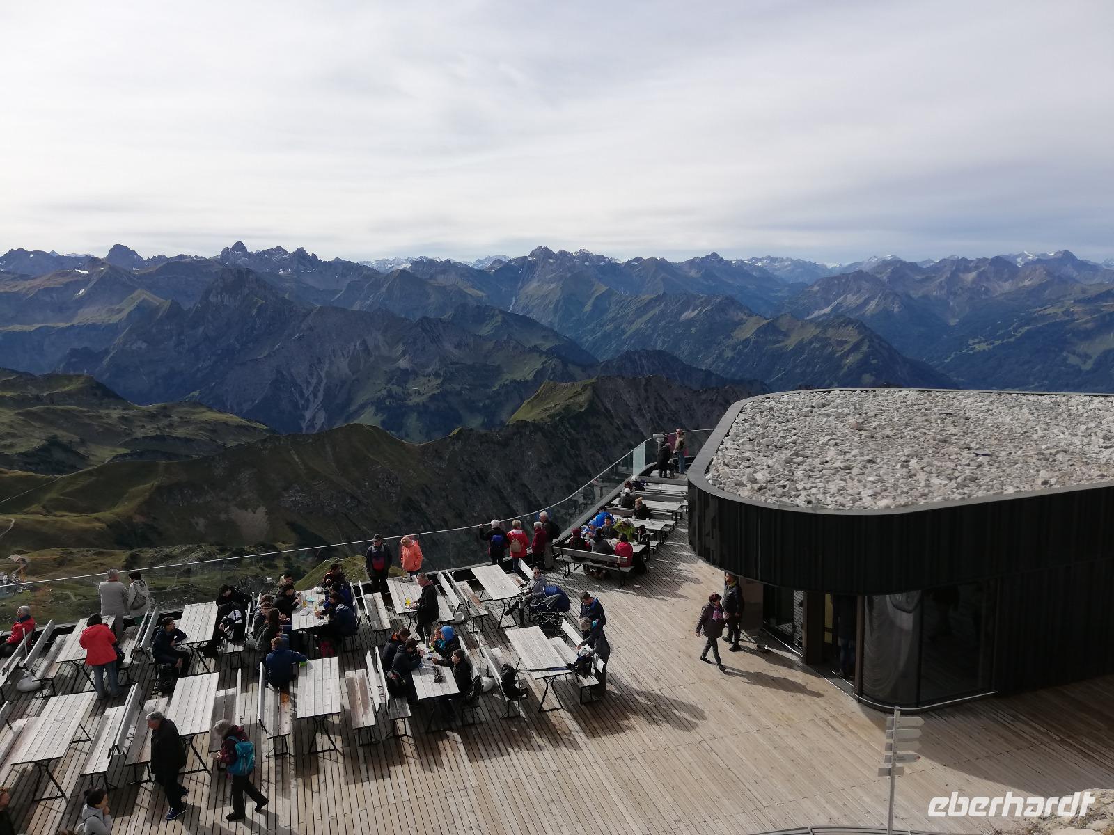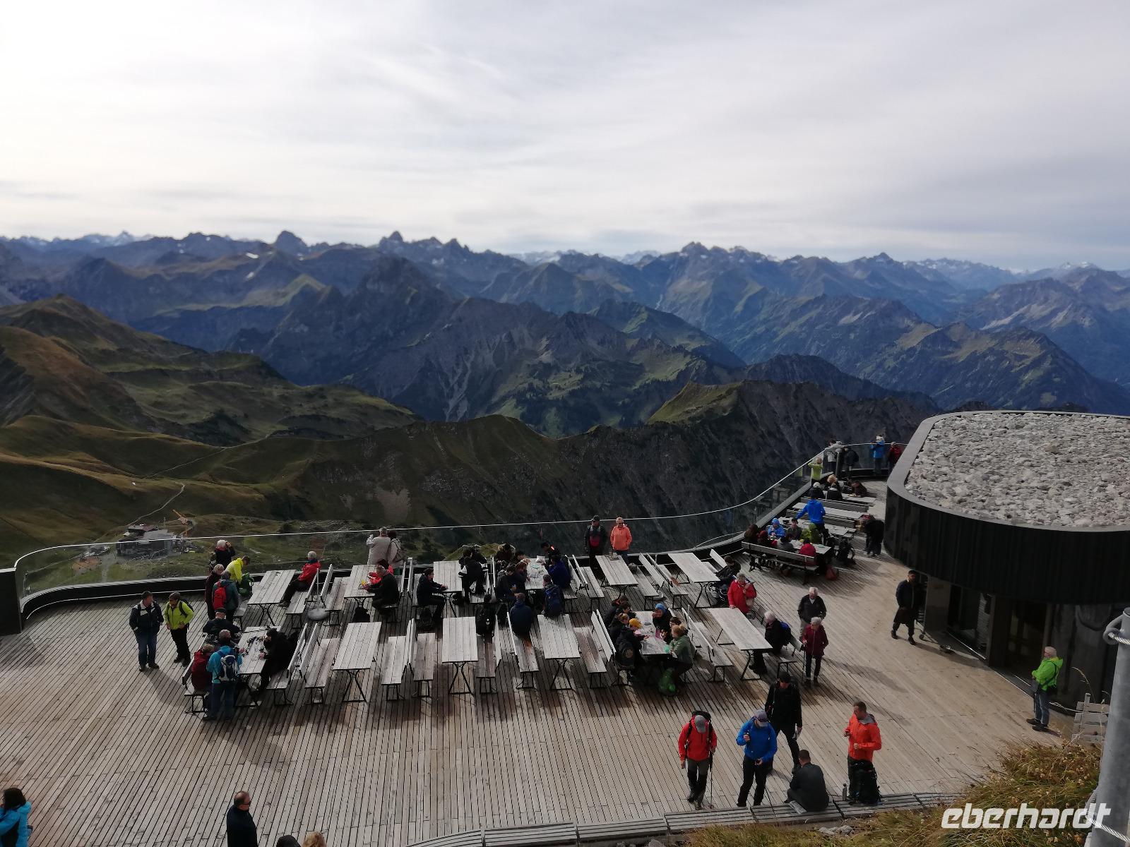 Wir treffen uns ausgeschlafen und gut gelaunt zum Frühstück. Wir haben blauen Himmel. Für uns Anlass nach dem Frühstück zuerst auf das Nebelhorn in Oberstdorf zu fahren. Auf dem Weg dahin fahren wir durch den Heilklima und Kneippkurort und haben auch einen Blick auf die Audi Arena mit den Skisprungschanzen am Schattenberg. Wir sind nicht die Einzigen, die bei dem Wetter auf den Berg möchten. Somit stellen wir uns an und kommen doch relativ schnell in die Kabinenbahn. Wir fahren gemeinsam zur 3 Sektion und stehen unmittelbar vor dem Gipfel mit Gipfelkreuz und seinen 2224 m Höhe. Während der Fahrt konnten wie den Bau der neuen Umlaufbahn (10 Personenkabinen) bis zur Sektion 2 beobachten. Der Bau der Bahn soll 2021 beendet sein. Auf dem Gipfel angekommen haben wir eine tolle Sicht auf die umliegende Bergwelt. Ein besonderes Erlebnis ist die Wanderung auf dem Nordwandsteig (Stahlkonstruktion). Wir haben ausreichend Zeit geplant um zu wandern oder auch noch durch Oberstdorf zu bummeln. Am Nachmittag treffen wir uns wieder am Bus und fahren nach Tiefenbach. Wir haben noch die Wanderung durch die Breitachklamm auf dem Programm. Am unteren Eingangsgebäude sehen wir im naturkundlichen Zentrum einen Film mit Informationen zur Entstehung der wildromantischen ,ca. 2 km langen, Klamm.