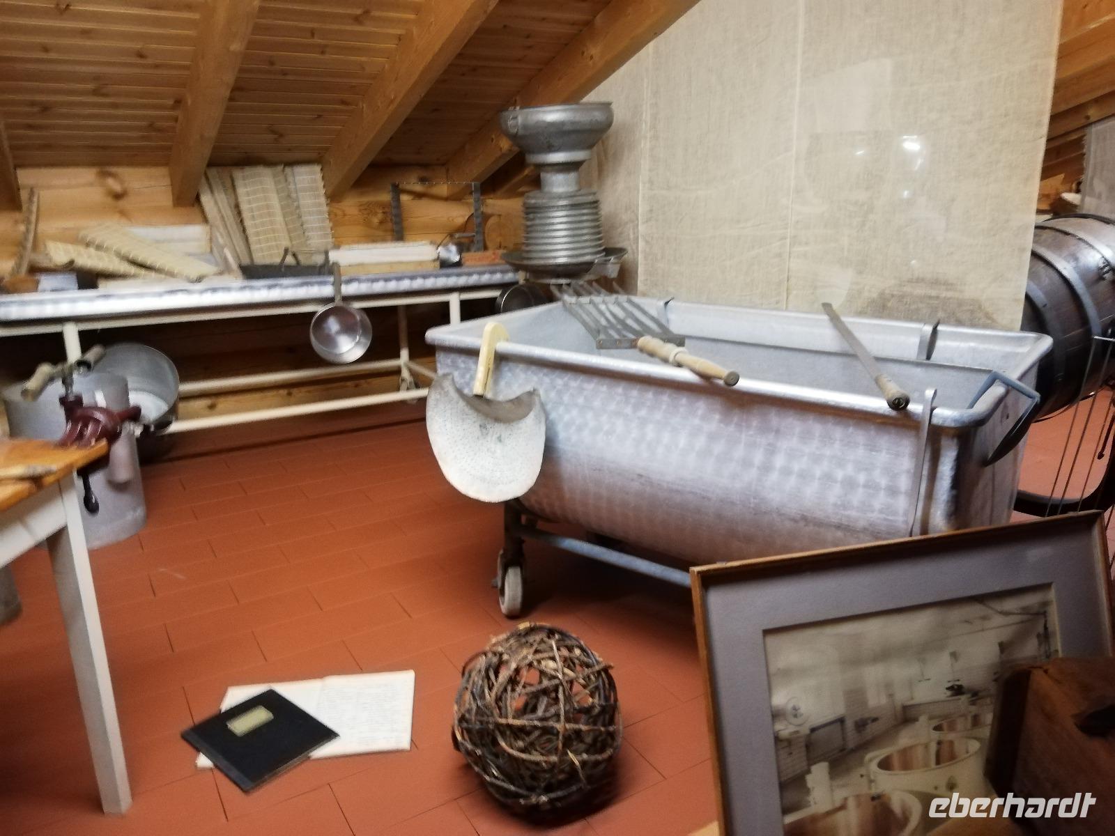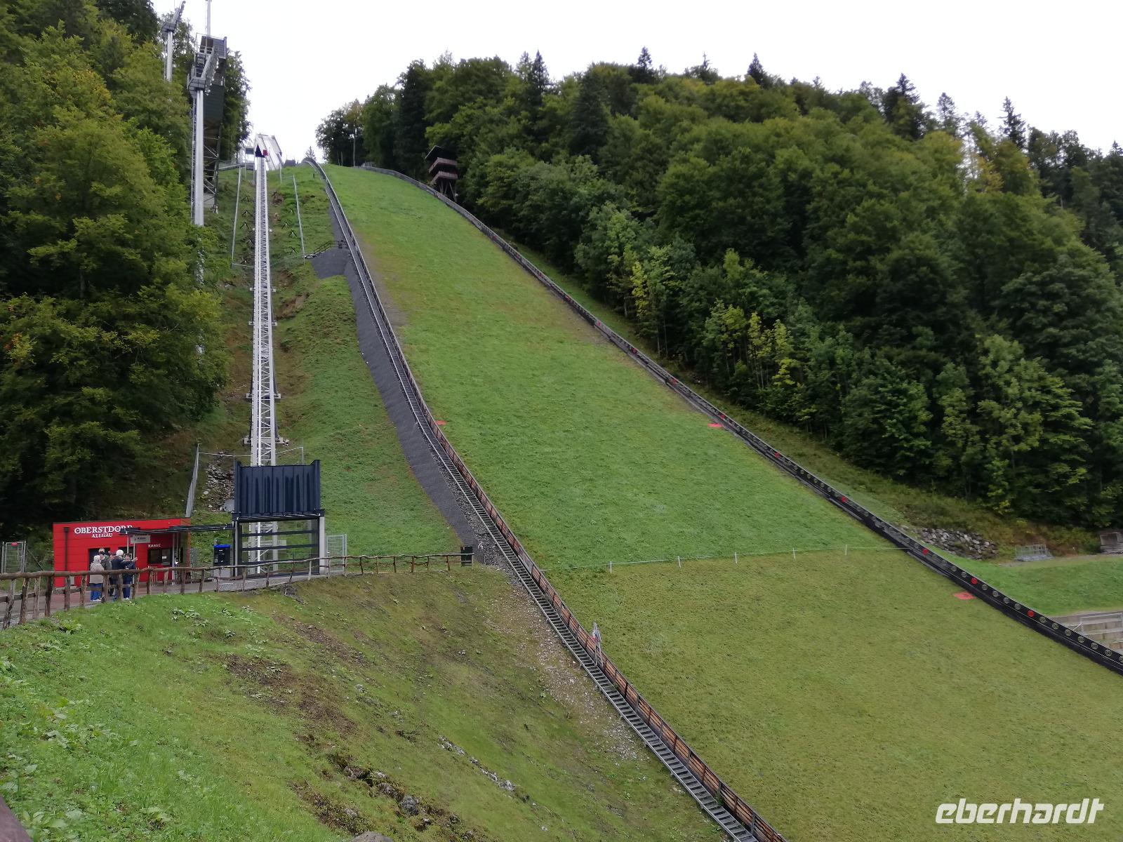Wir besuchen eine Käserei in Bad Wurzach. Um diese zu erreichen, fahren wir an Kempten vorbei, eine Strecke, um die Allgäuer Landschaft so richtig genießen zu können. Gegen 11.00 Uhr kommen wir bei der Käserei Vogler im Ortsteil Gospoldshofen an und werden zu einer Führung erwartet. Doch bevor es losgehen kann, gibt es die entsprechende "Ausrüstung" um den hygienischen Anforderungen zu entsprechen. Bei der Führung werden wir von unserem Käser sehr unterhaltsam in die Geheimnisse des Käsens eingeweiht. Wir schnuppern die Käsereiluft und lassen uns die Unterschiede von Hart-,Schnitt-und Weichkäse erklären. Sehr gut. Nach einem guten Mittagessen geht es zurück nach Oberstdorf. Wenn sich das Wetter auch etwas gebessert hat, die Berge sind nicht frei. Wir entscheiden uns trotzdem, zum Gipfel des Fellhorns zu fahren. Mit der Kabinenbahn (100 Personen)geht es zur Station Schlappoldsee. Hier steigen wir um und kommen nach ca. 20 min (Fahrzeit gesamt) an der Gipfelstation an.Regen Wind und Wolken erwarten uns hier, aber auch die Bergschau 2037. Ein Film zeigt uns, wie schön der Blick in die Berge sein könnte. Das Fellhorn wie auch die Kanzelwand gelten als Blumenberge dieser Region. Nach einer kurzen Zeit fahren wir zurück und besuchen noch die Heini Klopfer Flugschanze,bevor wir zurück zum Hotel fahren.