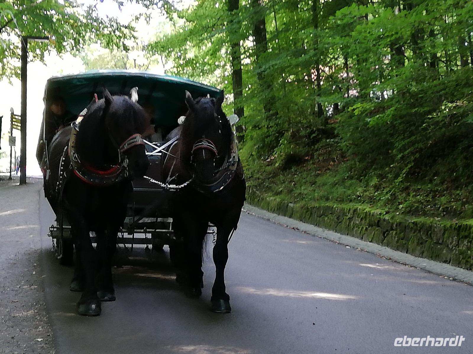 Zurück zum Parkplatz geht es wieder zu Fuß, bzw. nutzen einige die Möglichkeit mit einer Kutsche zum Parkplatz zu fahren. Weiter geht es im Programm. Wir fahren nach Ettal entlang der B17. Gegen 14.00 Uhr sind wir am