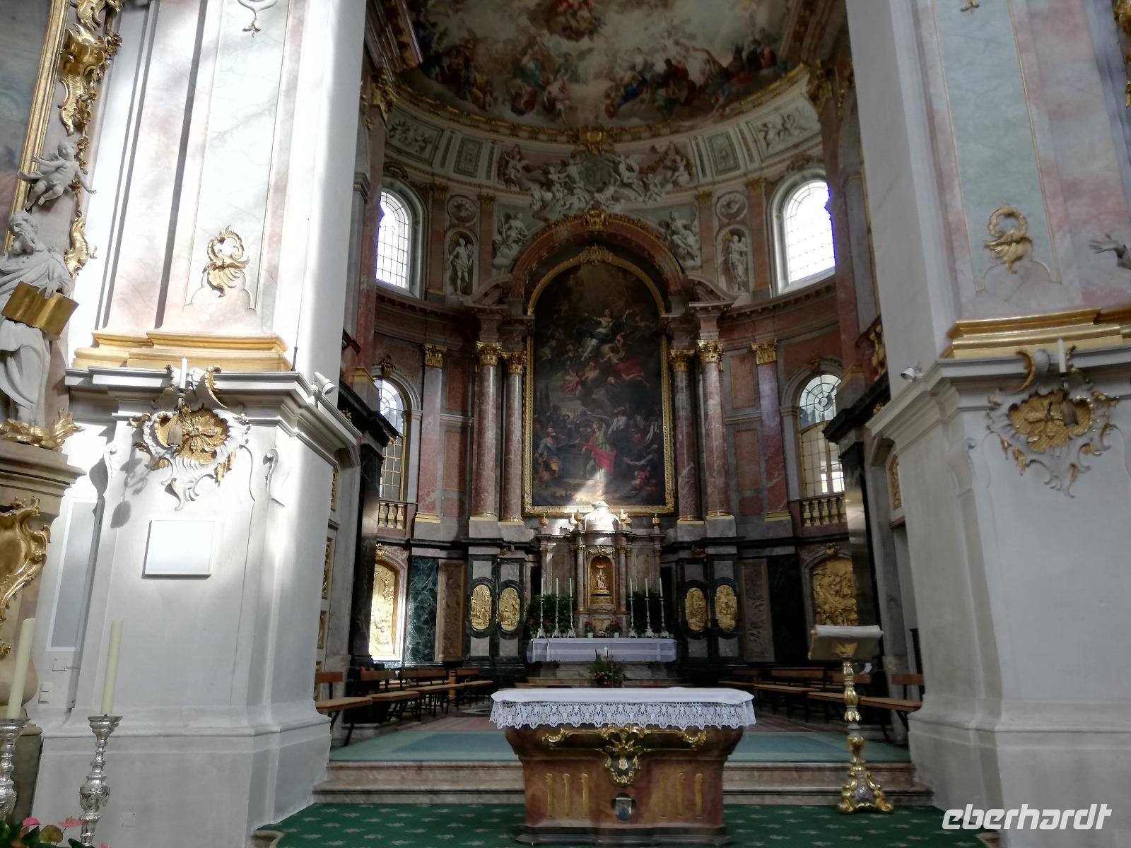 und bewundern die barocke Basilika. Im Inneren beeindrucken im Besonderen das Kuppelfresko von Johann Jacob Zeiller von 1746 und das berühmte Gnadenbild aus Carrara Marmor aus dem 14. Jahrhundert.