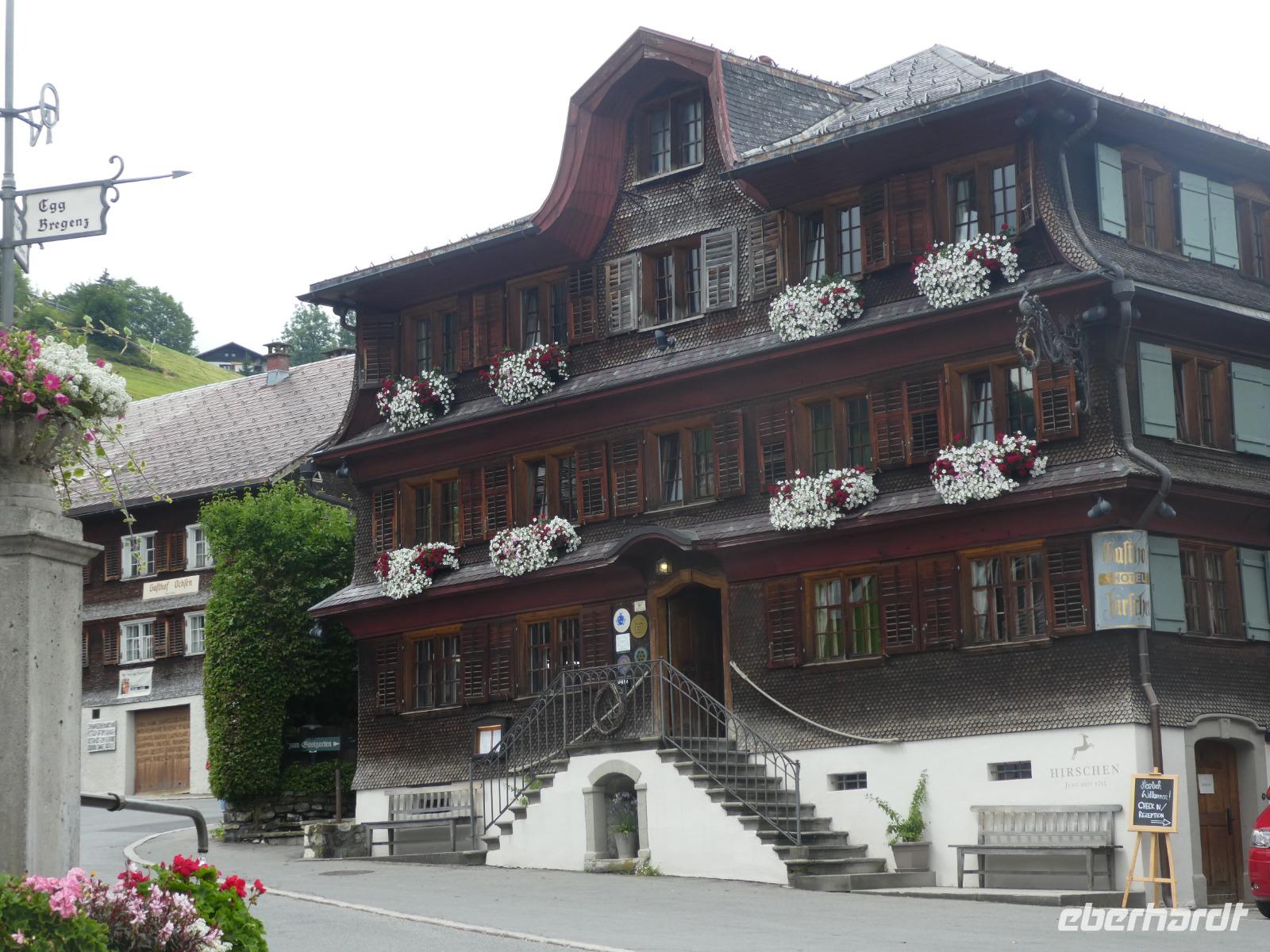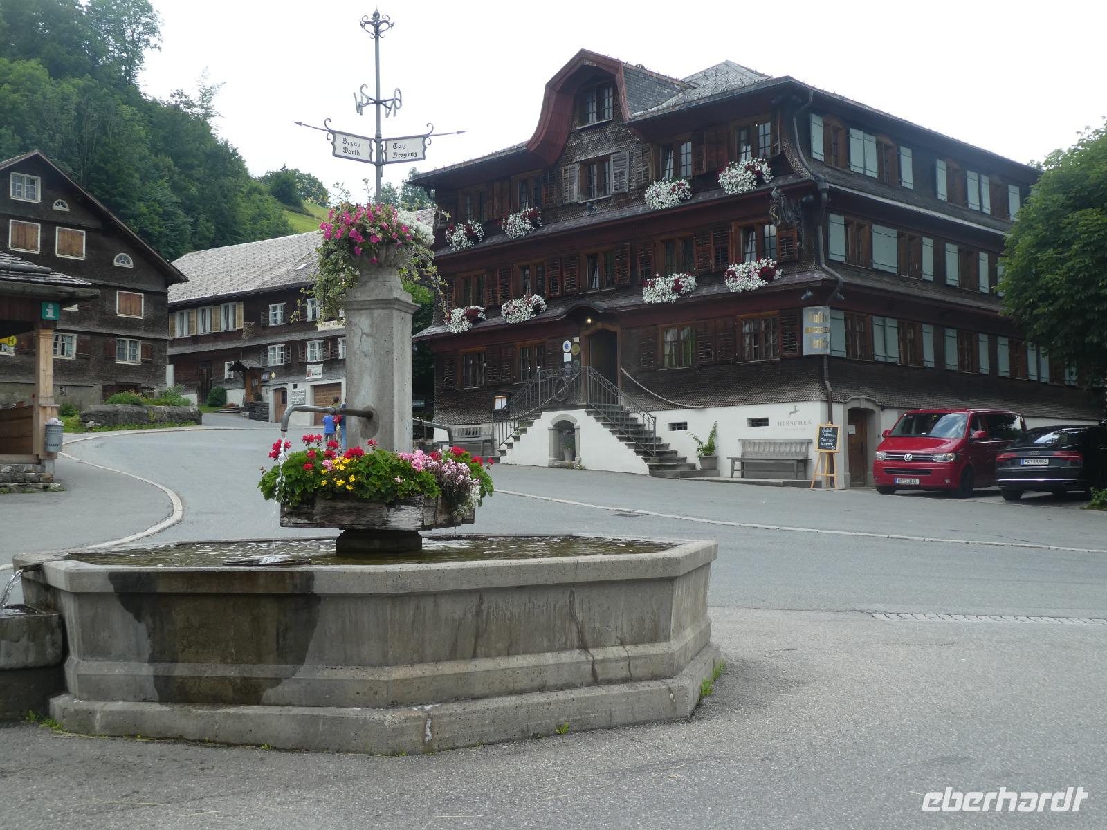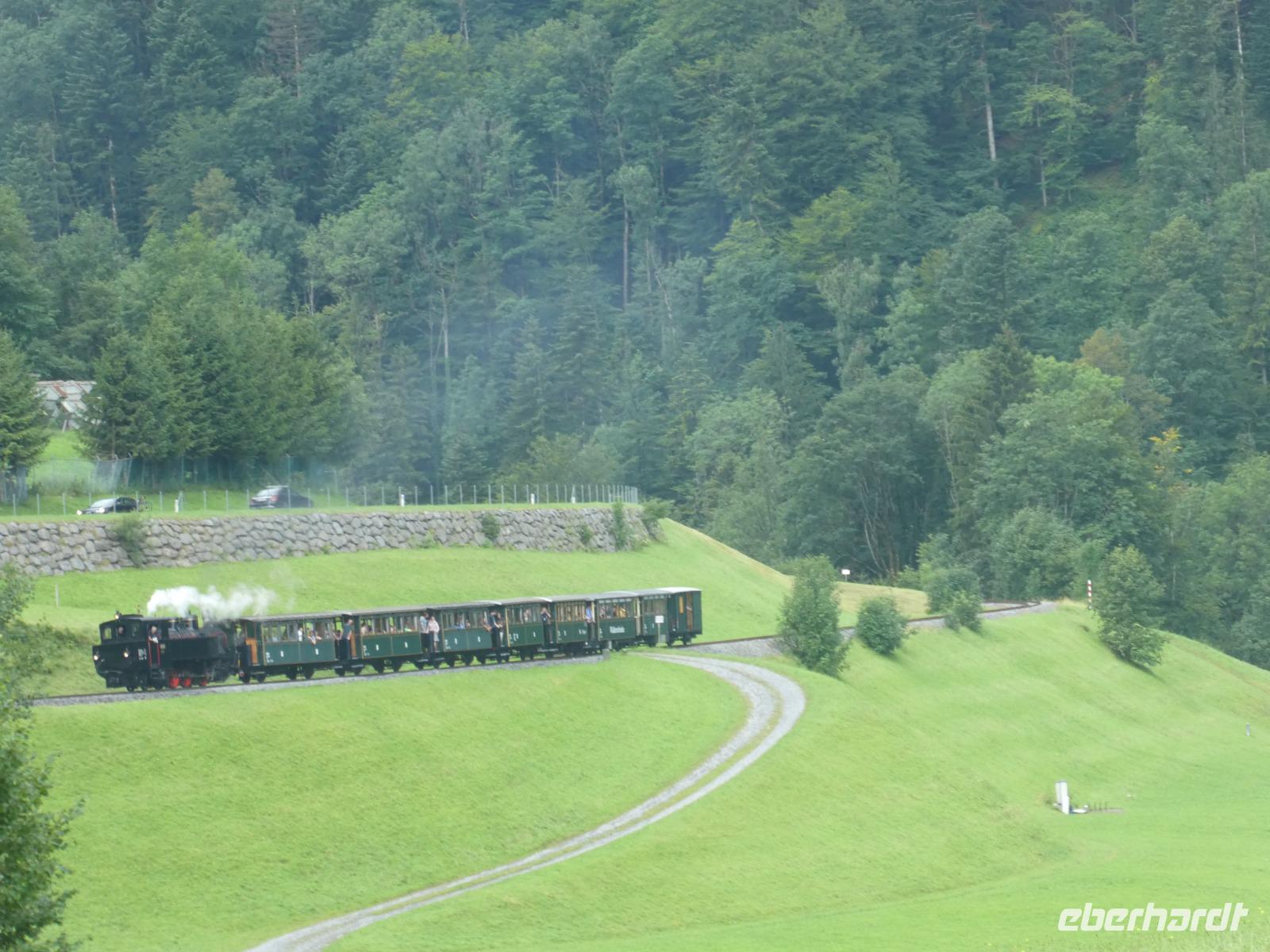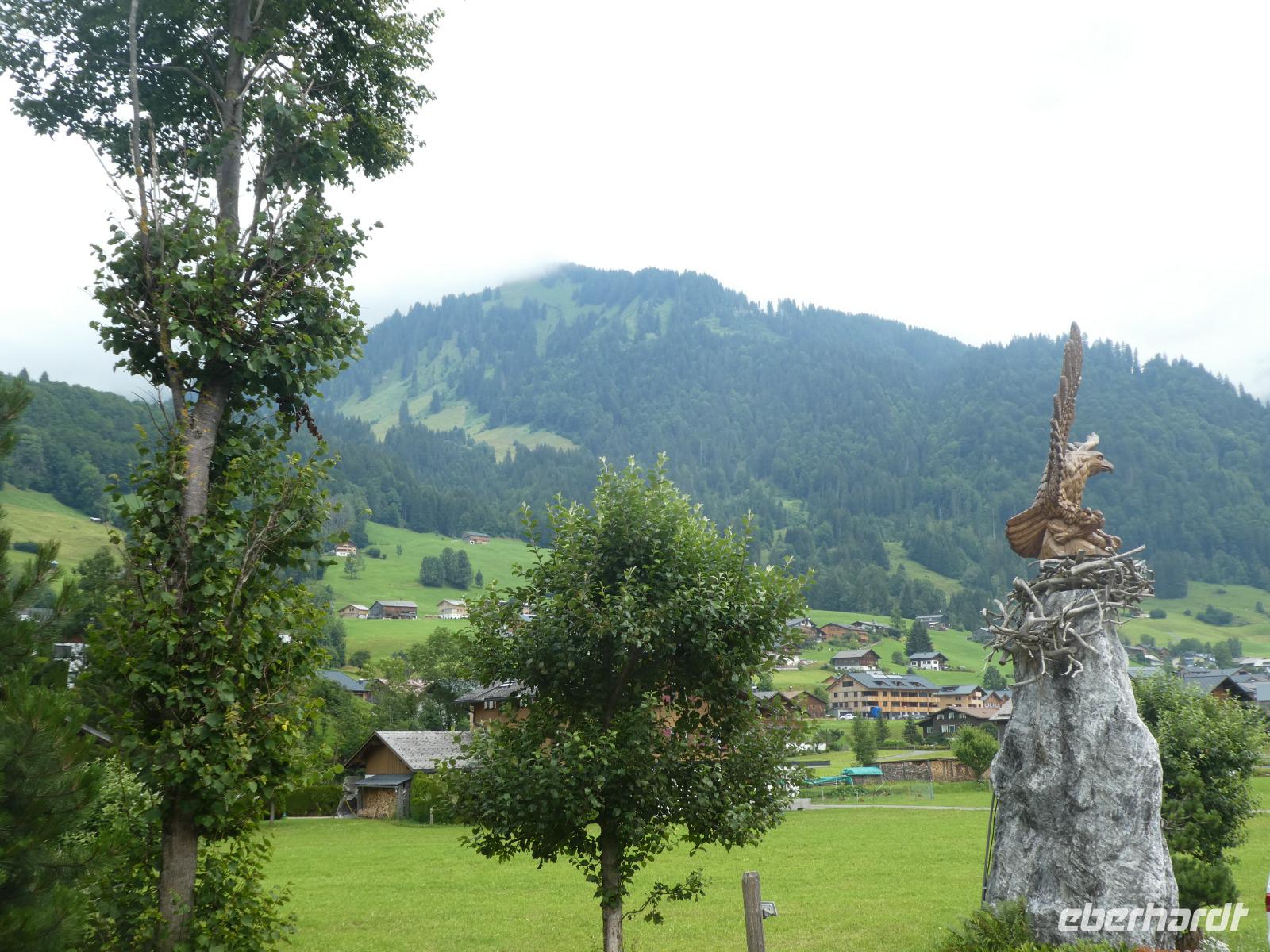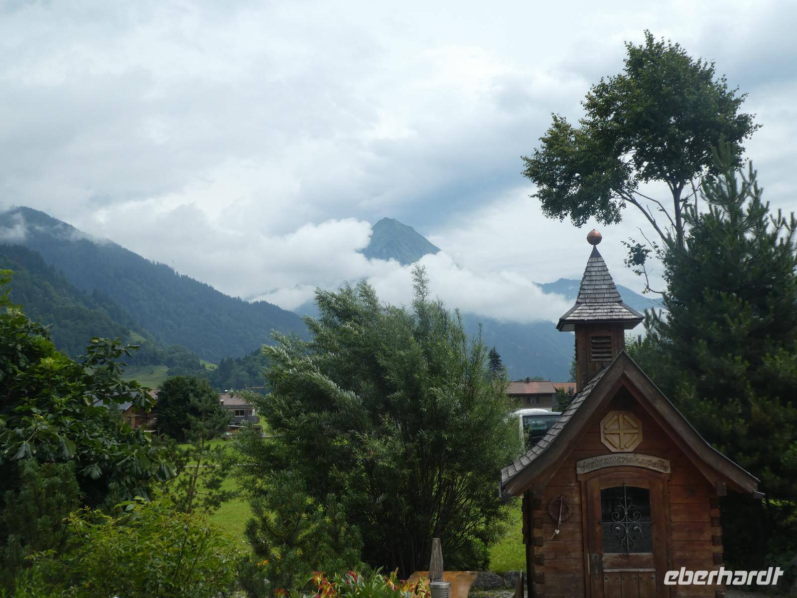 Heute erwartete uns ein Ausflug rund um den Widderstein. Mit unserer Reiseleiterin Frau Arnold fuhren wir durch Sonthofen und Bad Hindelang über den Oberjochpass nach Tannheim im gleichnamigen Tal. Nach einer kurzen Pause setzten wir unsere Fahrt durch das Lechtal fort und erreichten die Ur Alp wo wir zum Mittagessen einkehrten. Nun klarte der Himmel etwas auf und wir konnten wir die Bergwelt im Bregenzer Wald genießen. Auf dem Weg nach Schwarzenberg legten wir noch einen Stopp ein um das Wälderbähnle die auf der Stecke von Bezau nach Schwarzenberg fährt zu bewundern. Dampfend und schnaufent bog sie um die Kurve ein schöner Anblick. In der Gemeinde Schwarzenberg besuchten wir die Kirche und bestaunten die alten Bauernhöfe mit ihrem Schindelbeschlag. Der ganze Ort steht unter Denkmalschutz und ist einmalig in Österreich. Auf dem Weg nach Balderschwang wollten wir noch an einem schönen Aussichtspunkt halten doch das Wetter spielte nicht mit. Kurz bevor wir den Riedbergpass erreichten hatten wir noch Apetit auf einen Kaffee und so nutzten wir die Gelegenheit auf der Terrasse der Skihütte Platz zu nehmen. Dabei erlebten wir wie schnell sich das Wetter in den Bergen ändert. Erst Sonnenschein und plötzlich kammen Nebelschwaden über den Berg und es war nichts mehr zu sehen. Doch unten im Tal lockerte es wieder auf.