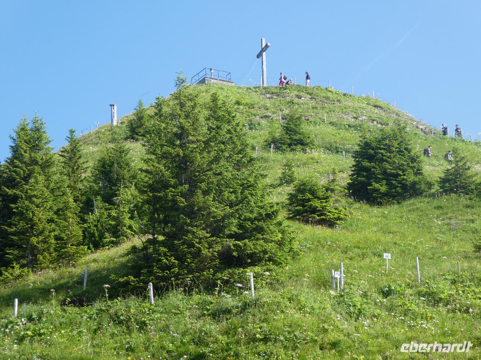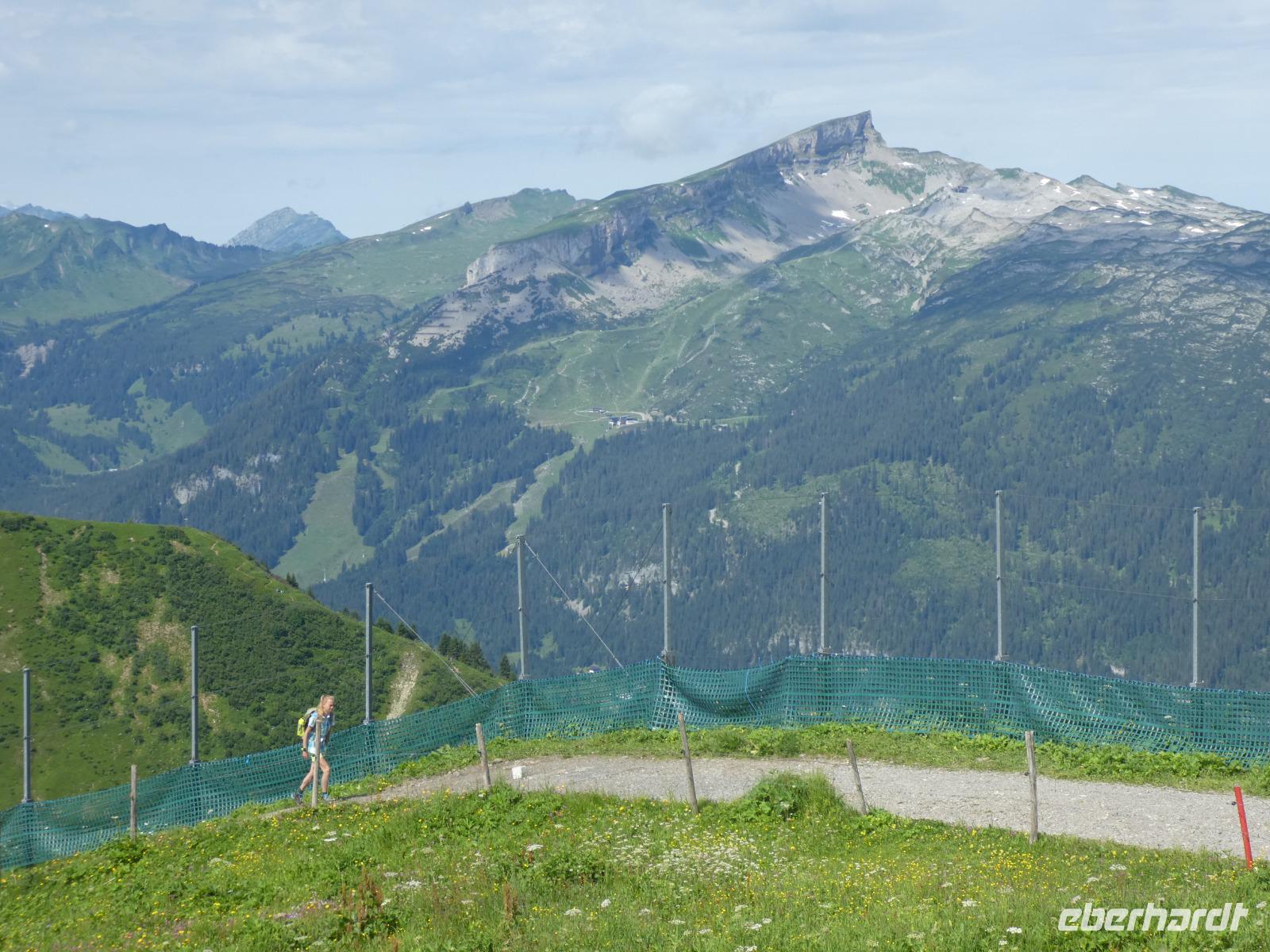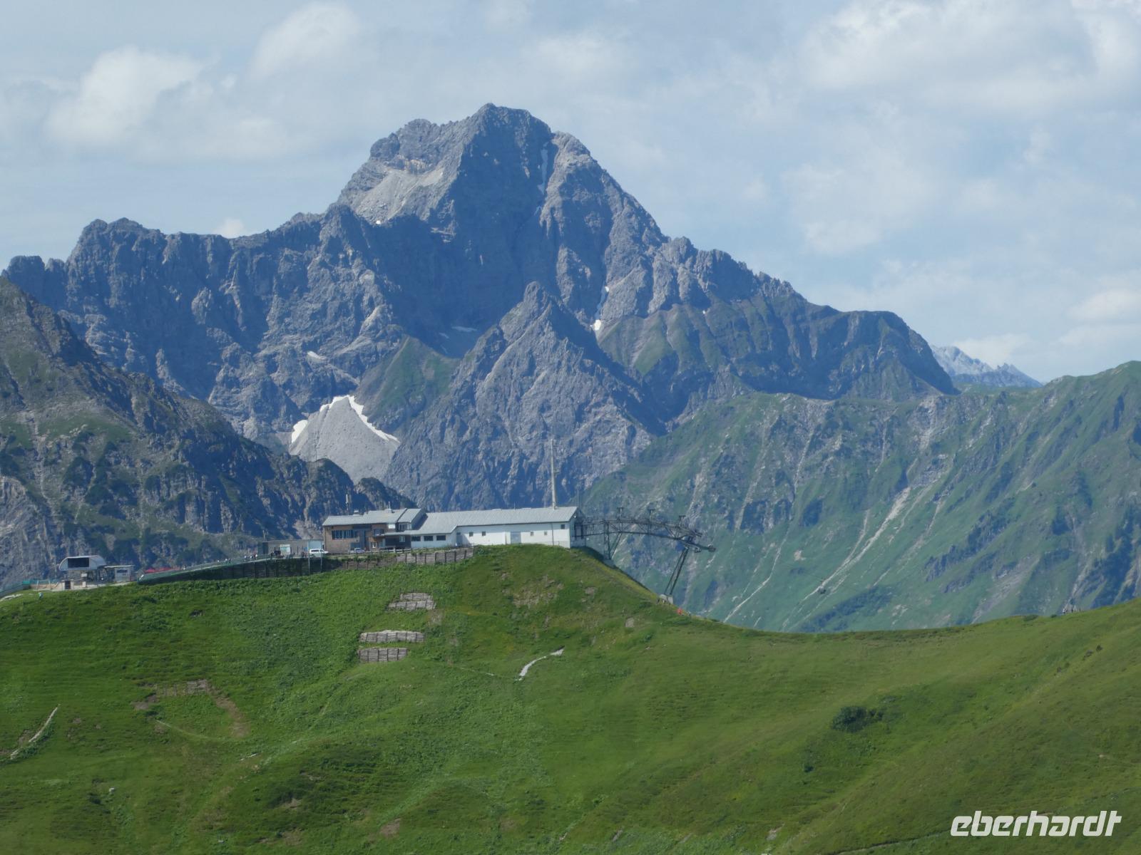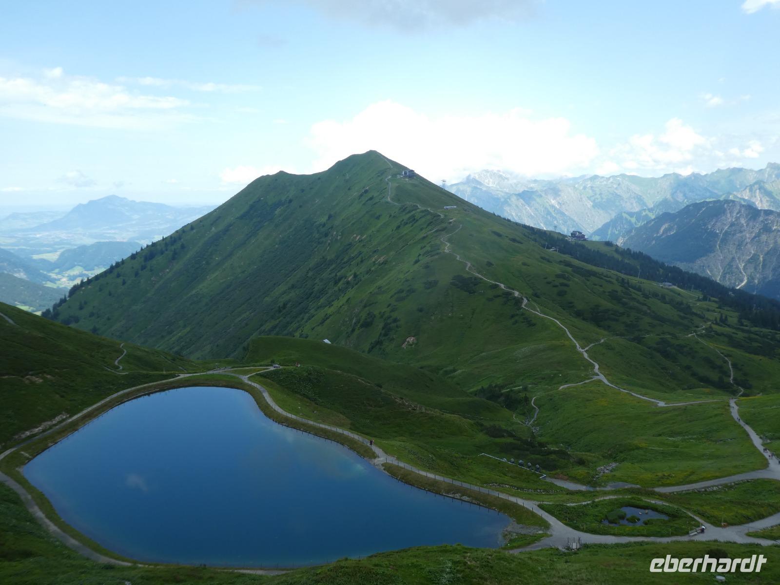 Am Morgen war in Mittelberg das Walmerdinger Horn unser Ziel. Nach etwas Wartezeit an der Gondel ging es hinauf. Auch hier ließen wir die Blicke schweifen in das Wildental und auf den Widderstein. Wer Lust hatte spazierte entlang des Alpengarten zum Gipfel oder fuhr mit dem Fahrstuhl zum Aussichtspunkt. Unser nächstes Ziel war das Söllereck. Erst dieses Jahr wurde die neue Kabinenbahn eröffnet. Vom Parkplatz erreicht man ganz bequem die Talstation. Wir schwebten nach oben und einige Gäste kehrten im Restaurant ein und genossen die süßen Köstlichkeiten wie den Kaiserschmarn. Die anderen wanderten auf dem Höhenweg nach Rietzler mit immer wieder schönen Aussichten auf die Berge des Kleinwalsertals. Im Bergstübel legten wir einen Stopp ein, um uns zu stärken. Nun ging es etwas steil bergab, bevor wir Rietzlern erreichten. Eine schöne Wanderung.