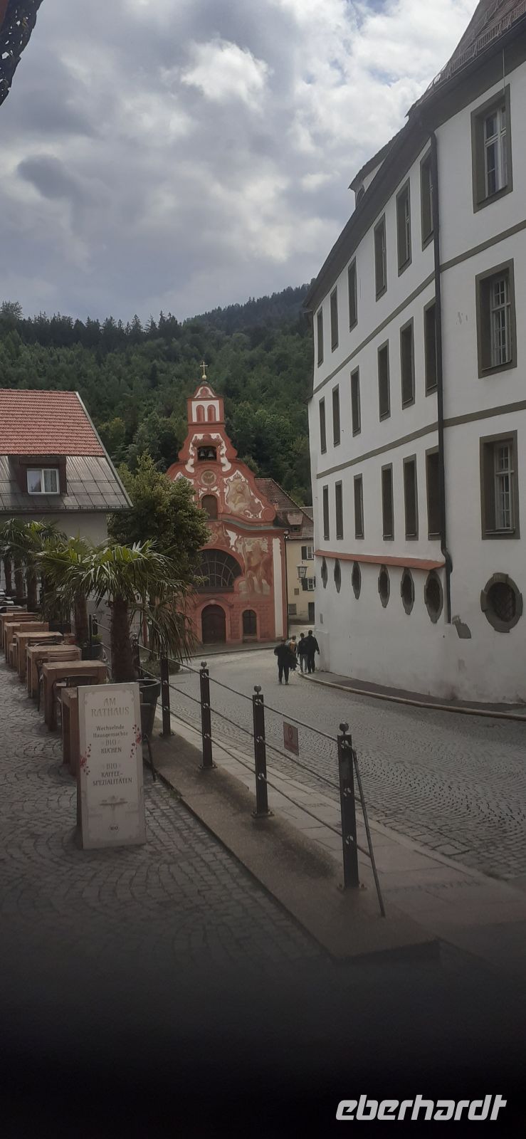 Da es auch heute wieder regnete entschlossen wir uns die bekannte und berühmte Wieskirche zu besuchen. So fuhren wir in Richtung Füssen nach Steingarden. Im Ortsteil Wies steht die Wallfahrtskirche zum Gegeißelten Heiland auf der Wies die Mitte des 18. Jh. gebaut wurde. Sie ist eine der meistbesuchten Wallfahrtskirchen des Rokokos und gehört seit 1983 zum UNESCO Weltkulturerbe. Der Gottesdienst war gerade vorbei und wir betraten die Kirche. Sie ist sehr prunkvoll und sehr beindruckend. Wir hatten Glück und konnten dem Orgelspiel lauschen. Auf dem Weg nach Füssen legten wir noch einen Stopp ein und hatten einen schönen Blick auf Schloss Neuschwanstein und das Schloss Hohenschwangau die beide seit kurzer Zeit auch zum Weltkulturerbe zählen. Wir erreichten Füssen und bummelten durch die Gassen der schönen Altstadt oder kehrten im Restaurant ein. Im Hohe Schloss befindet sich die Gemäldegalerie und im ehemaligen Benediktinerkloster das Museum der Stadt Füssen. Zurück im Kleinwalsertal war noch Zeit für einen Bummel durch Rietzlern.
