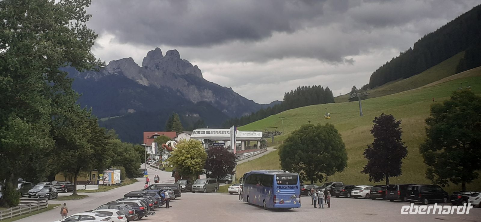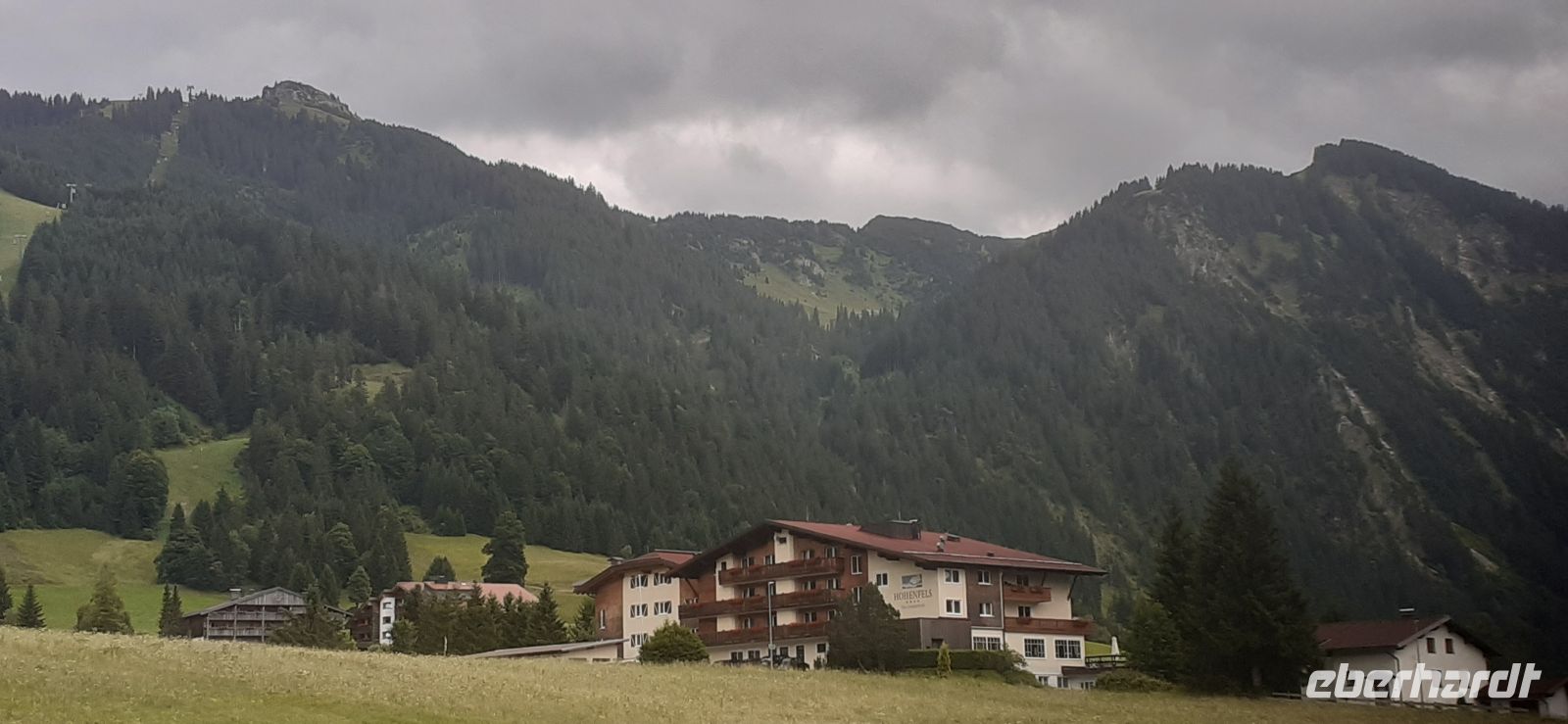 Es sollte der schönste Tag der Woche werden deshalb fuhren wir nach Oberstdorf zum Nebelhorn 2224m. Wir hatten Glück ohne anzustehen brachte uns die Gondeln vorbei an den Sprungschanzen zur Seealpe und weiter zur Mittelstation Höfatsblick. Von dort ging es mit der großen Gondel zur Bergstation. Es erwartete uns ein schöner Blick über die Bergwelt und 400 Gipfel. Die "Besteigung" des Gipfelkreuzes und das Foto gehörte natürlich auch dazu. Es war gute Thermik so konnte man an der Bergstation und der Mittelstation den Gleitschirmfliegern beim Start zuschauen. Auch ein Spaziergang an der Mittelstation auf dem Panoramaweg brachten neue Aussichten. Einige Gäste unternahmen noch einen Spaziergang durch Oberstdorf. Es trübte sich etwas ein und wir fuhren zur Heini Klopfer Schanze. Mit einem Schrägaufzug konnte man nach oben fahren und weiter mit einem Fahrstuhl zum Sprungturm. Danach unternahmen wir eine Rundfahrt durch das Kleinwalsertal. Wir fuhren durch Rietzler den Hauptort weiter nach Hirschegg wo sich das Walserhaus und der Heuberglift befindet. Weiter ging es nach Mittelberg bis zum Talschluss nach Baad. Damit wir auch alles sehen unternahmen wir noch einen Abstecher zum Hohen Ifen.