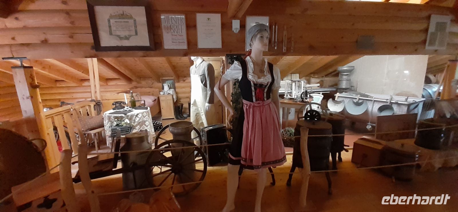 Für heute war Dauerregen angesagt. Deshalb fuhren wir nach Bad Wurzach in die Käserei Vogler. Im Sennerstüble wurden wir vom Herr Vogler begrüßt und erfuhren etwas über die Geschichte der Käserei die in 3. Generation schon seit 1936 besteht. Anschließend setzten wir eine Haube auf und zogen einen Mantel an und besichtigten die Käserei. Dort wurden wir in die Entstehung der verschiedenen Käsesorten eingewiesen. Immerhin werden je nach Jahreszeit 20 verschiedene Käsesorten hergestellt. In der urigen Käsestube kehrten wir zu einer Käse- oder gemischten Jause ein. Im 1. Stock konnten wir das kleine Käsemuseum besichtigten. Gut gestärkt fuhren wir nach Kißlegg. Im neuen Schloss Kißlegg wurden wir schon erwartet. Das Barockschloss wurde Anfang des 18. Jh. gebaut und war bis 1941 im Besitz der der Familie Waldenburg-Zeil. Anschließend wurde es verschieden genutzt. Zuletzt war es ein Krankenhaus bevor die Gemeinde das Schloss kaufen konnte. Seitdem wird es als Bürgerschloss genutzt. Mit sehr viel Liebe zum Detail wurde es liebevoll nach und nach restauriert. Während der Führung erfuhren wir dazu verschieden Details und bestaunten die verschiedenen Malereien. Viele Veranstaltungen wie Tagungen, Ausstellungen, Schlosstage oder Weihnachtsmarkt finden das ganze Jahr über statt.