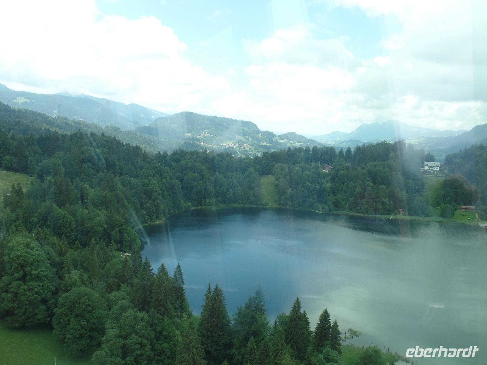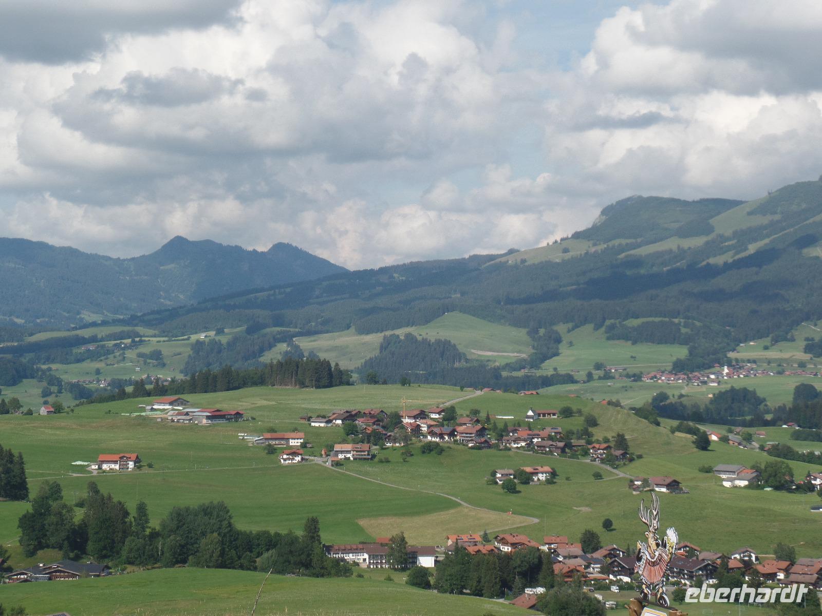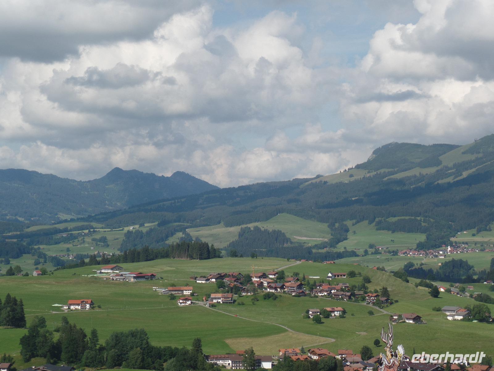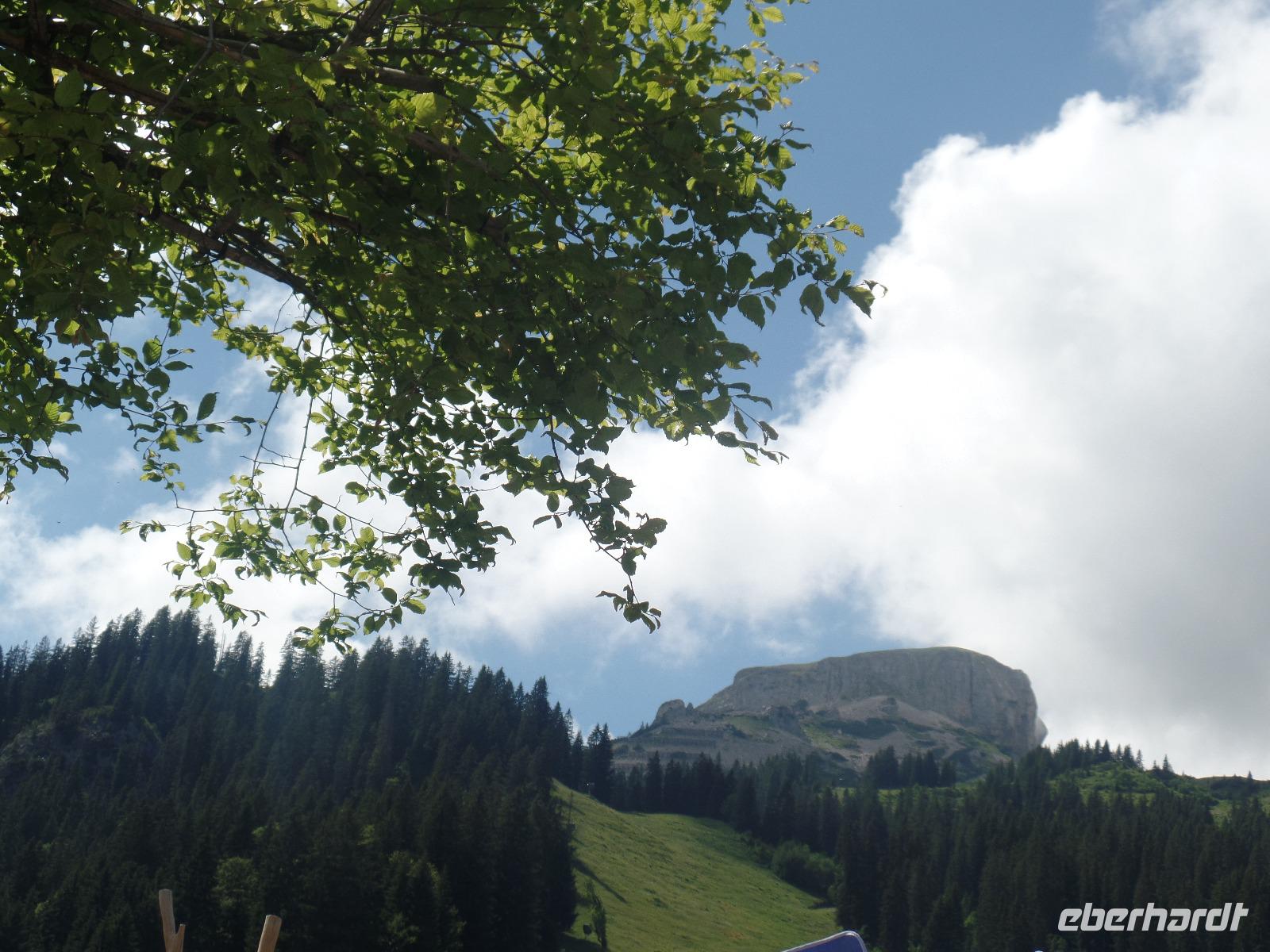 An unserem letzten Tag im Kleinwalsertal wollten wir noch einmal hoch hinaus. Wir fuhren mit der Gondel auf die Kanzelwand. Die Sonne schien und der Blick auf Rietzlern und die umliegenden Berge war phantastisch. Anschließend fuhren wir nach Mittelberg um das Walmerdinger Horn zu besuchen. Entlang des Alpenblumenlehrpfades mit mehr als 130 Pflanzenarten erreichten wir das Gipfelkreuz. Von dort hatten wir einen schönen Blick in das Schwarzwassertal und auf die Rückseite des Hohen Ifen. Anschließend kehrten wir im Restaurant ein. Endlich gab es die Gelegenheit einen Kaiserschmarrn zu essen. Von der Aussichtsplattform hatten wir auch den Blick auf den Großen Widderstein 2533m den höchsten Berg des Kleinwalsertales. Damit wir auch das gesamte Kleinwalsertal kennen lernten unternahmen wir noch einen Abstecher nach Baad. Doch der Tag war noch nicht zu Ende. Zurück in Rietzlern fuhren wir zum Hohen Ifen. Die Gondelbahn wurde erst letztes Jahr in Betrieb genommen. Auch wenn wir nur bis zur Mittelstation in 1586 Meter in Höhe fahren konnten so hatte es sich gelohnt. Entlang des Panoramaweges zum Aussichtspunkt konnten wir die Alpenflora bewundern. Wieder zurück an der Talstation kehrten wir noch zu einem kühlen Getränk auf der Terrasse der Berghütte ein.