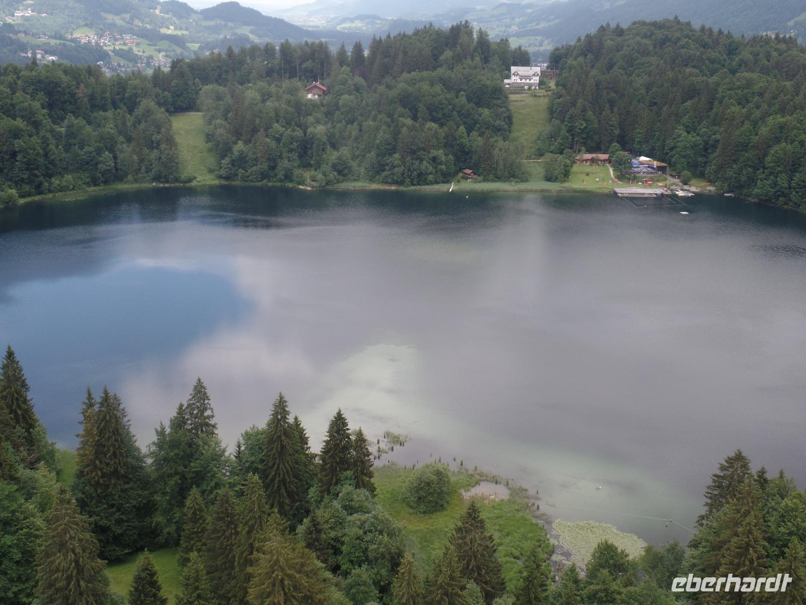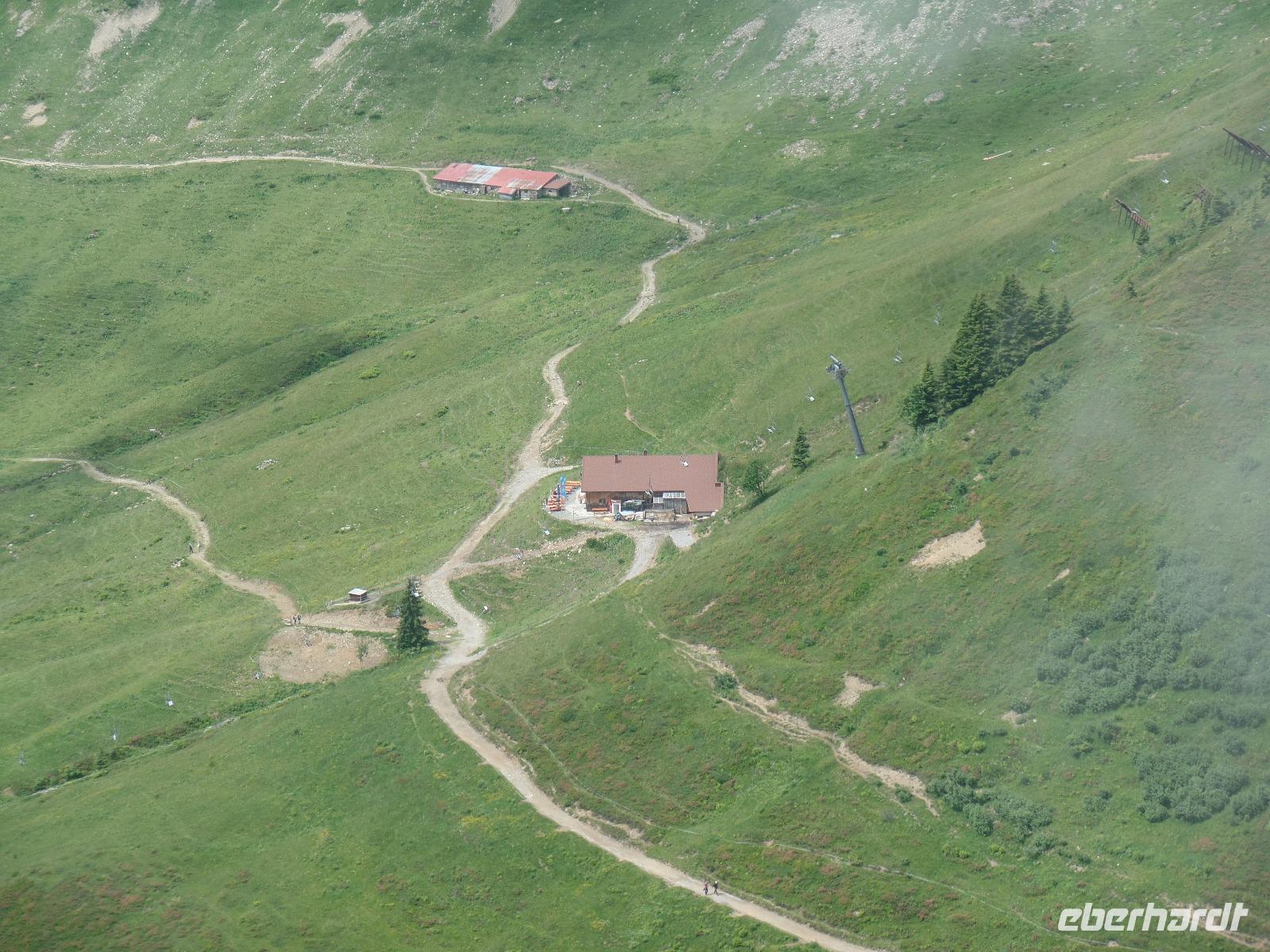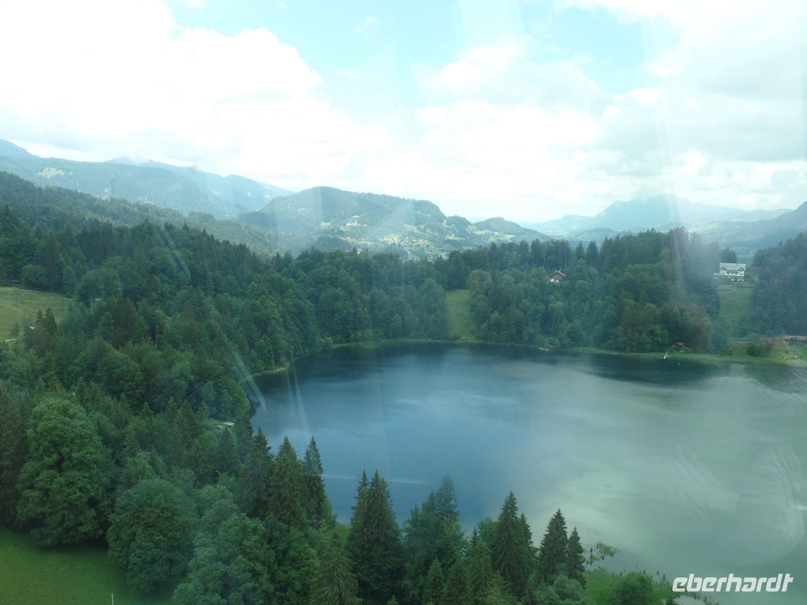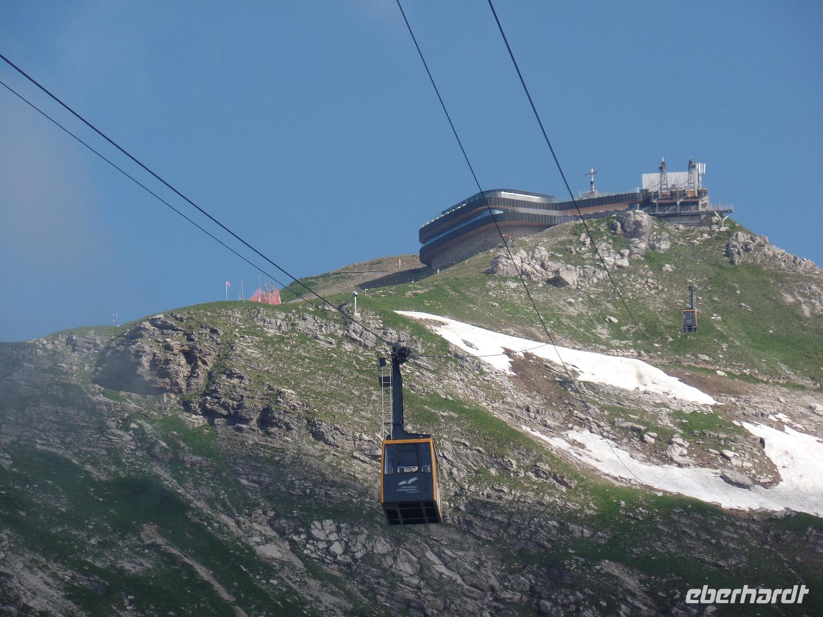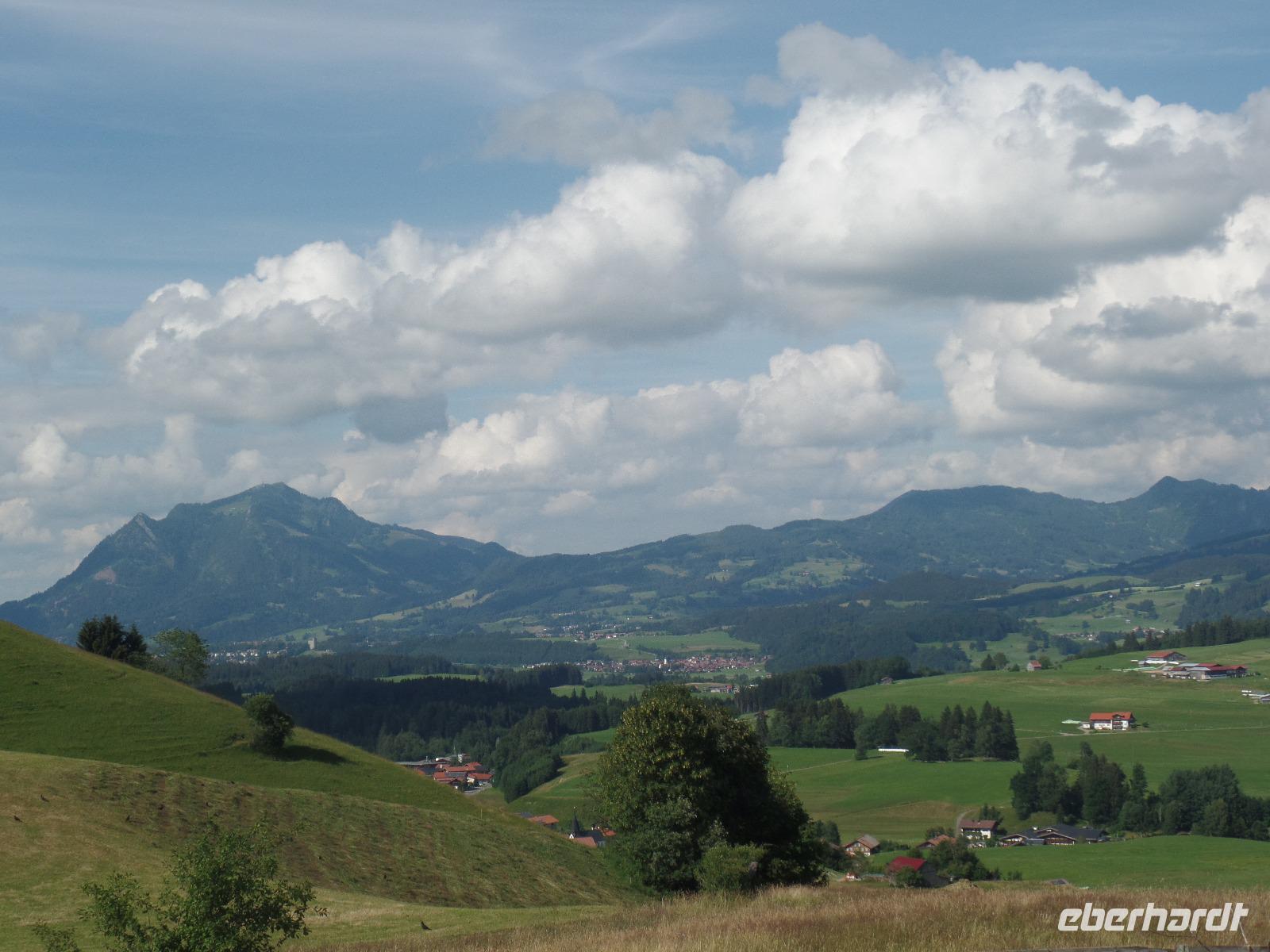 An unserem letzten Tag im Kleinwalsertal wollten wir noch einmal hoch hinaus. Wir fuhren mit der Gondel auf die Kanzelwand. Die Sonne schien und der Blick auf Rietzlern und die umliegenden Berge war phantastisch. Anschließend fuhren wir nach Mittelberg um das Walmerdinger Horn zu besuchen. Entlang des Alpenblumenlehrpfades mit mehr als 130 Pflanzenarten erreichten wir das Gipfelkreuz. Von dort hatten wir einen schönen Blick in das Schwarzwassertal und auf die Rückseite des Hohen Ifen. Anschließend kehrten wir im Restaurant ein. Endlich gab es die Gelegenheit einen Kaiserschmarrn zu essen. Von der Aussichtsplattform hatten wir auch den Blick auf den Großen Widderstein 2533m den höchsten Berg des Kleinwalsertales. Damit wir auch das gesamte Kleinwalsertal kennen lernten unternahmen wir noch einen Abstecher nach Baad. Doch der Tag war noch nicht zu Ende. Zurück in Rietzlern fuhren wir zum Hohen Ifen. Die Gondelbahn wurde erst letztes Jahr in Betrieb genommen. Auch wenn wir nur bis zur Mittelstation in 1586 Meter in Höhe fahren konnten so hatte es sich gelohnt. Entlang des Panoramaweges zum Aussichtspunkt konnten wir die Alpenflora bewundern. Wieder zurück an der Talstation kehrten wir noch zu einem kühlen Getränk auf der Terrasse der Berghütte ein.