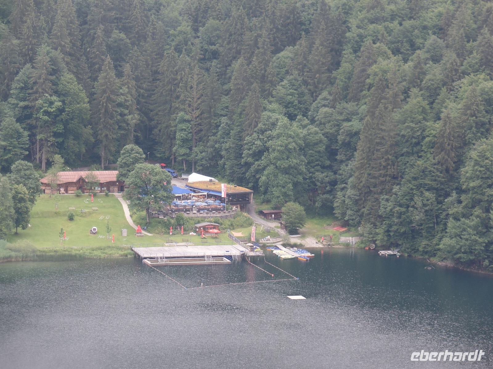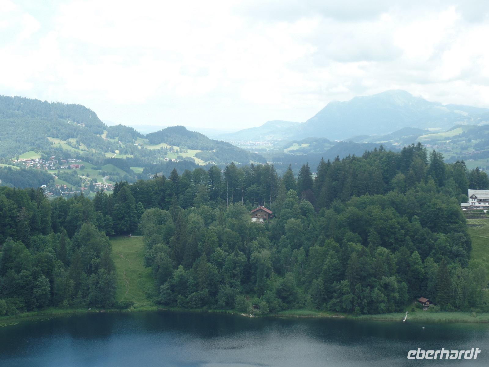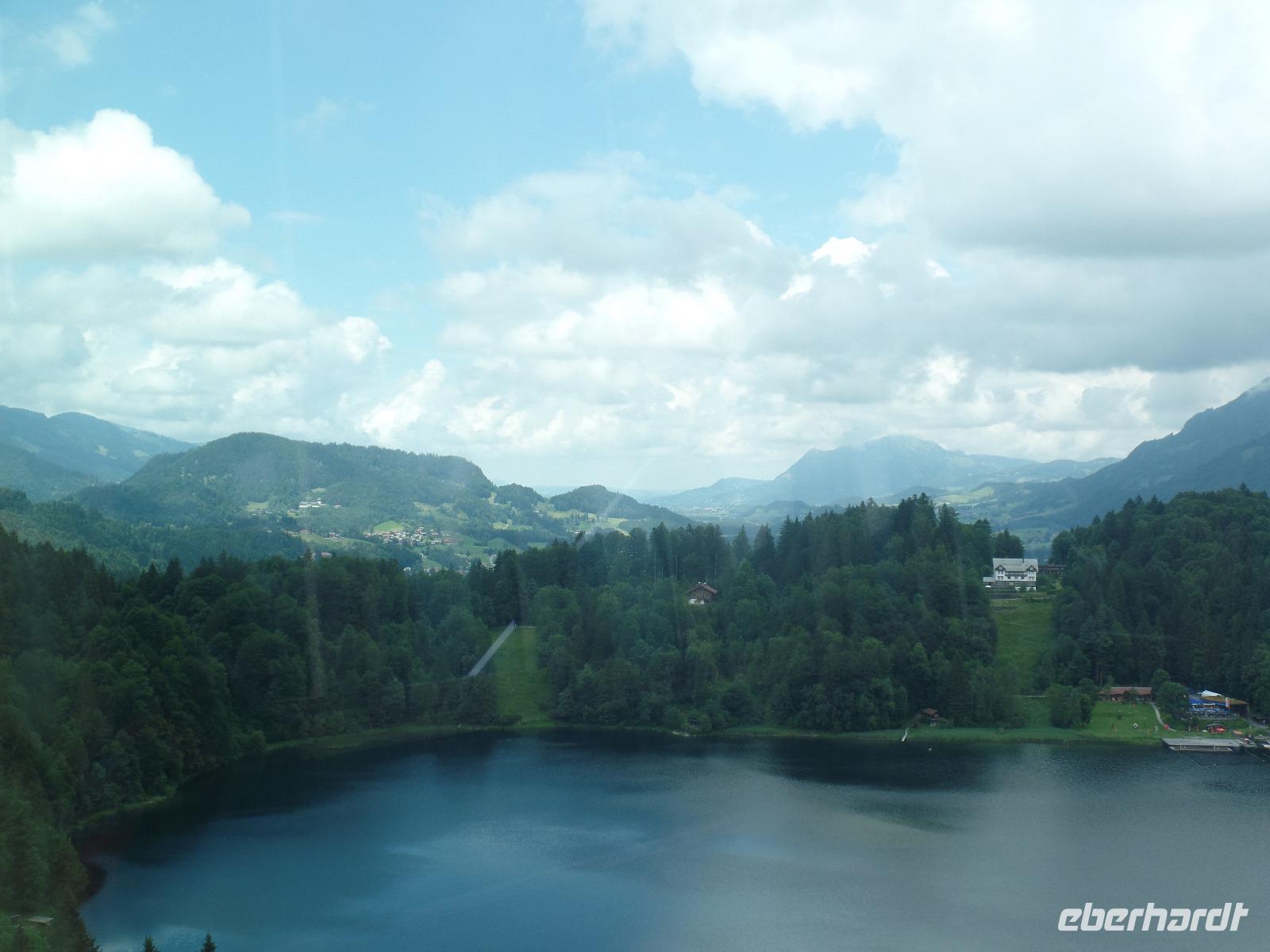 Die Wettervorhersage war nicht so berauschend. Aber wir wollten ja heute nicht in die Berge sondern das Schloss Neuschwanstein besuchen. Wir fuhren nach Füssen und hatten einen schönen Blick in die Altstadt. In Hohenschwangau angekommen regnete es. Während ich die Tickets holte liefen schon die ersten zum Schloss oder fuhren mit dem Bus nach oben. Besonders schön ist der Blick von der Marienbrücke auf das Schloss Neuschwanstein. Es lag etwas mystisch in den Wolken. Endlich war es soweit und die Führung begann. Dabei wurden wir durch die Wohn- und Repräsentationsräume geführt. Beeindruckend für uns war der Thron- und der Sängersaal sowie die künstlich angelegte Grotte. Dabei mussten auch einige Treppen bewältigt werden. Da das Torhaus restauriert wird waren einige Möbel abgedeckt. König Ludwig hat nur kurz in diesem Schloss gewohnt. Bereits kurz nach seinem Tod wurde das Schloss als Museum genutzt. Jährlich besuchen etwa 1,3 Millionen Gäste das wohl berühmteste Schloss in Deutschland. Es regnete immer noch. Unser nächstes Ziel war der Besuch der Benediktinerabtei im Kloster Ettal. Beindruckend ist die Basilika mit ihrer Schönen Kuppel. In der Klosteranlage befinden sich auch ein Internat und eine Schule. Außerdem gehören noch die Käserei, die Brauerei sowie ein Hotel und Restaurant dazu. Vorbei am Schloss Linderhof und entlang des Plansees fuhren wir zurück in das Kleinwalsertal.