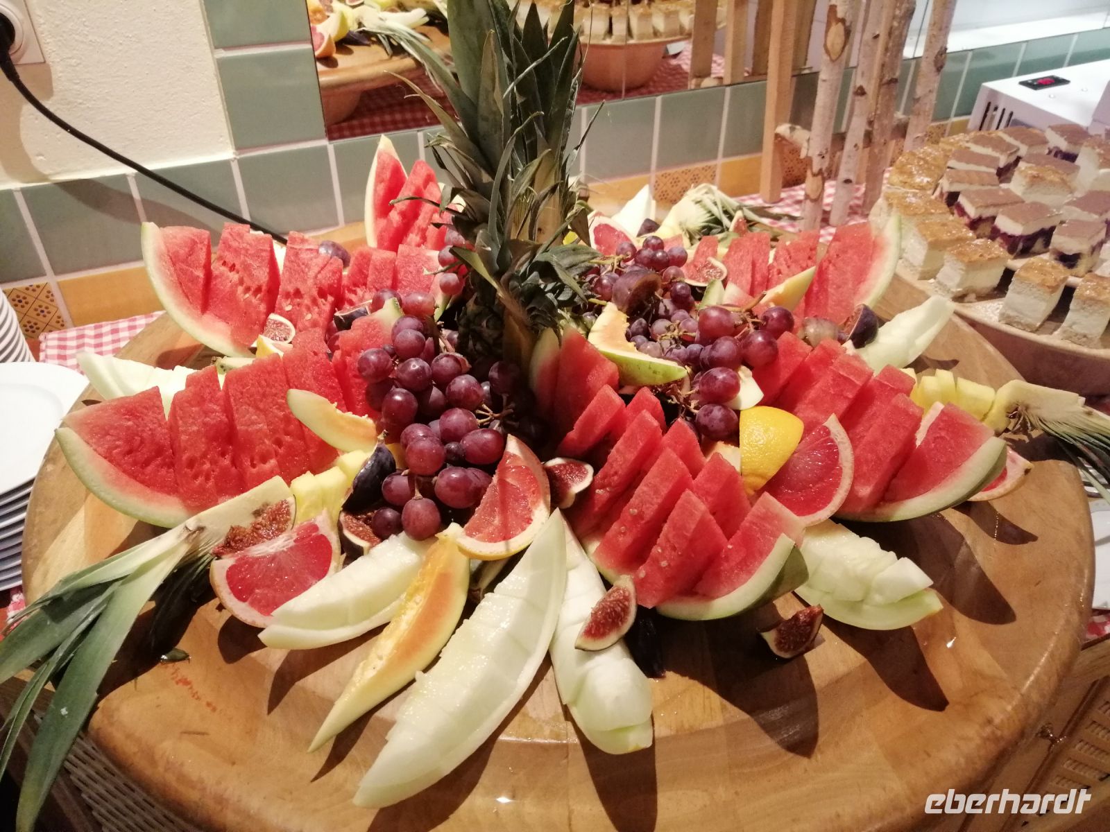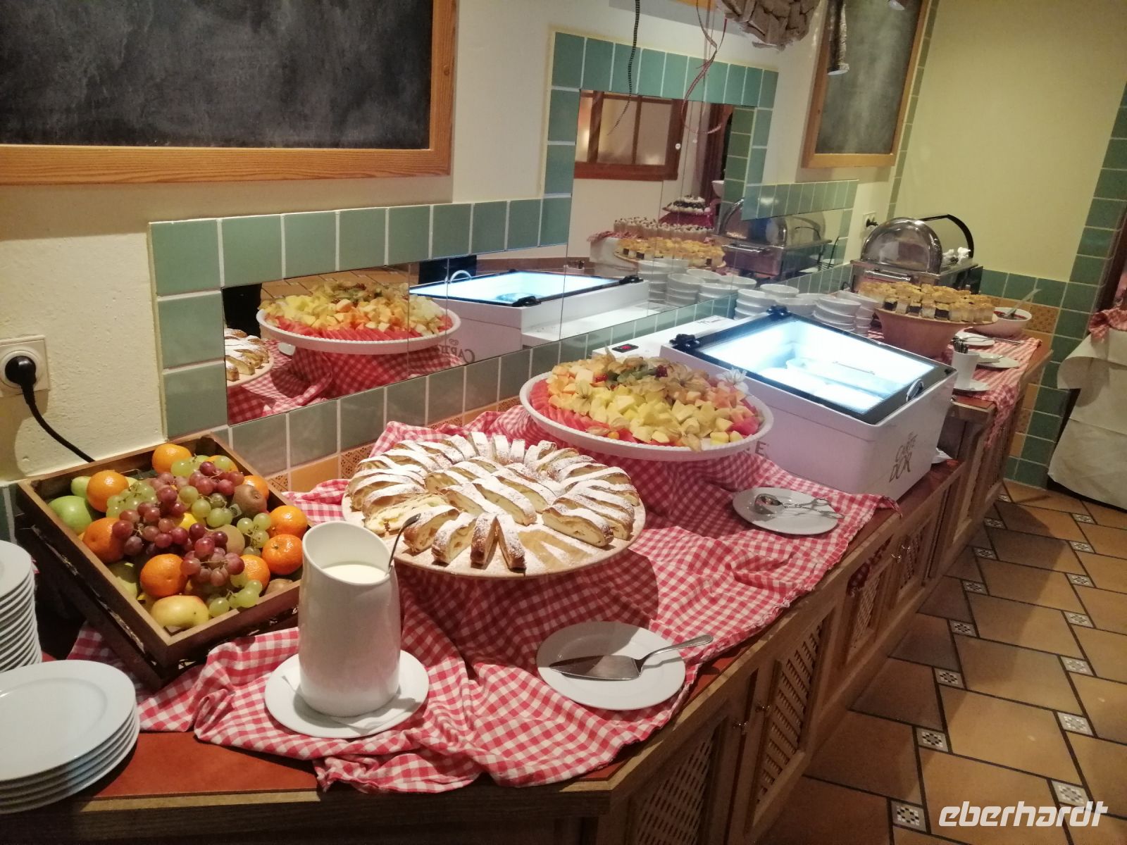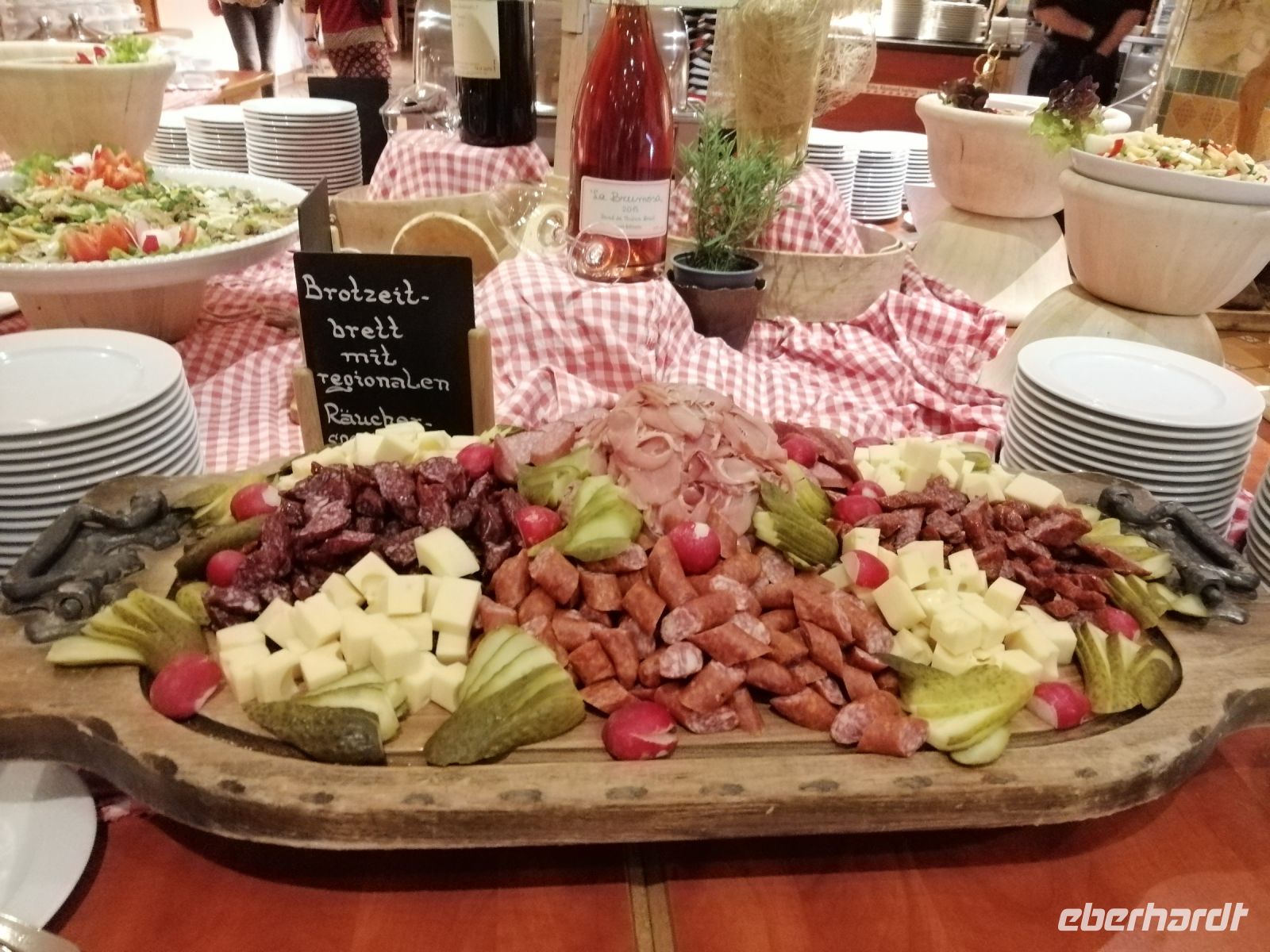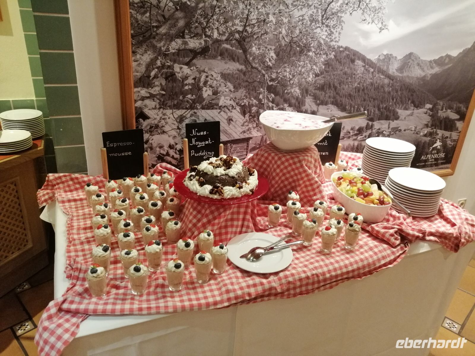Heute freuen wir uns bei bestem Wetter auf eine Wanderung auf dem Panoramaweg durch das Schwarzwassertal Richtung Riezlern. Nach dem leckeren Frühstück trafen wir uns vor dem Hotel mit unserem Bergführer Charlie. Wir gingen zu Fuß zum Sessellift und fuhren (200 Höhenmeter) zu Sonna-Alp. Heute ist der letzte Arbeitstag dieser Seilbahn: wir haben Glück! An der Sonna-Alp zeigte uns Charlie das wunderschöne Berg-Panorama des Kleinwalsertals und erzählte über die Geschichte dieser Region. Wir bekamen Informationen nicht nur über die Einwohnerzahl von Mittelberg (ca. 5.000 Menschen) und die Bettenanzahl in der Region (12.000 Betten), sondern erfuhren wie viele Übernachtungen im Jahr hier stattfinden (1,7 Mio.), bekamen Informationen über das Steuersystem und das Bankwesen im Kleinwalsertal. Charlie informierte uns auch über die Landwirtschaft, den Tourismus und vieles mehr! Danach wanderten wir den wunderschönen Panoramaweg Richtung Schwarzwassertal. Teilweise war der Wanderweg sehr steil. Unser Bergführer empfahl uns die Wanderstöcke ohne Schlaufen zu halten, um Verletzungen zu vermeiden. Eine sehr gute Empfehlung! Unterwegs schauten wir uns verschiedene Sehenswürdigkeiten an: eine Schlucht im Schwarzwassertal mit beeindruckenden Kessellöchern, eine Naturbrücke aus Kalkstein: ein über das Bachbett gespannter Brückenbogen mit einer Spannweite von 5 m. Charlie erläuterte uns die Bedeutung der Wegmarkierungen in Österreich. Viele Wanderwege sind nicht nur im Sommer oder Herbst begehbar, sondern werden auch im Winter präpariert und geräumt. Obwohl wir sehr schönes Wetter hatten, war es im Schatten des Waldes teilweise sehr kühl. Nach einer gemütlichen Picknick-Pause, erreichte unsere sportliche Wandergruppe Riezlern gegen Mittag. In einem urigen Kaffee, direkt gegenüber der Kanzelwandbahn, hatten wir eine Bier-, Kaffee- und Kuchen-Pause. Da das Wetter sehr schön war, beschloss die Gruppe mit der Kanzelwandbahn hochzufahren und das wunderschöne Bergpanorama auf der Kanzelwand zu genießen. Oben angekommen wurden wir mit fantastischen Aussichten belohnt. Der wunderschöne Tag endete gegen 16 Uhr im Hotel. Es gab noch genug Zeit zum Ausruhen oder für die Sauna. Bei unserem Abendessen wurden wir mit amerikanischen Spezialitäten verwöhnt.