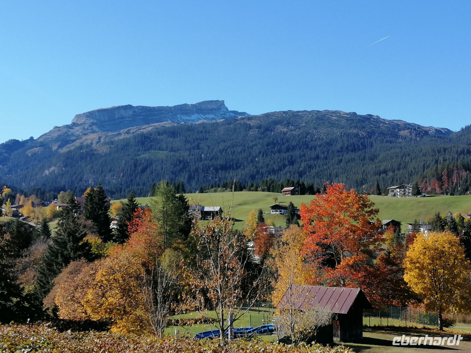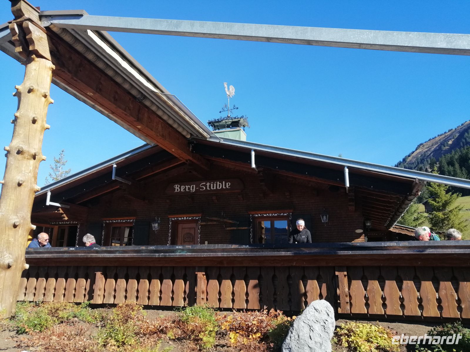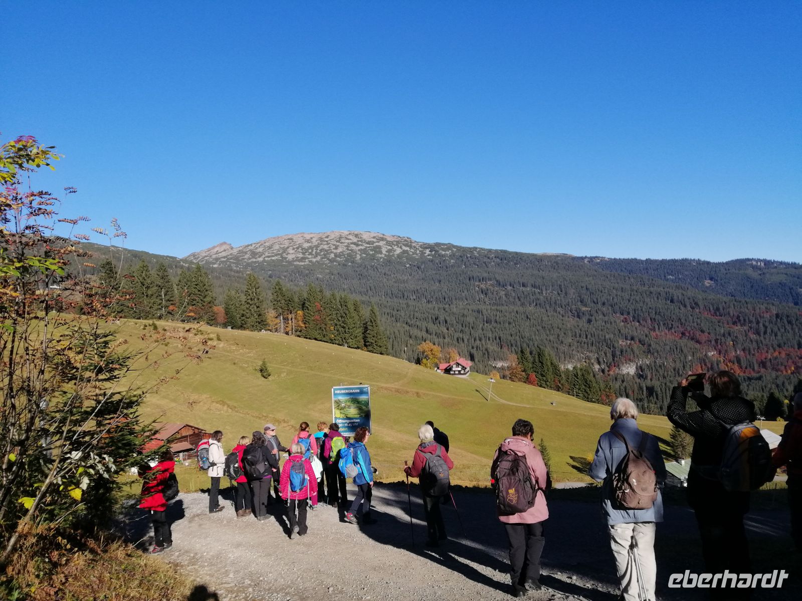 Heute ist der letzte Tag unserer Wanderreise und das Wetter belohnt uns mit einem wunderbaren sonnigen Tag! Wir trafen uns mit Charlie ganz entspannt kurz vor 10 Uhr und fuhren mit dem Walserbus bis zur Söllereckbahn. Die Wanderung begannen wir von der Bergstation der neuen Bergbahnanlage (1.358 m). Wir liefen den herrlichen Riezler Wanderweg entlang und genossen den Panoramablick auf die von uns bereits erkundete Landschaft des Kleinwalsertals: Heuberg (1.380 m), Walmendingerhorn (1.990 m), Hirschegg (1.124 m). Oft hatten wir unterwegs kurze Pausen gemacht, um ein paar Fotos von den Bergen zu machen, die wir als kleine Erinnerungen mit nach Hause nehmen. Die entspannte Wanderung endete im Berg-Stüble. Die nette Bedienung servierte uns unter anderem auch den sehr leckeren Kaiserschmarrn! Außerdem hatten wir einen guten Anlass anzustoßen: denn der Thomas ist zum ersten Mal Großvater geworden! Alles Gute für dich und deine Familie, du Opa:-)!!! Nach der gemütlichen Pause im Berg-Stüble stiegen wir nach Riezlern ab. Die anschließende Freizeit wurde individuell genutzt um entweder ein paar Souvenirs zu kaufen oder neue entstandene Wanderpläne umzusetzen: eine kleine Gruppe entscheid sich, Richtung Hoher Ifen zu wandern! Zum Abendessen gab es heute wieder etwas Besonderes: "rustico mediterraneo". Während des tollen Abendbrotes verabschiedeten wir uns vom Hotelpersonal und von unserem Bergführer Charlie, der eigentlich Karl heißt, im Jahr über 1.000 km wandert (an der Spitze sogar 1.800 km) und jährlich ein paar Wanderschuhe "verbraucht" :-). Danke für die gute Betreuung im Kleinwalsertal!