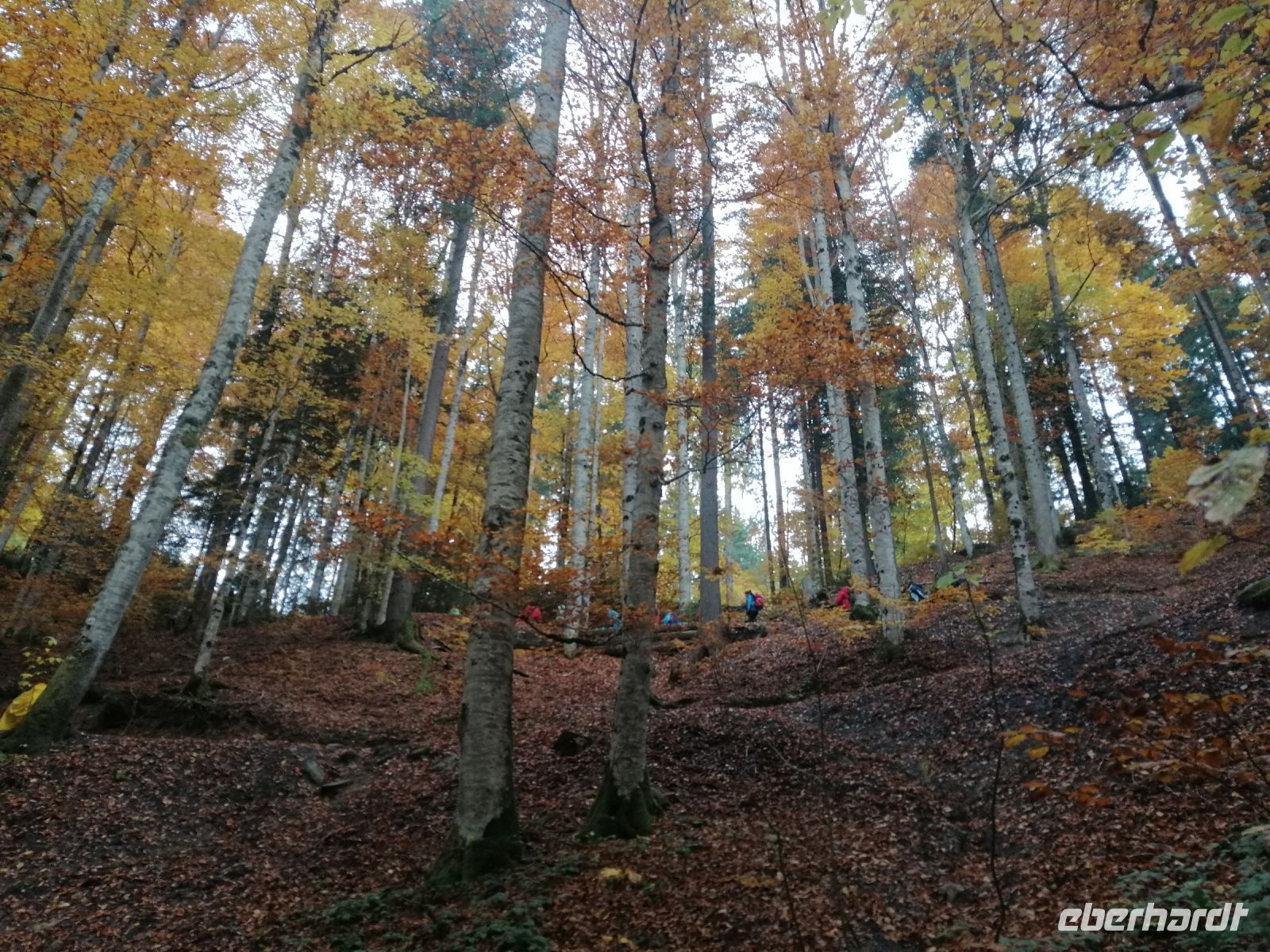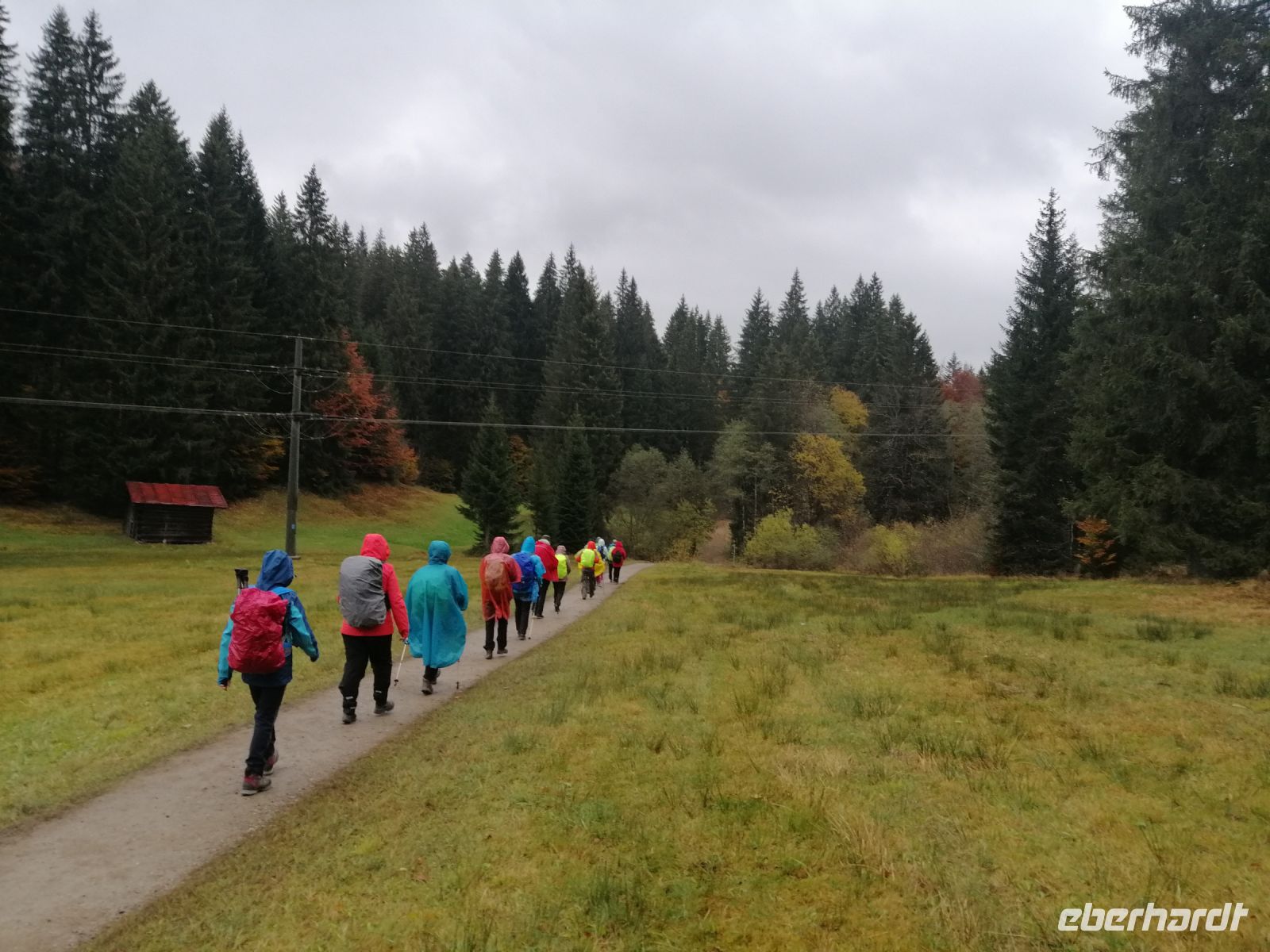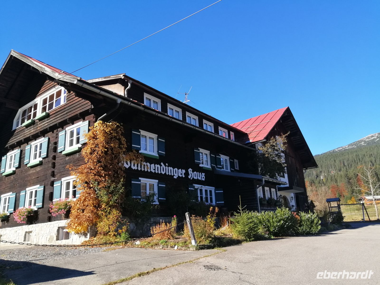 Heute ist der letzte Tag unserer Wanderreise und das Wetter belohnt uns mit einem wunderbaren sonnigen Tag! Wir trafen uns mit Charlie ganz entspannt kurz vor 10 Uhr und fuhren mit dem Walserbus bis zur Söllereckbahn. Die Wanderung begannen wir von der Bergstation der neuen Bergbahnanlage (1.358 m). Wir liefen den herrlichen Riezler Wanderweg entlang und genossen den Panoramablick auf die von uns bereits erkundete Landschaft des Kleinwalsertals: Heuberg (1.380 m), Walmendingerhorn (1.990 m), Hirschegg (1.124 m). Oft hatten wir unterwegs kurze Pausen gemacht, um ein paar Fotos von den Bergen zu machen, die wir als kleine Erinnerungen mit nach Hause nehmen. Die entspannte Wanderung endete im Berg-Stüble. Die nette Bedienung servierte uns unter anderem auch den sehr leckeren Kaiserschmarrn! Außerdem hatten wir einen guten Anlass anzustoßen: denn der Thomas ist zum ersten Mal Großvater geworden! Alles Gute für dich und deine Familie, du Opa:-)!!! Nach der gemütlichen Pause im Berg-Stüble stiegen wir nach Riezlern ab. Die anschließende Freizeit wurde individuell genutzt um entweder ein paar Souvenirs zu kaufen oder neue entstandene Wanderpläne umzusetzen: eine kleine Gruppe entscheid sich, Richtung Hoher Ifen zu wandern! Zum Abendessen gab es heute wieder etwas Besonderes: "rustico mediterraneo". Während des tollen Abendbrotes verabschiedeten wir uns vom Hotelpersonal und von unserem Bergführer Charlie, der eigentlich Karl heißt, im Jahr über 1.000 km wandert (an der Spitze sogar 1.800 km) und jährlich ein paar Wanderschuhe "verbraucht" :-). Danke für die gute Betreuung im Kleinwalsertal!