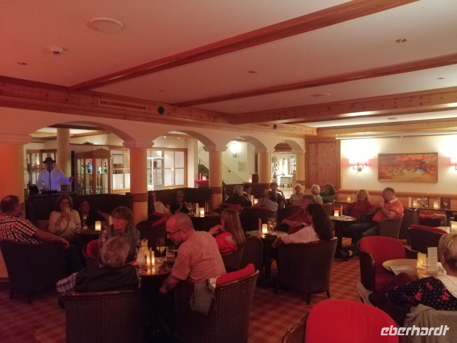 Nach einem guten Frühstück, trafen wir uns mit unserem Bergführer Charlie und gingen gemeinsam zur Bushaltestelle, die ca. 3 bis 4 Minuten Fußweg vom Hotel entfernt war. Die Gästekarte ist schon eine tolle Erfindung: man kommt gemütlich im Kleinwalsertal überall hin, ob es Walserbus ist oder eine der acht Bergbahnen! Wir fuhren bis zur Endhaltestelle "Baad". Charlie erzählte uns über die Walser, woher sie stammen und wie die ersten Walser-Siedlungen hier im Tal entstanden. Danach stiegen wir ins Bärgunttal hoch, entlang der wunderschönen Wiesen und immer mit einem herrlichen Bergpanoramabild vor uns. Wir waren schon gegen halb elf an der Bärguthütte (1.408 m). Die Wirtin Sabine war heute leider nicht da und der vom Charlie so gelobte Käsekuchen lag auch noch im Backofen. Aber der Apfelkuchen von der Sabine war auch sehr lecker und nachdem er alle war, stiegen wir den oberen Wanderweg wieder ins Breitachtal ab. Wieder bequem mit dem Walserbus erreichten wir Mittelberg und fuhren mit der Walmendingerhornbahn zum "Berg der Sinne" hoch. Eine faszinierende Berglandschaft belohnte uns auf der Aussichtsplatform des Walmendingerhorns (1.990 m). Am frühen Nachmittag waren wir schon im Hotel und bekamen sogar noch eine wärmende Mittagssuppe serviert! Der erlebnisreiche Tag wurde mit den leckeren Spezialitäten rund um den Bosporus gekrönt. Nach dem Abendessen genossen wir die Live-Musik von Dieter: mit Tanz und Humor!